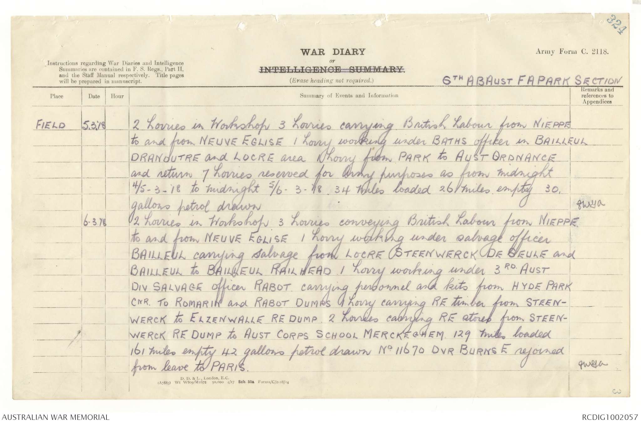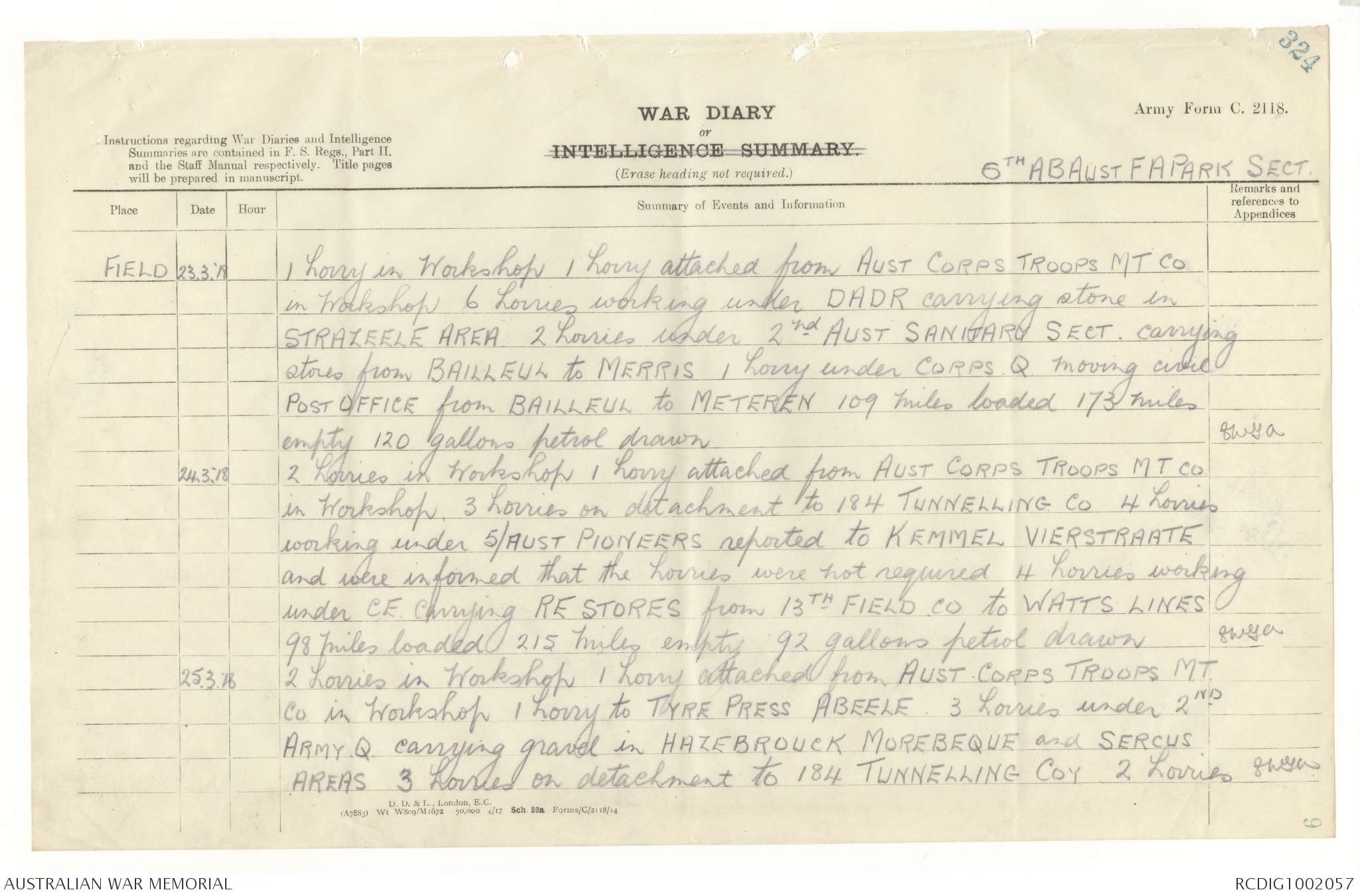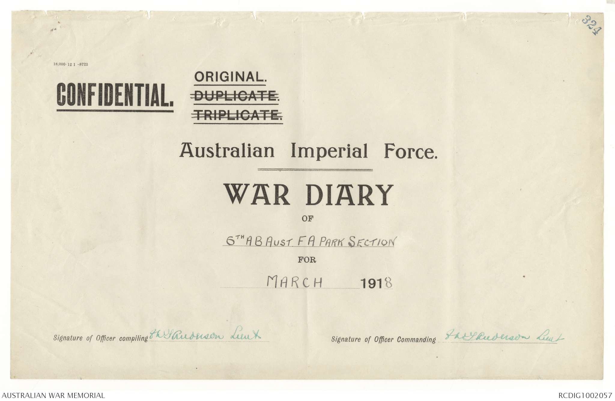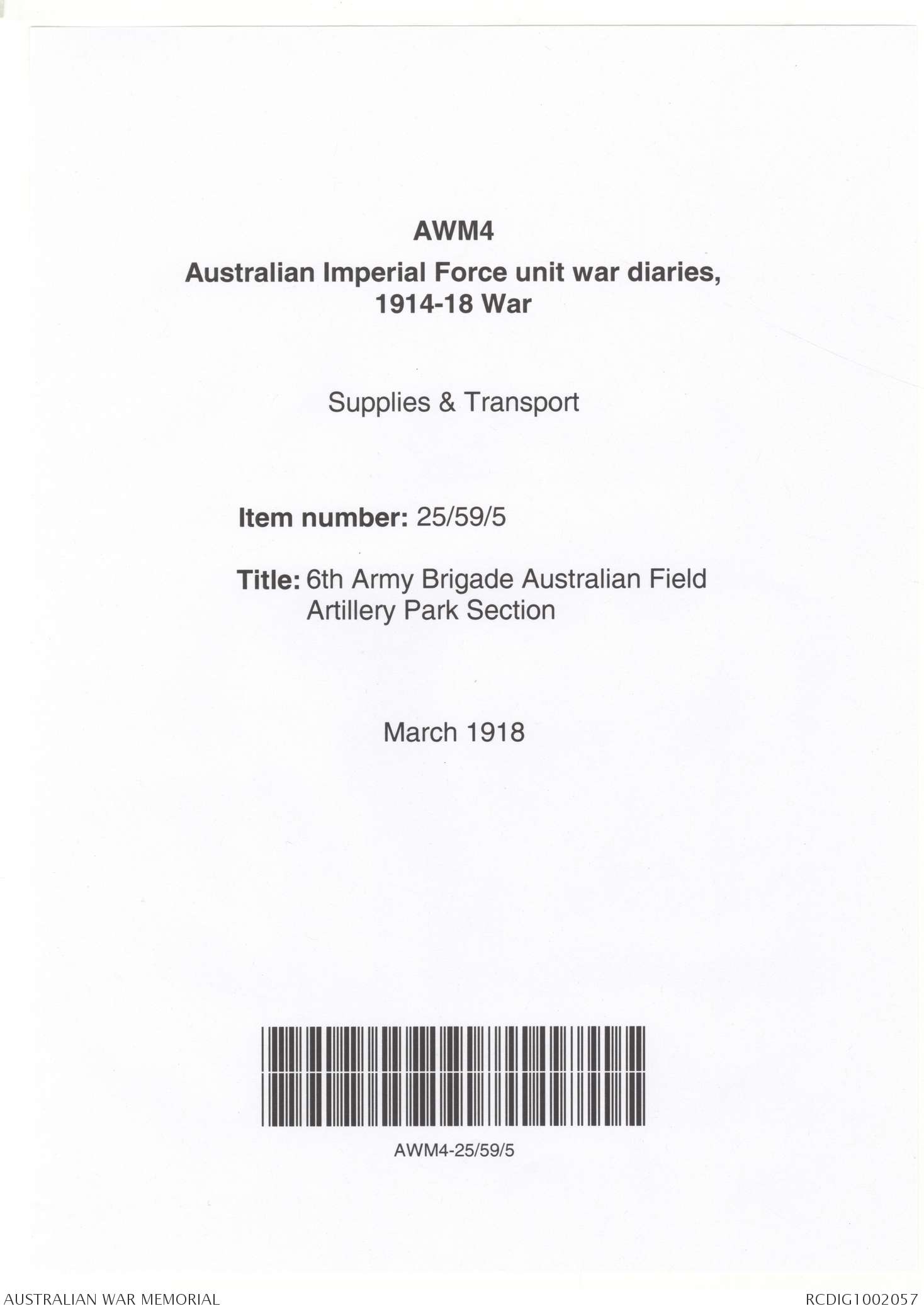 - AWM4 Subclass 25/59 - 6th Army Brigade Australian Field Artillery Park Section