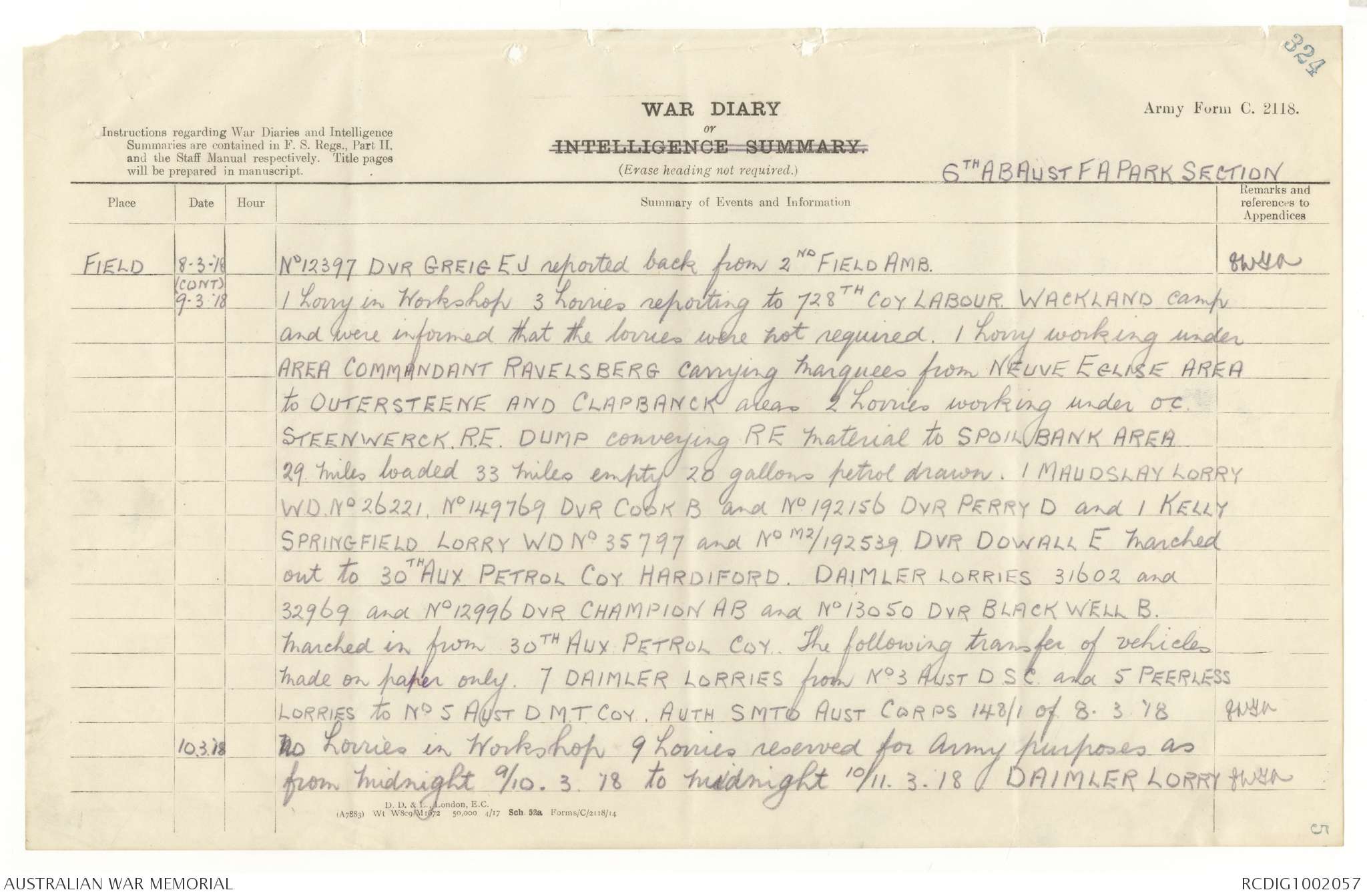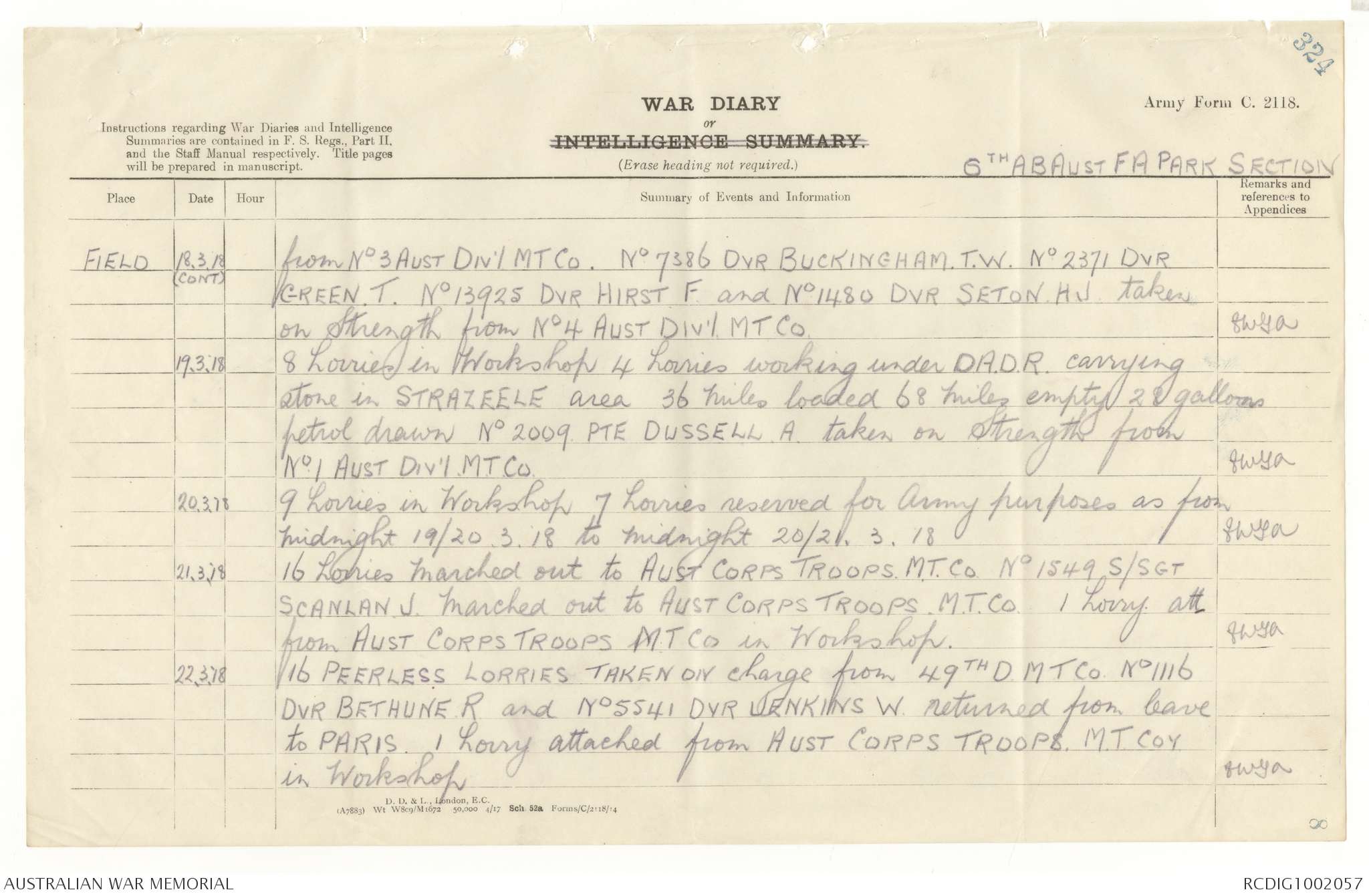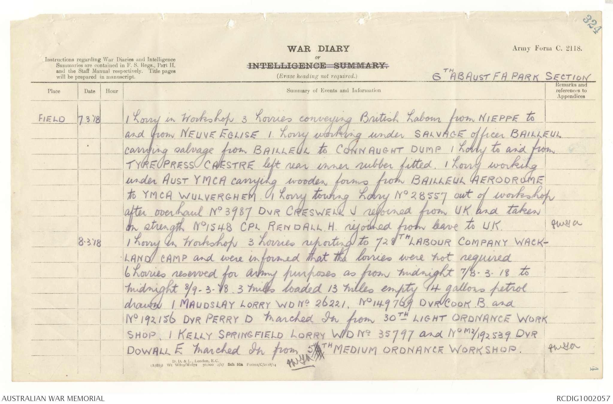 - AWM4 Subclass 25/59 - 6th Army Brigade Australian Field Artillery Park Section