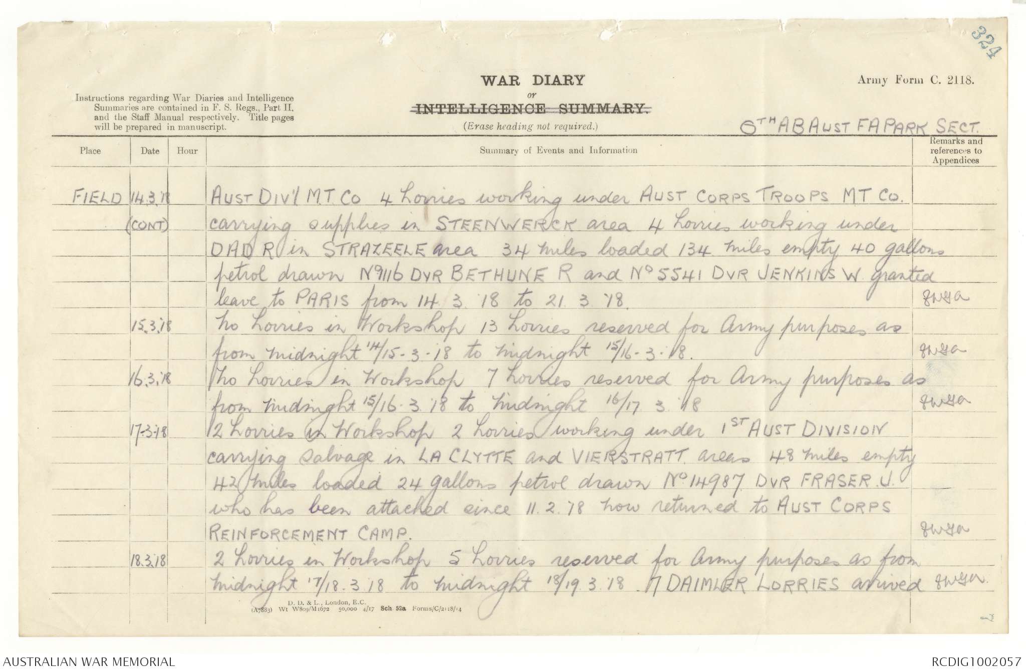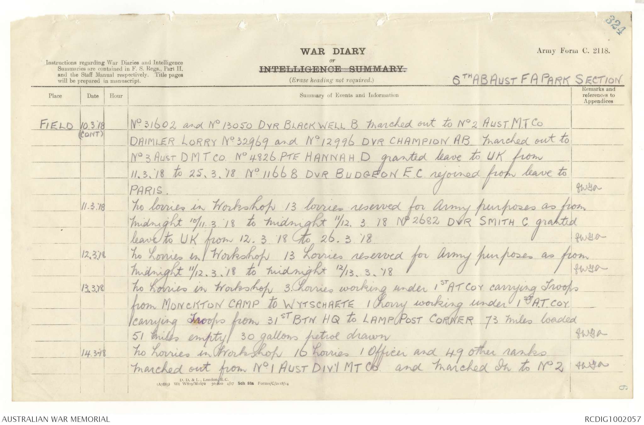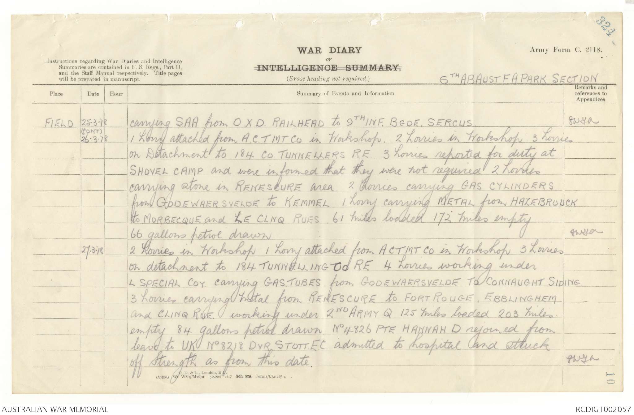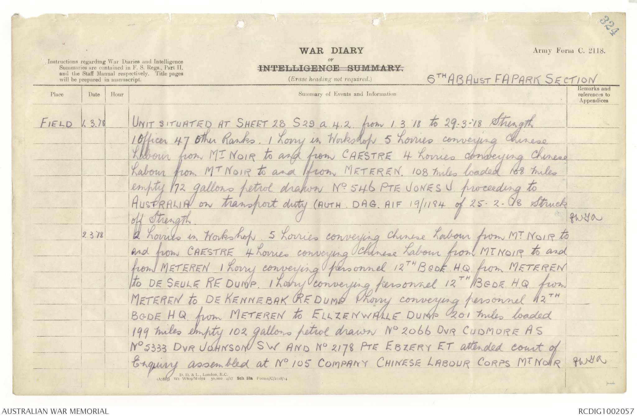 - AWM4 Subclass 25/59 - 6th Army Brigade Australian Field Artillery Park Section