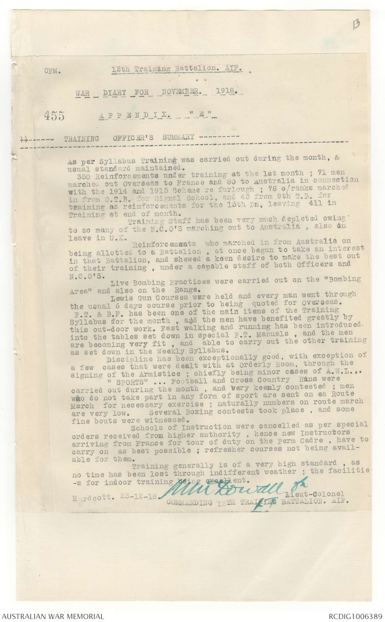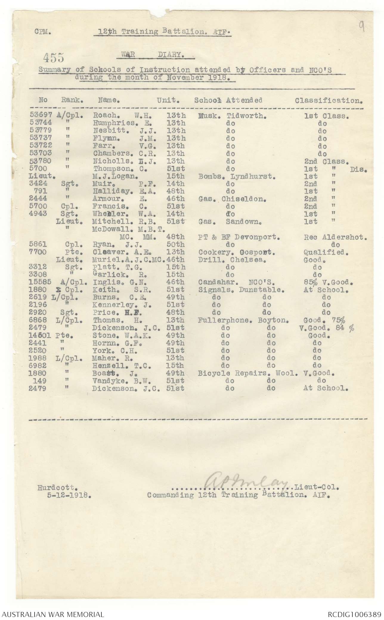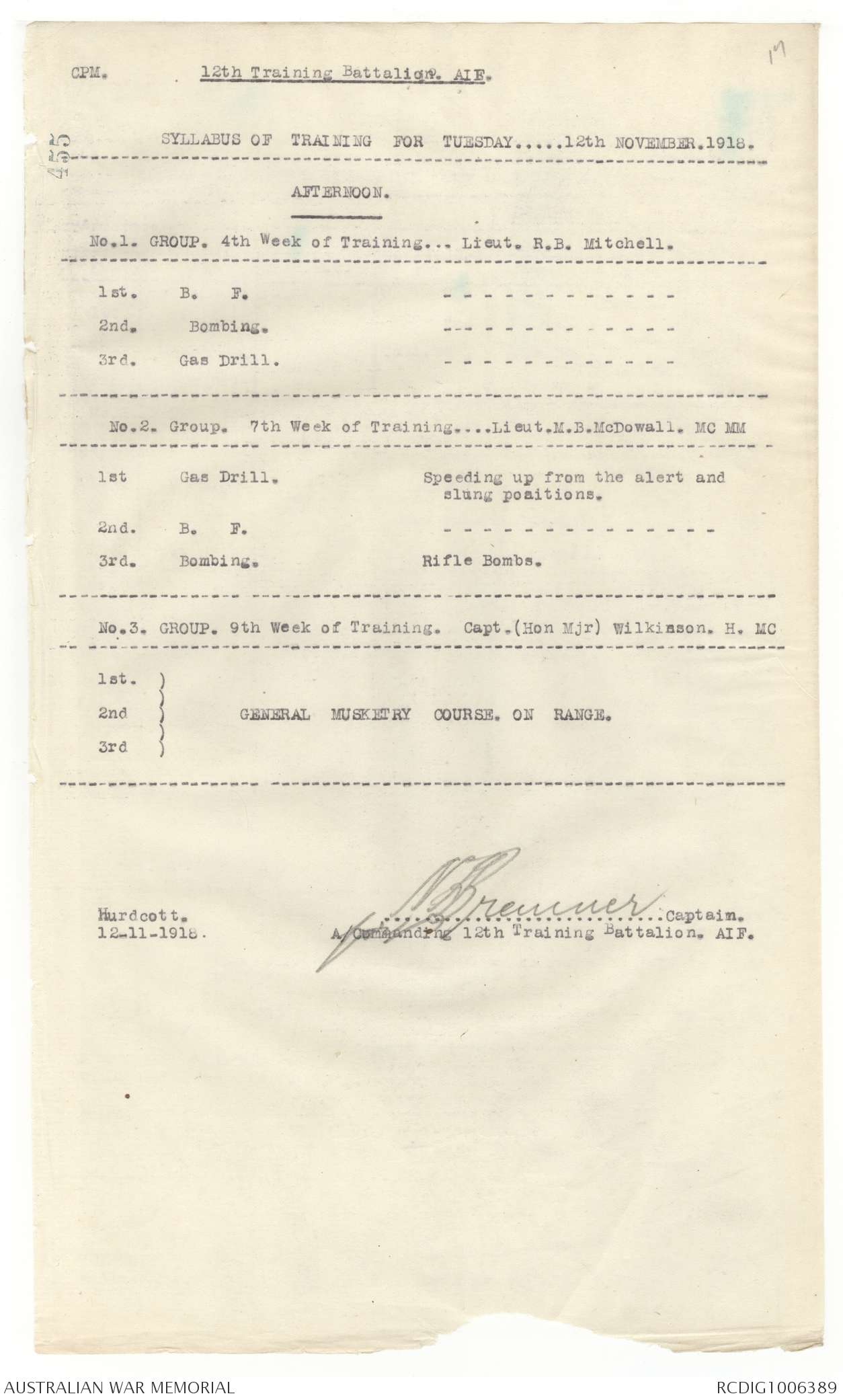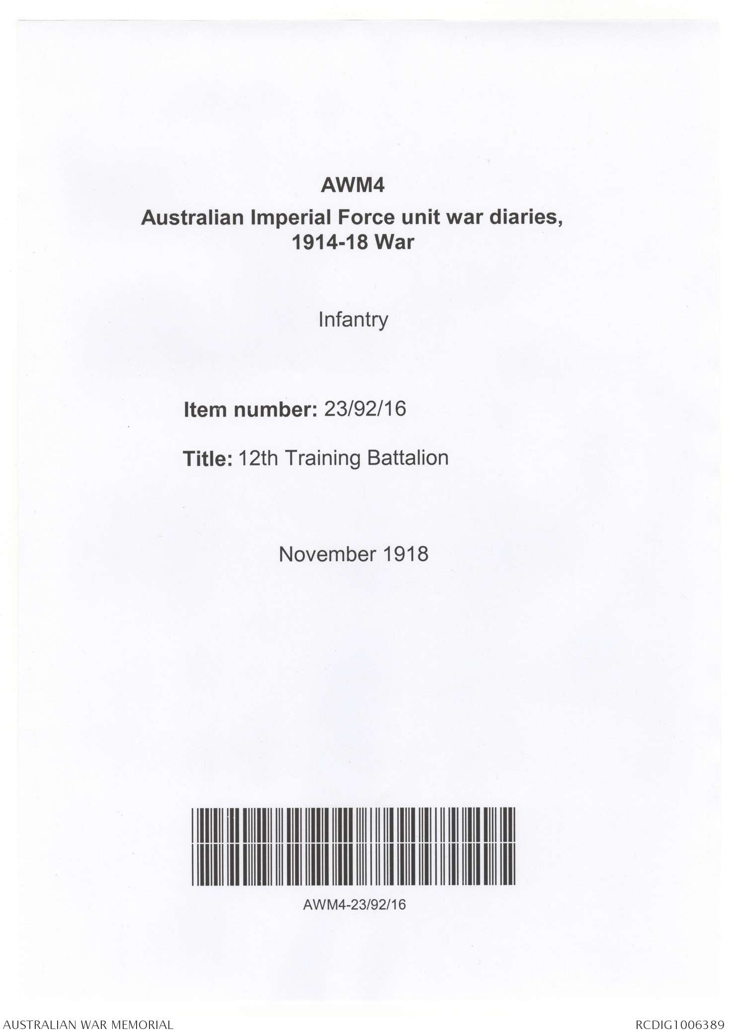 - AWM4 Subclass 23/92 - 12th Training Battalion