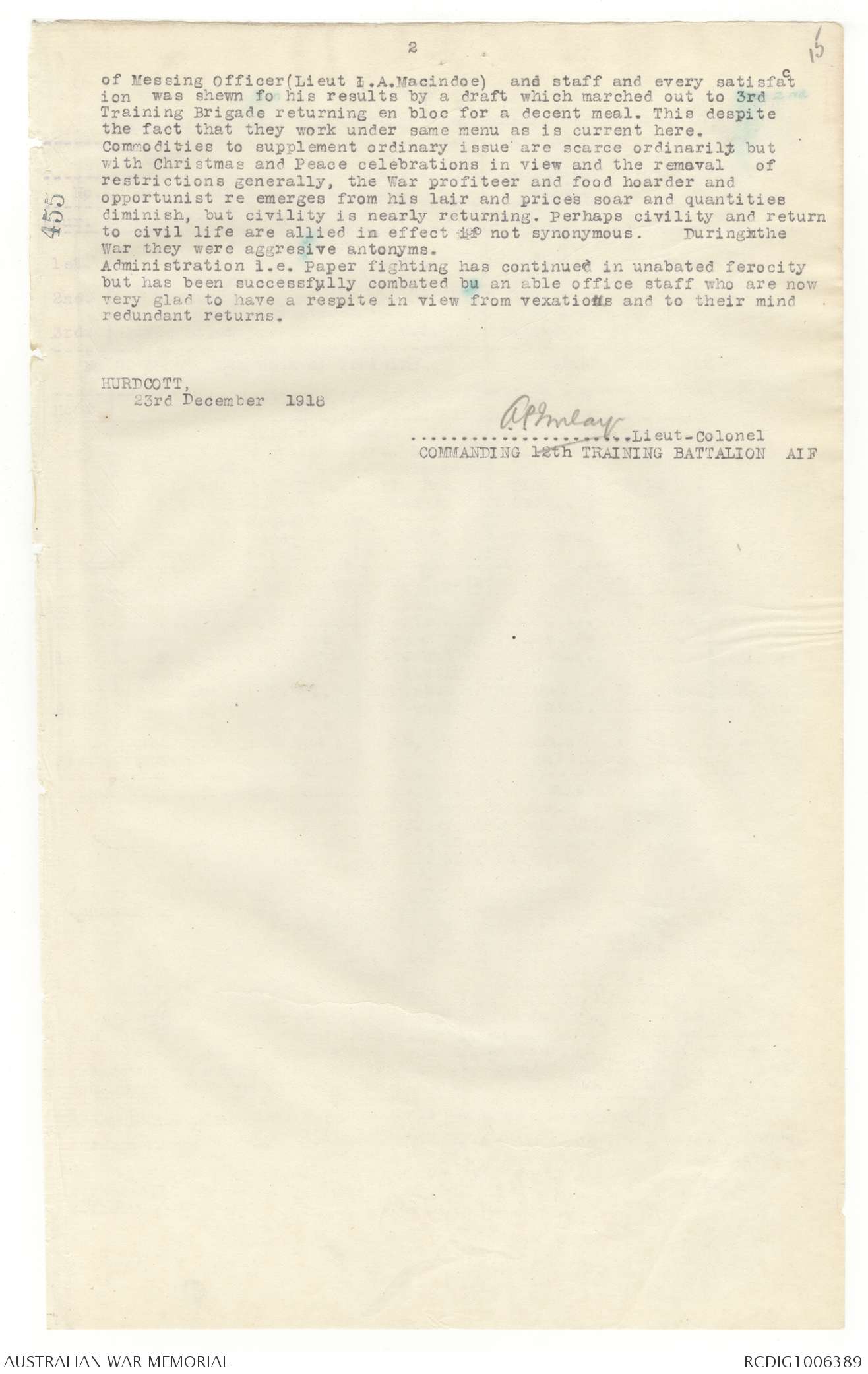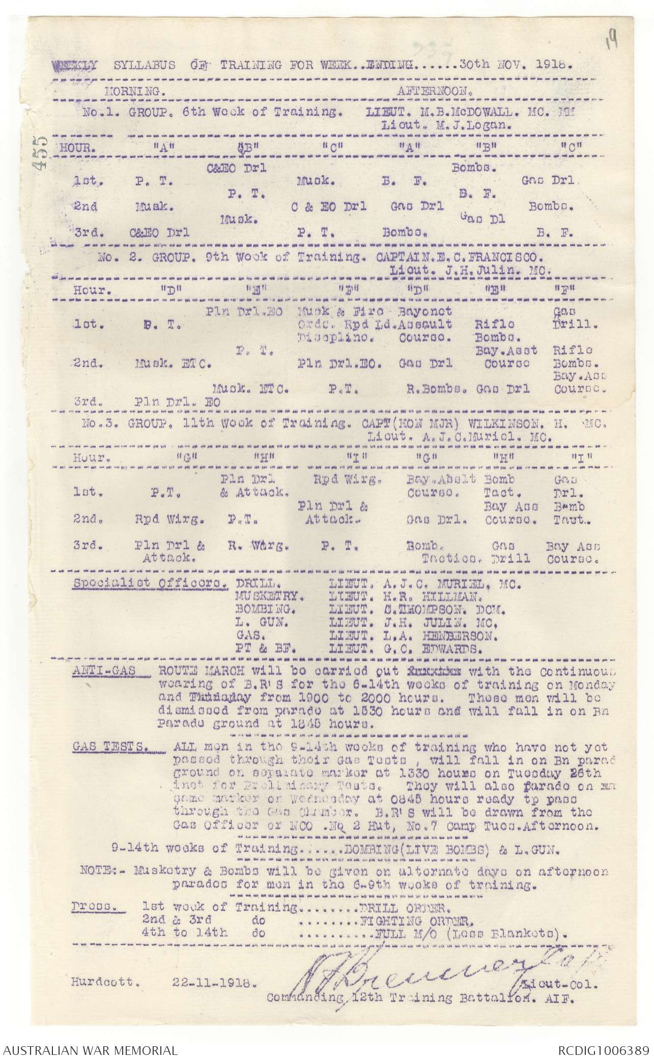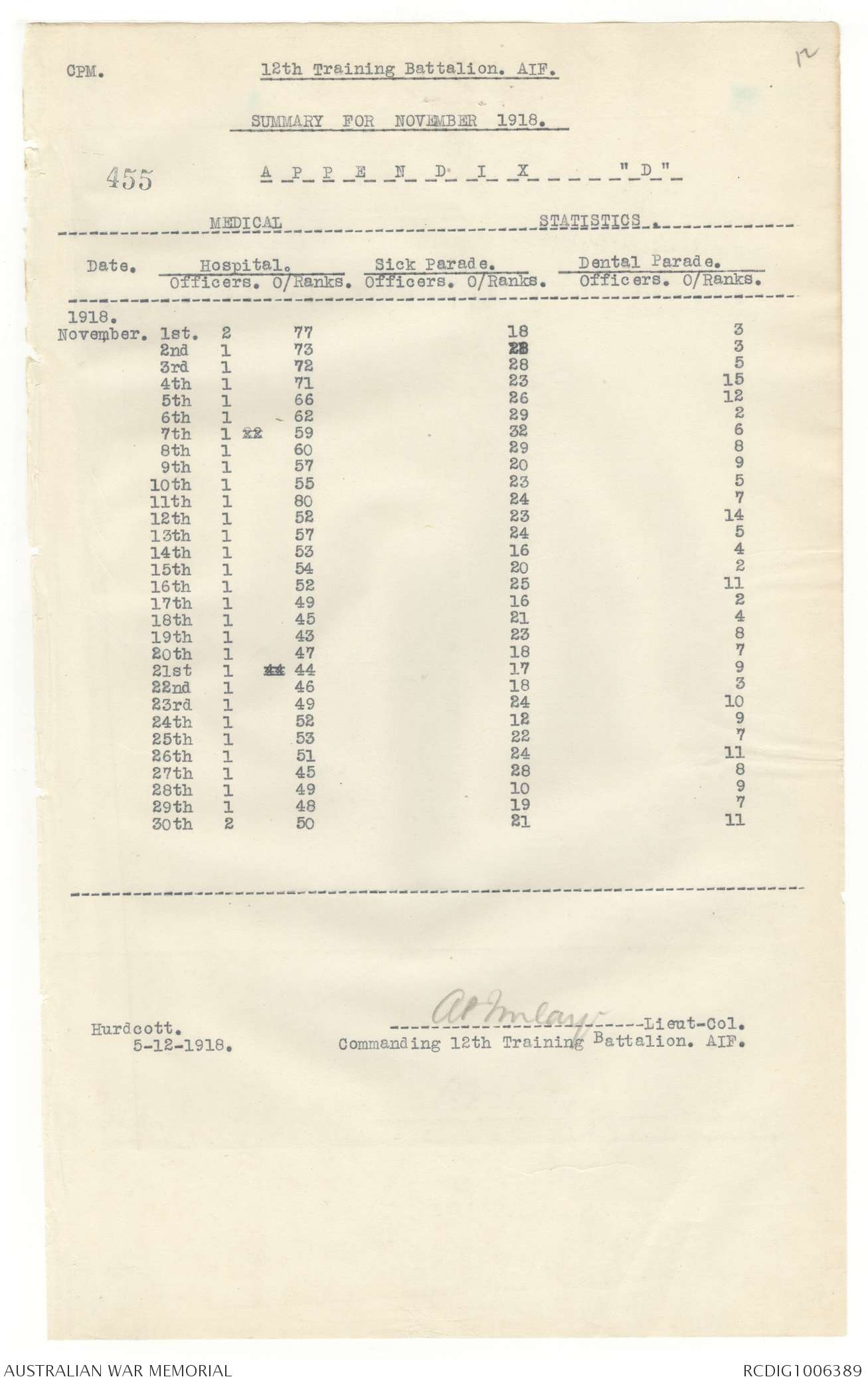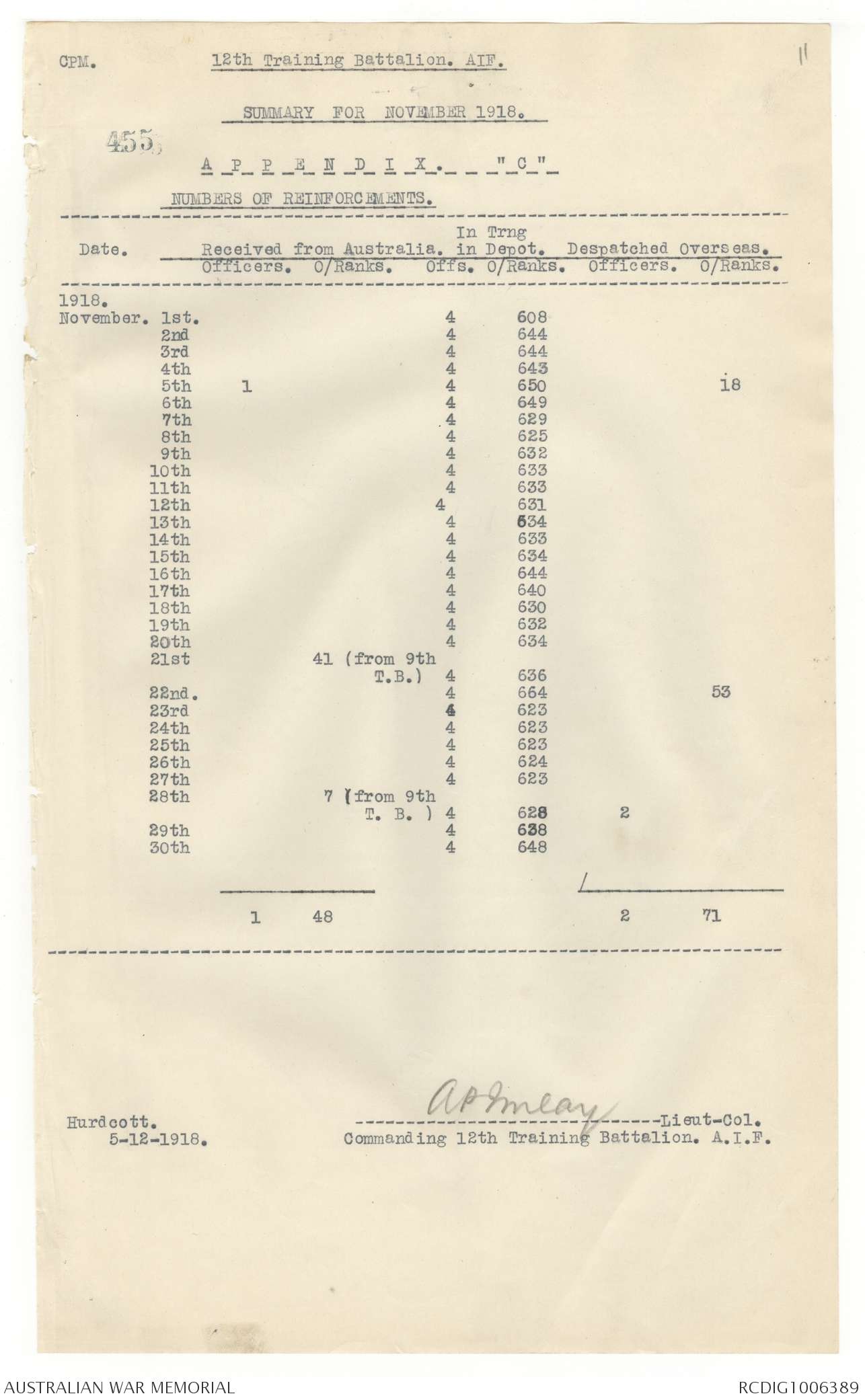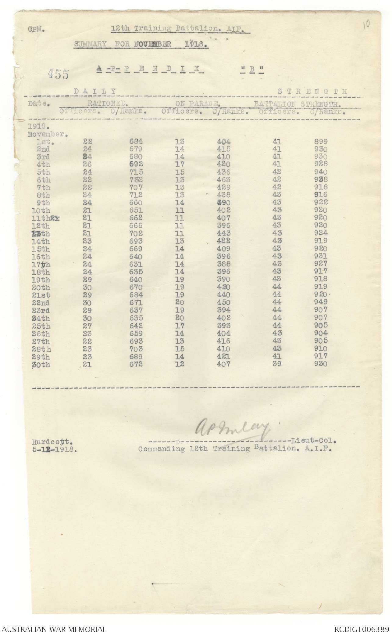 - AWM4 Subclass 23/92 - 12th Training Battalion