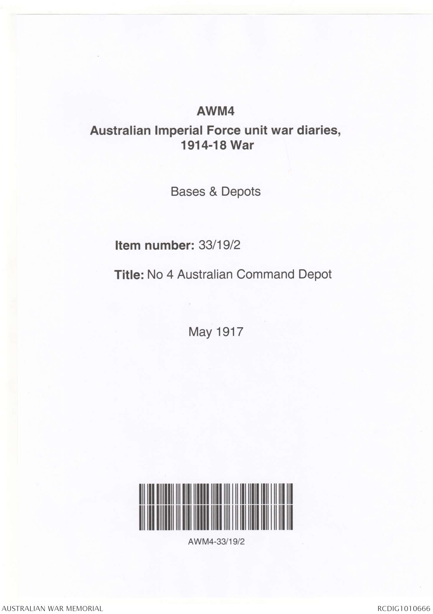 - AWM4 Subclass 33/19 - No 4 Australian Command Depot