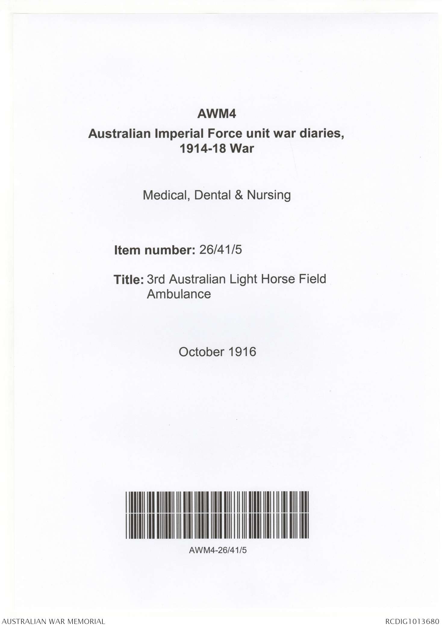 - AWM4 Subclass 26/41 - 3rd Australian Light Horse Field Ambulance
