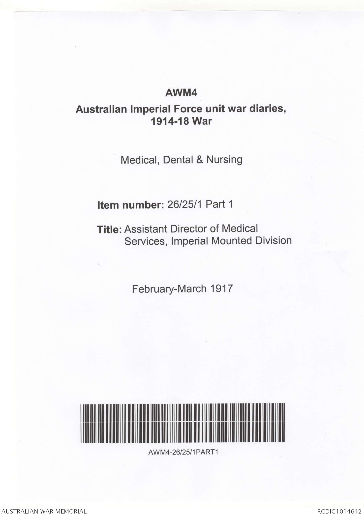| Collection number | AWM4 26/25/1 PART 1 |