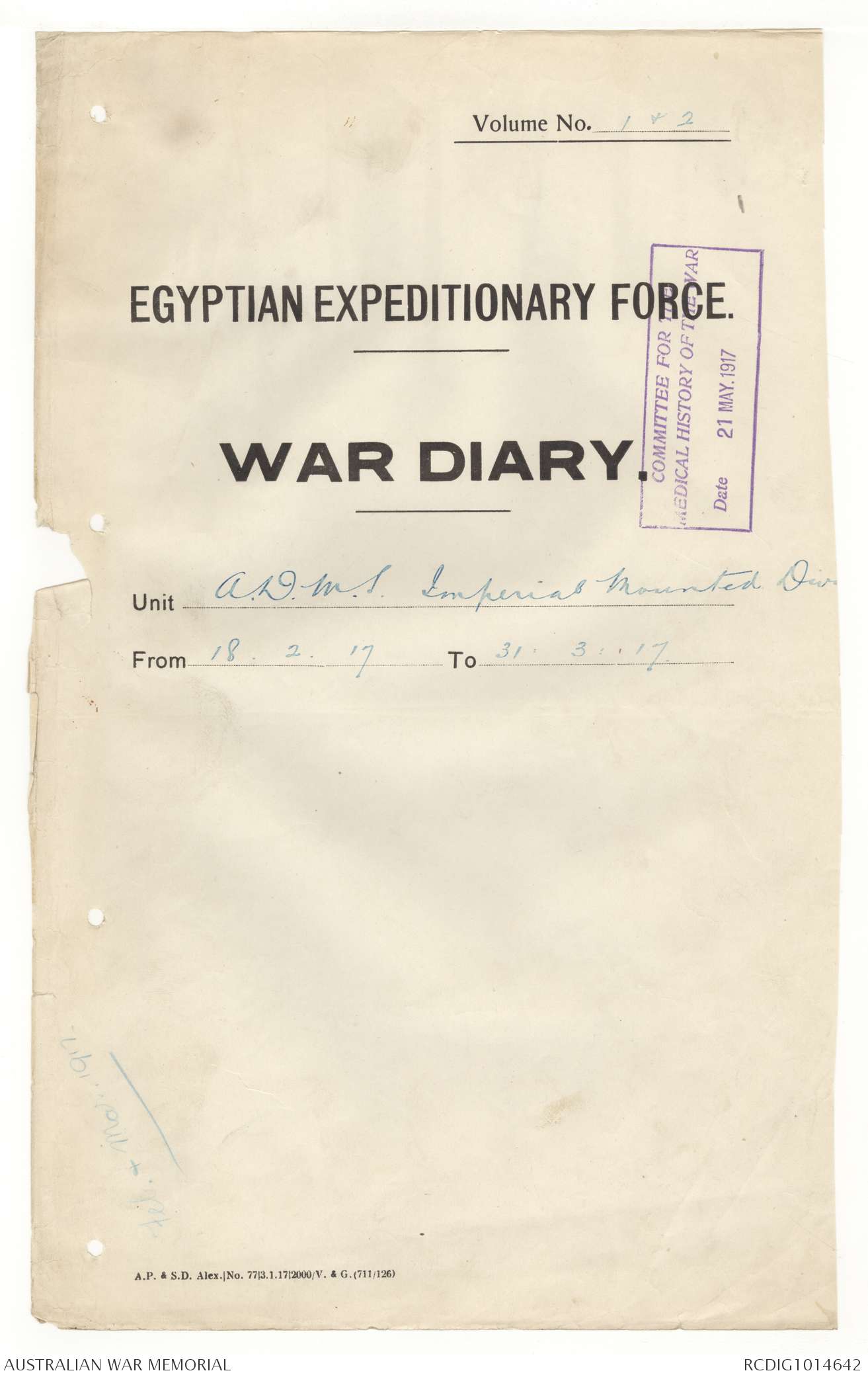 - AWM4 Subclass 26/25 - Assistant Director of Medical Services, Imperial Mounted Division