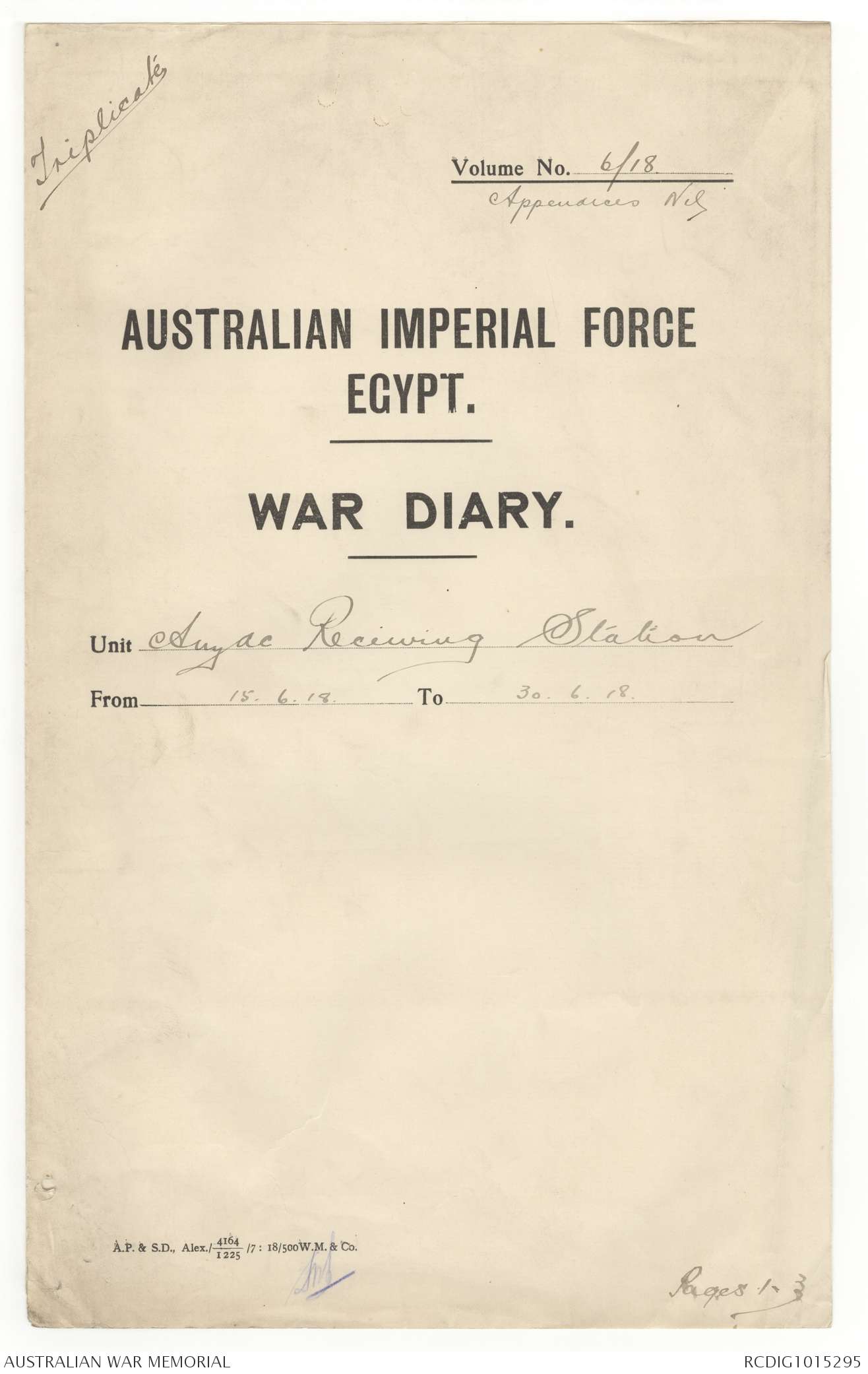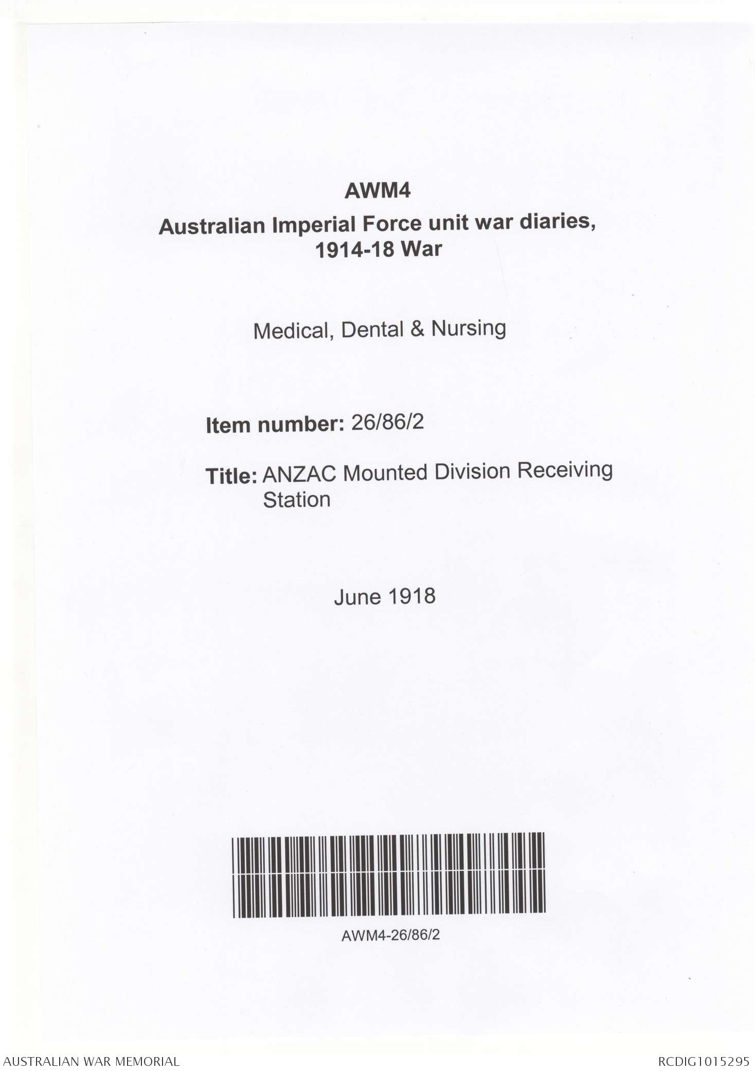 - AWM4 Subclass 26/86 - ANZAC Mounted Division Receiving Station