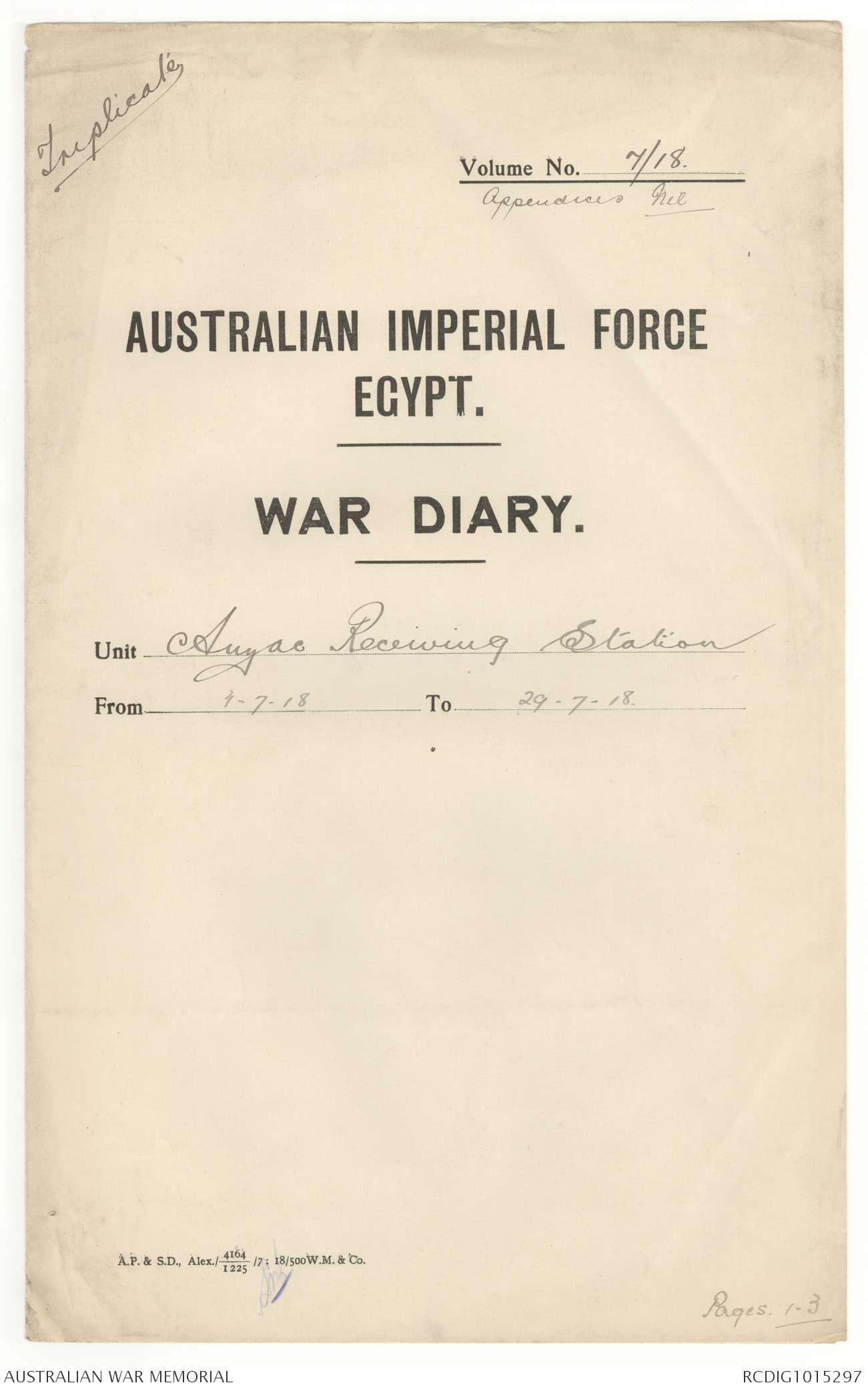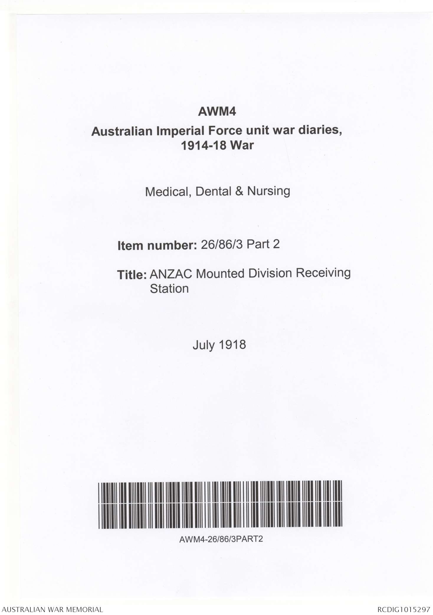 - AWM4 Subclass 26/86 - ANZAC Mounted Division Receiving Station