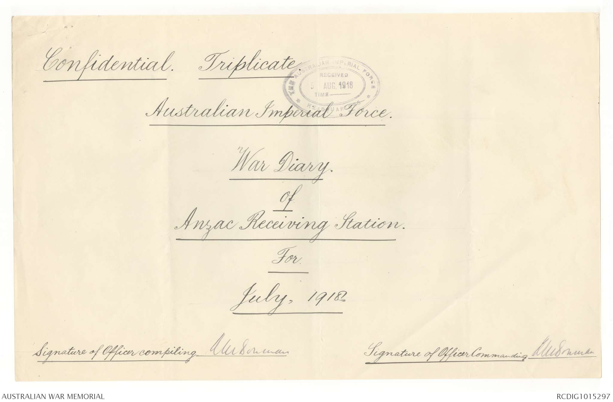 Australian Imperial Force unit war diaries, 1914-18 War