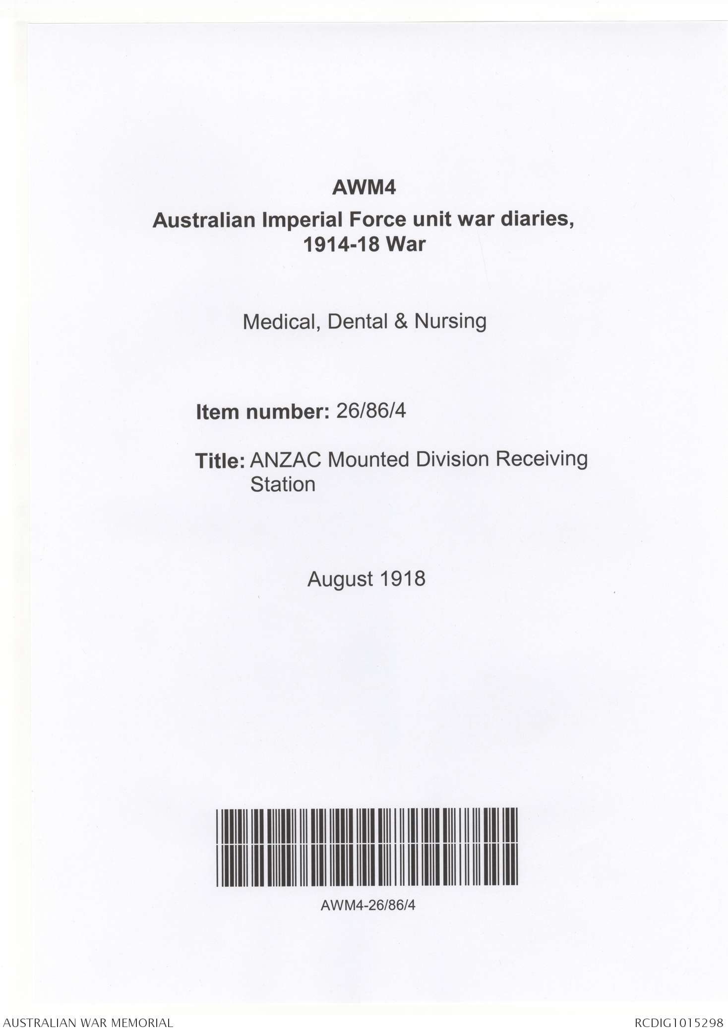 | Collection number | AWM4 26/86/4 |