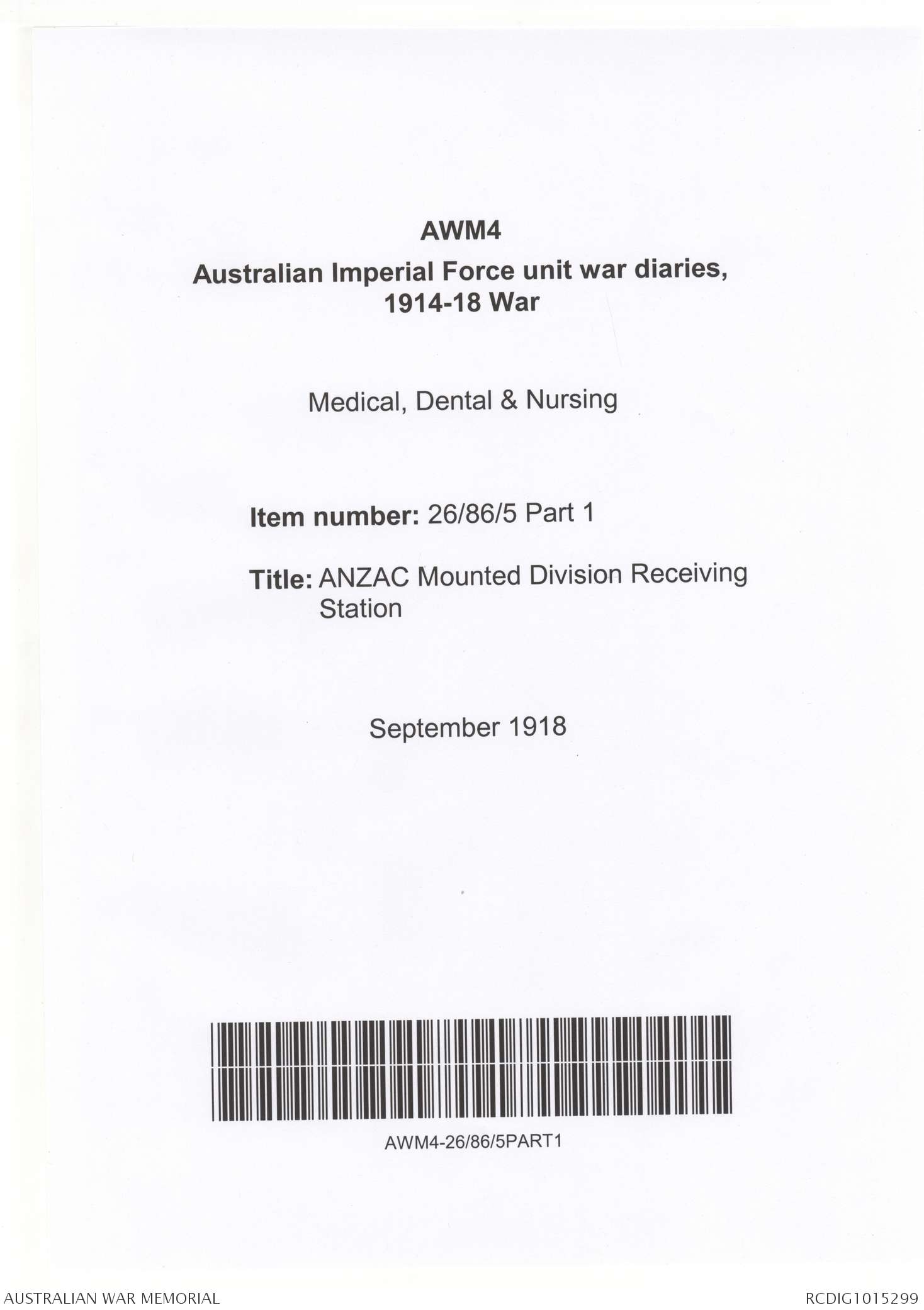 - AWM4 Subclass 26/86 - ANZAC Mounted Division Receiving Station