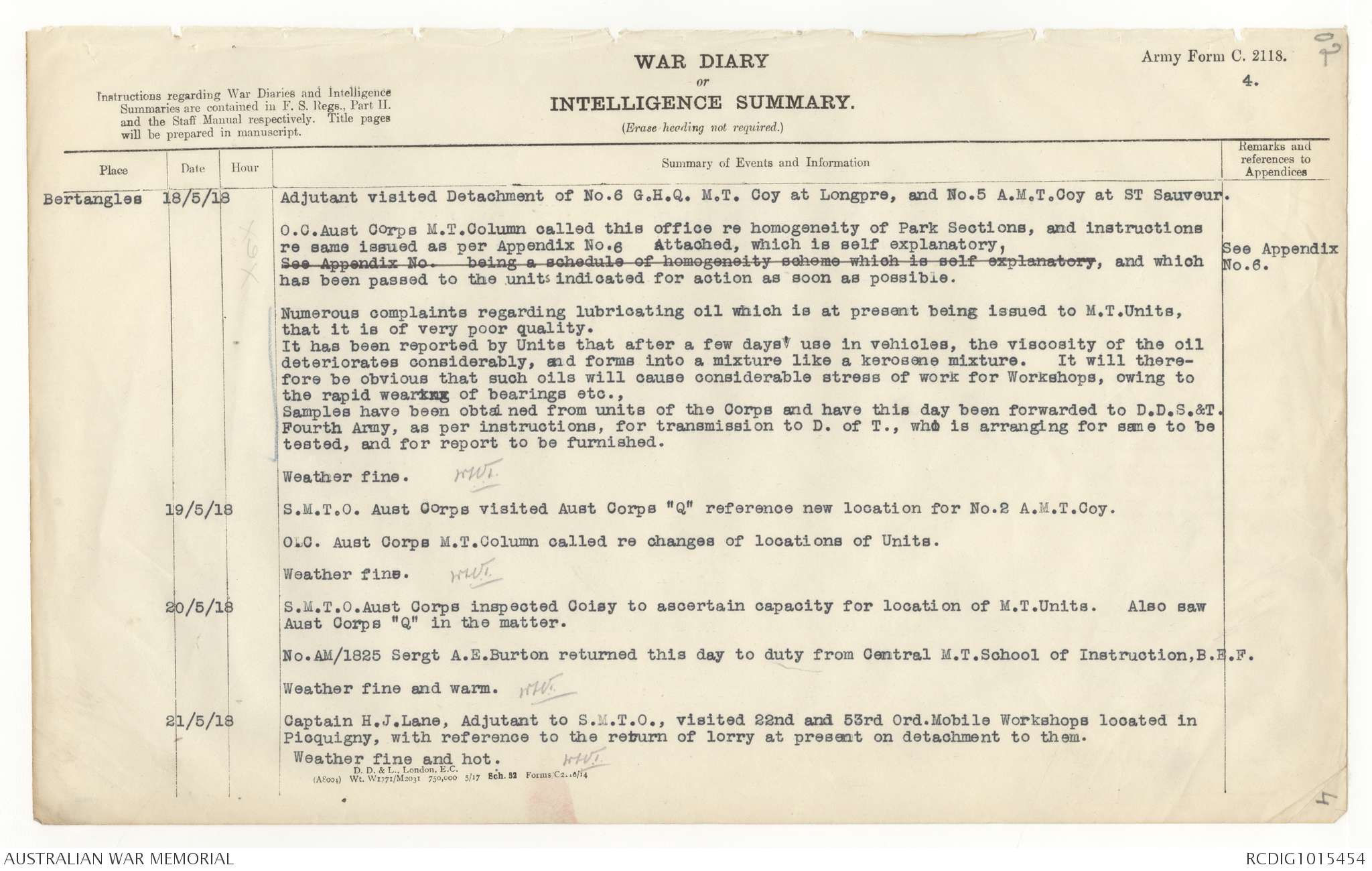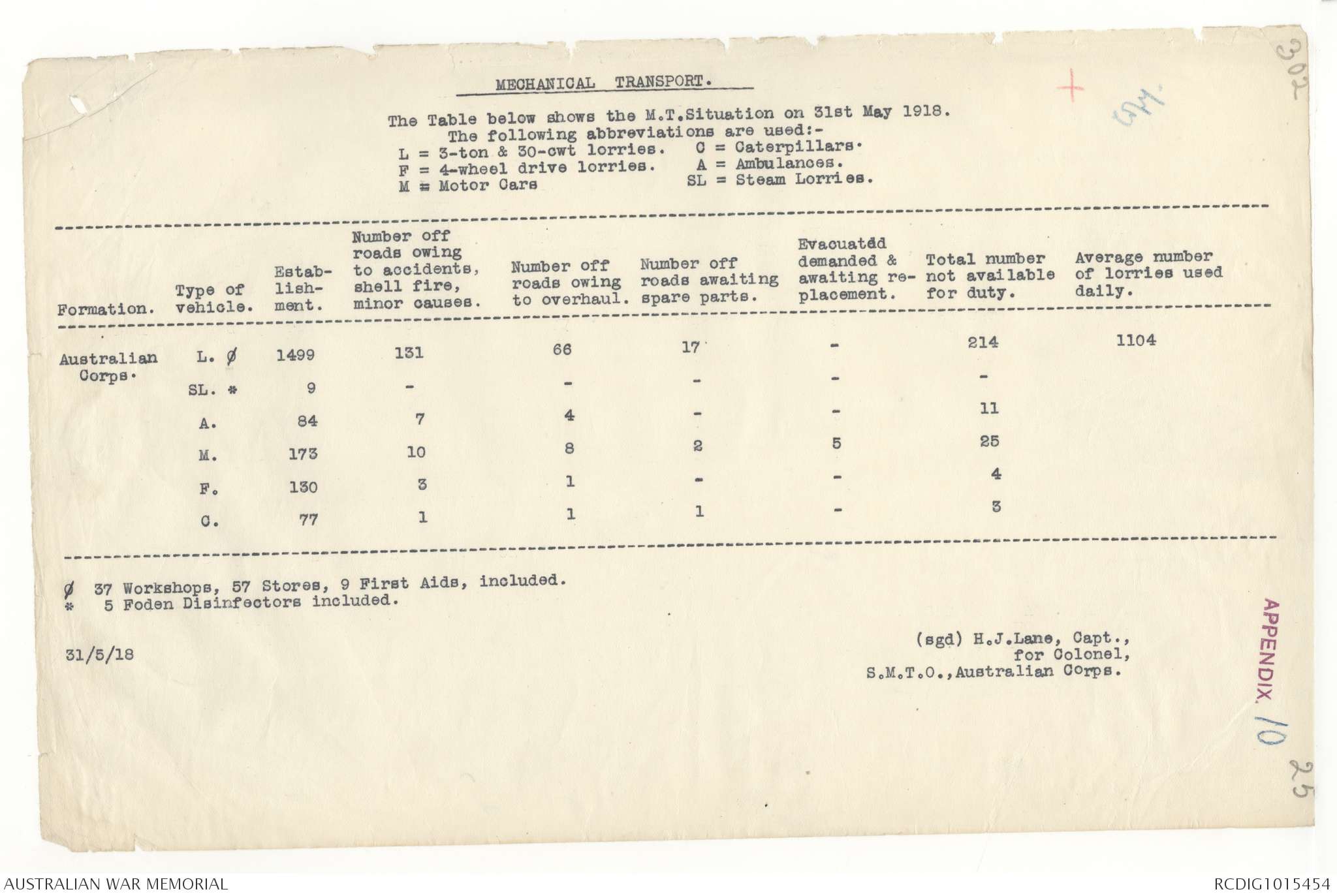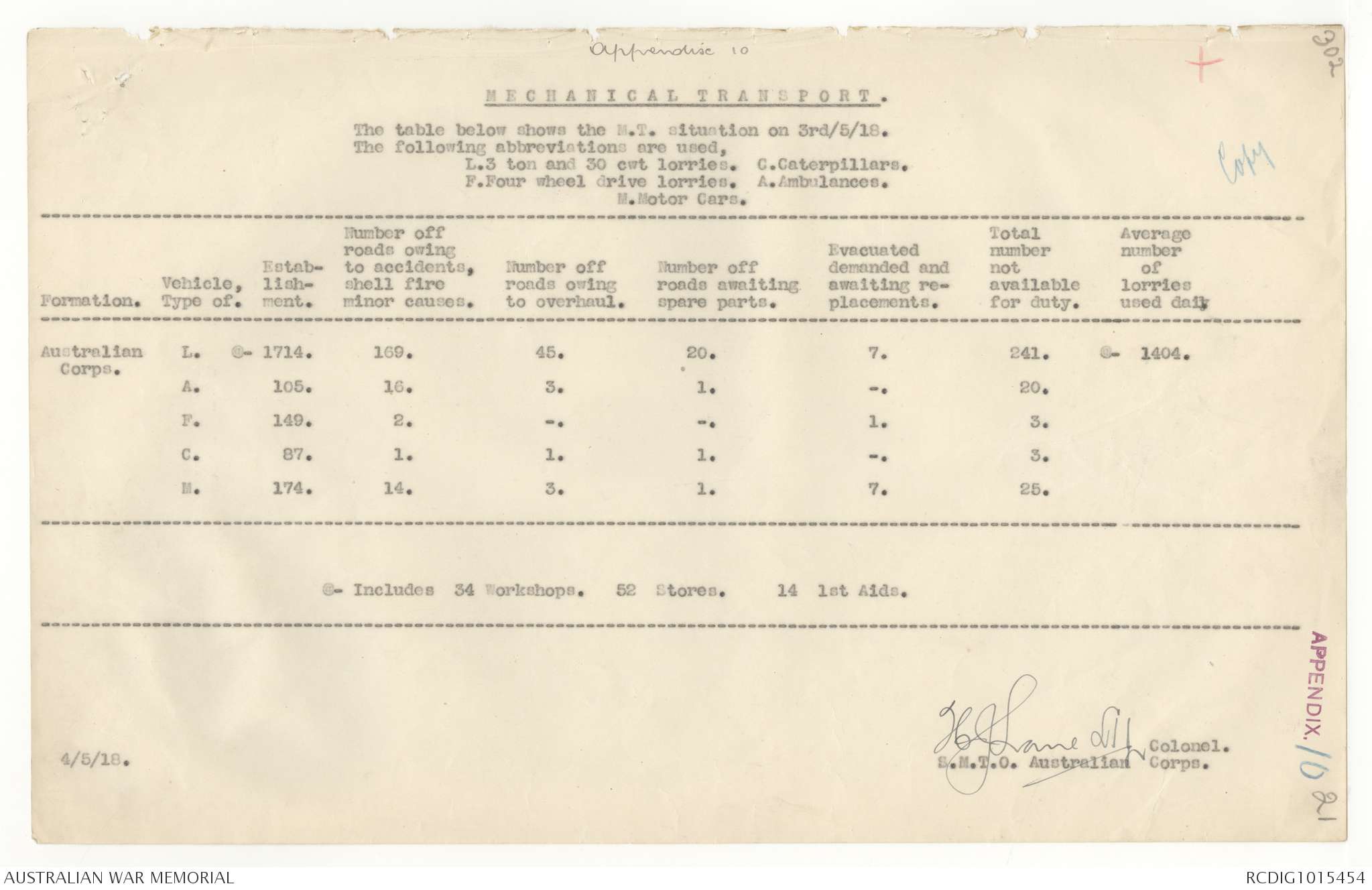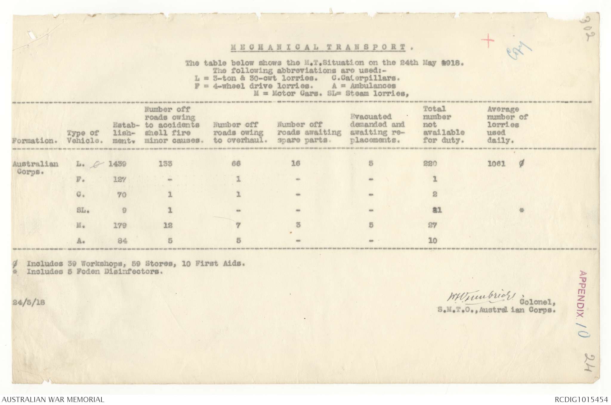 - AWM4 Subclass 25/4 - Senior Mechanical Transport Officer, Australian Corps