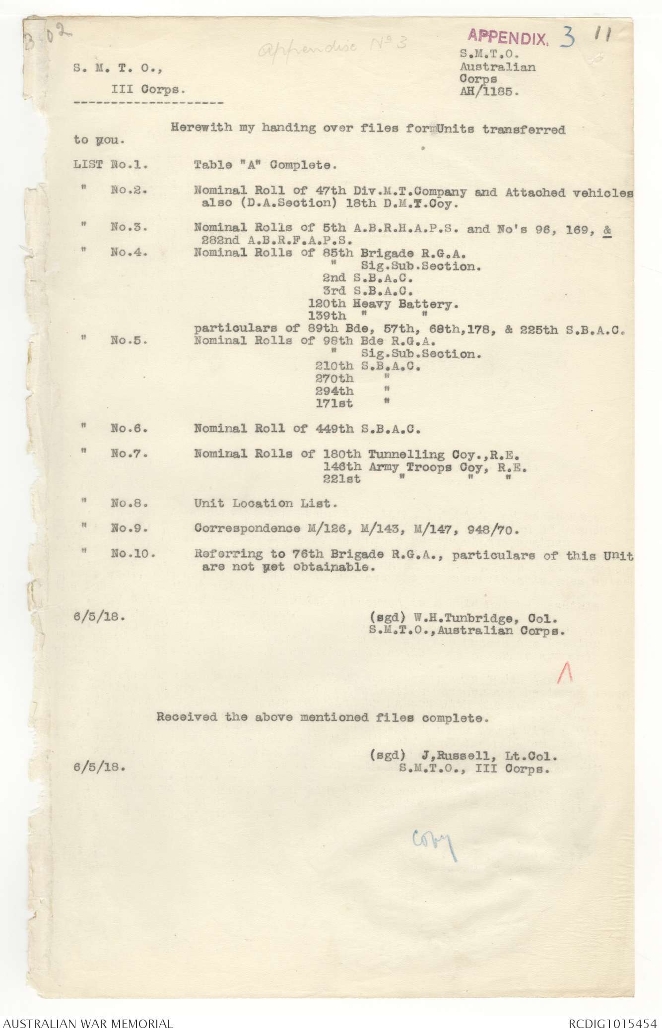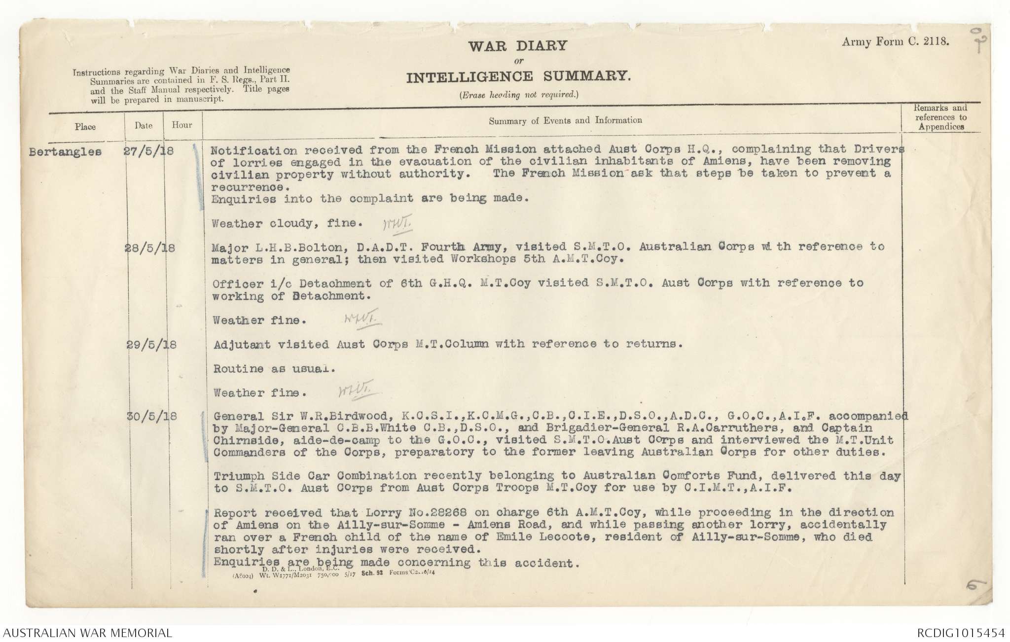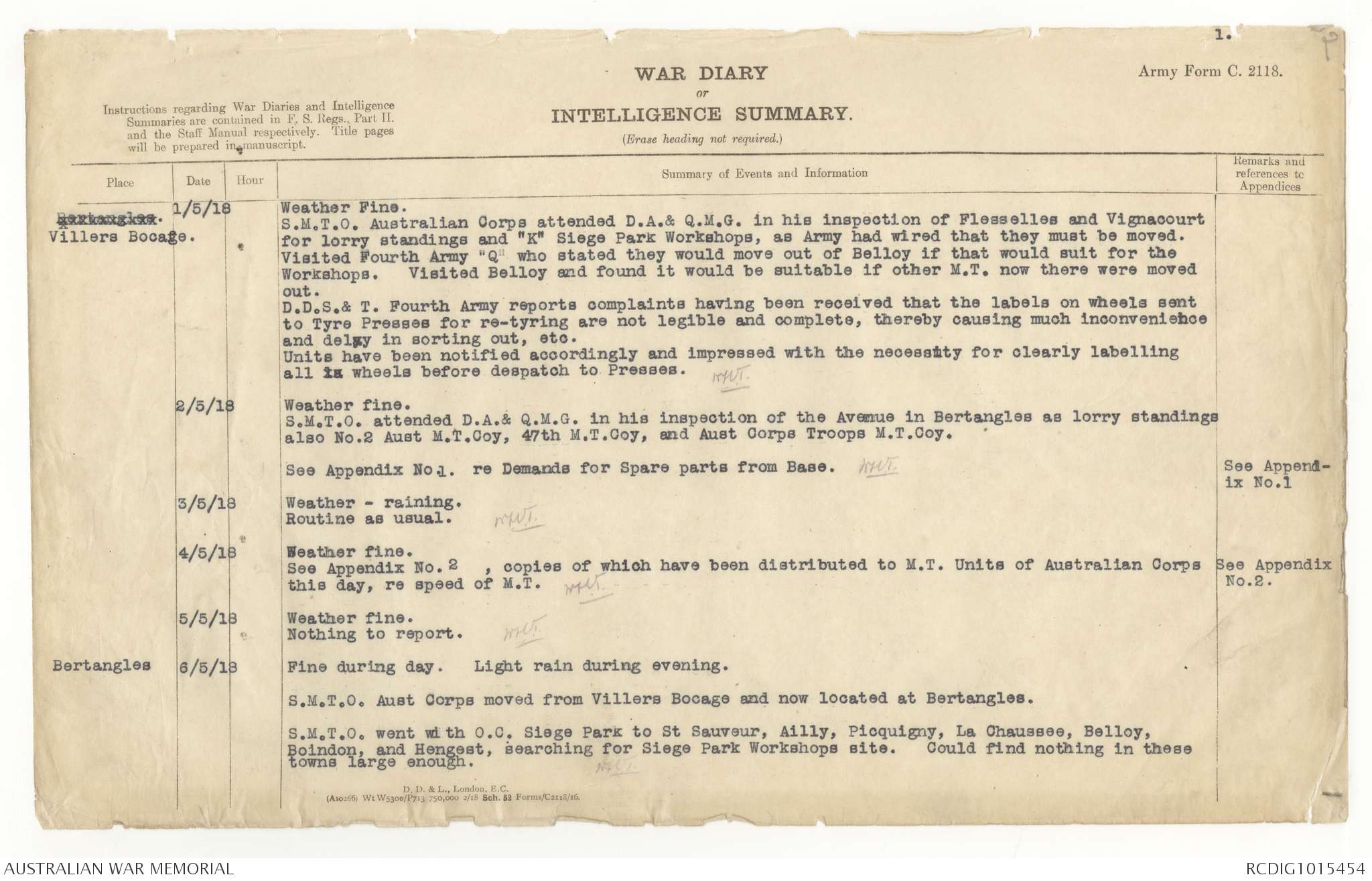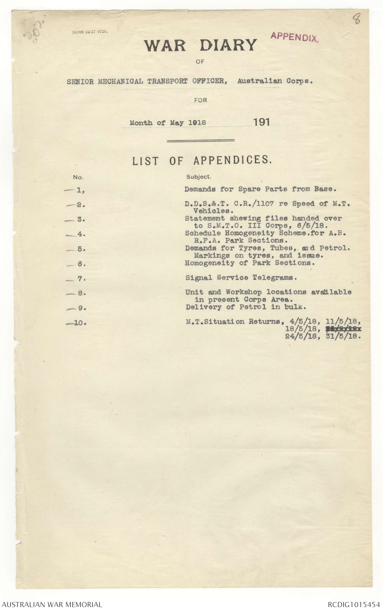 - AWM4 Subclass 25/4 - Senior Mechanical Transport Officer, Australian Corps