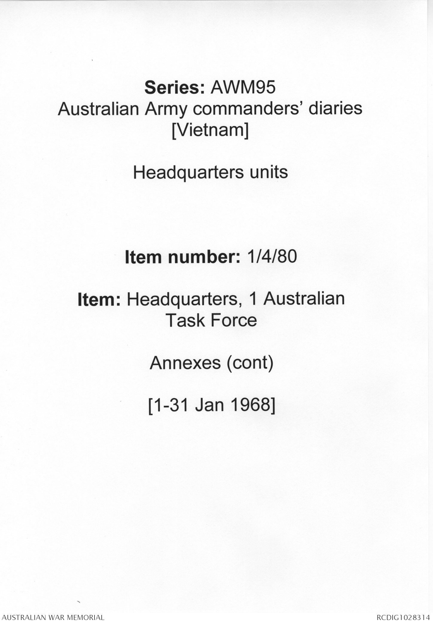 | Collection number | AWM95 1/4/80 |