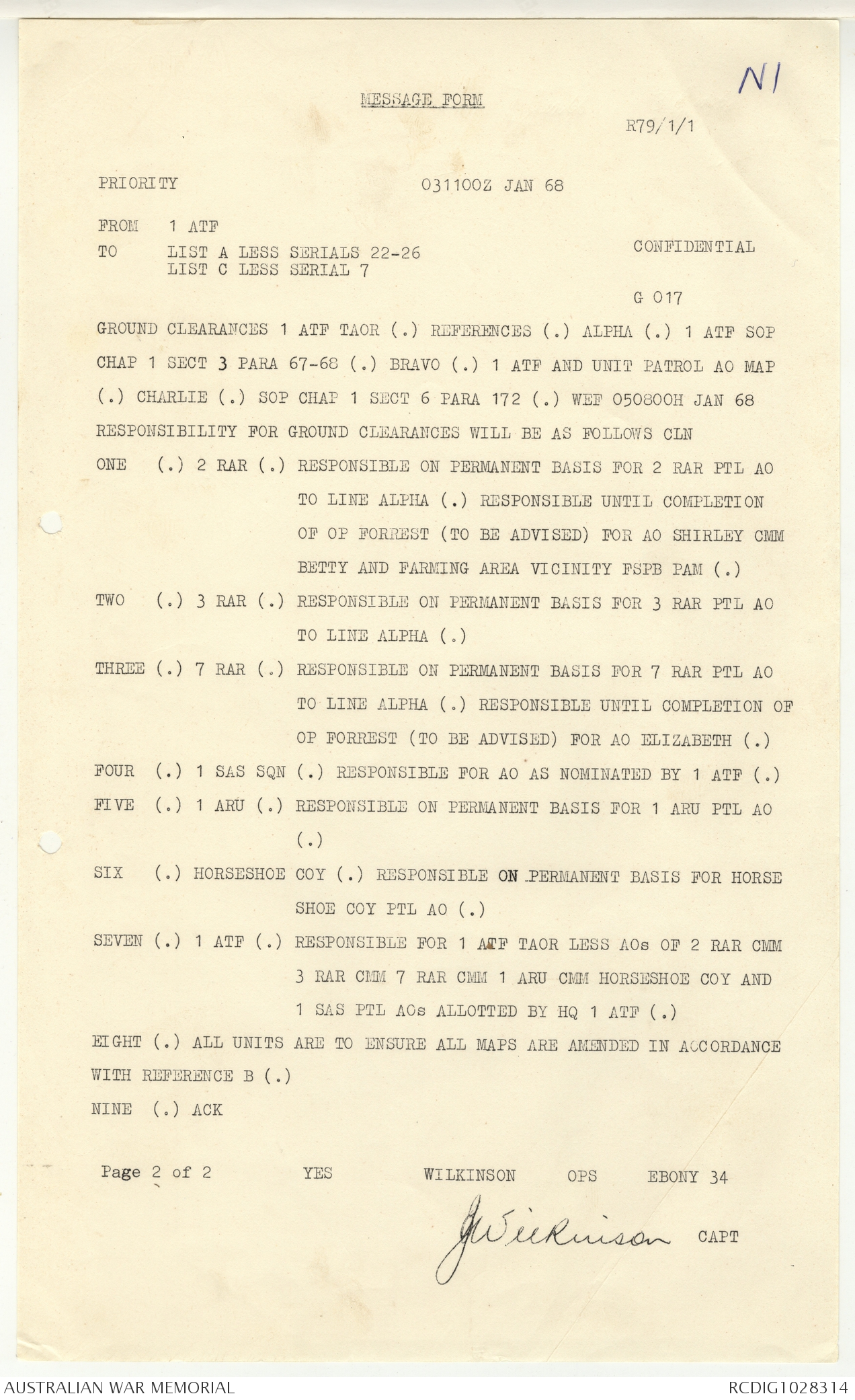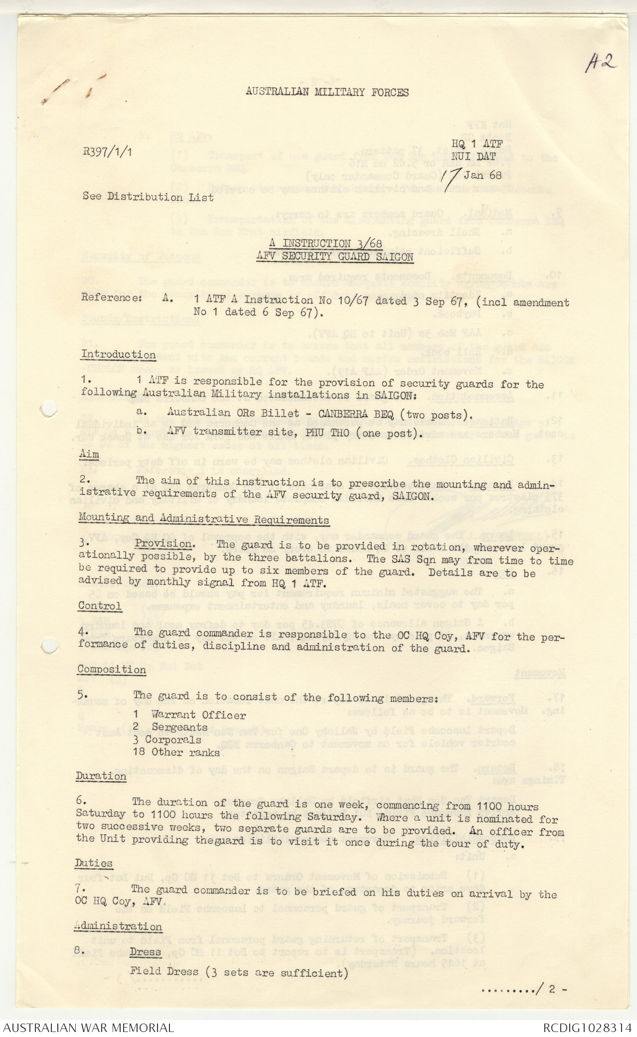 - AWM95 Subclass 1/4 - Headquarters, 1 Australian Task Force