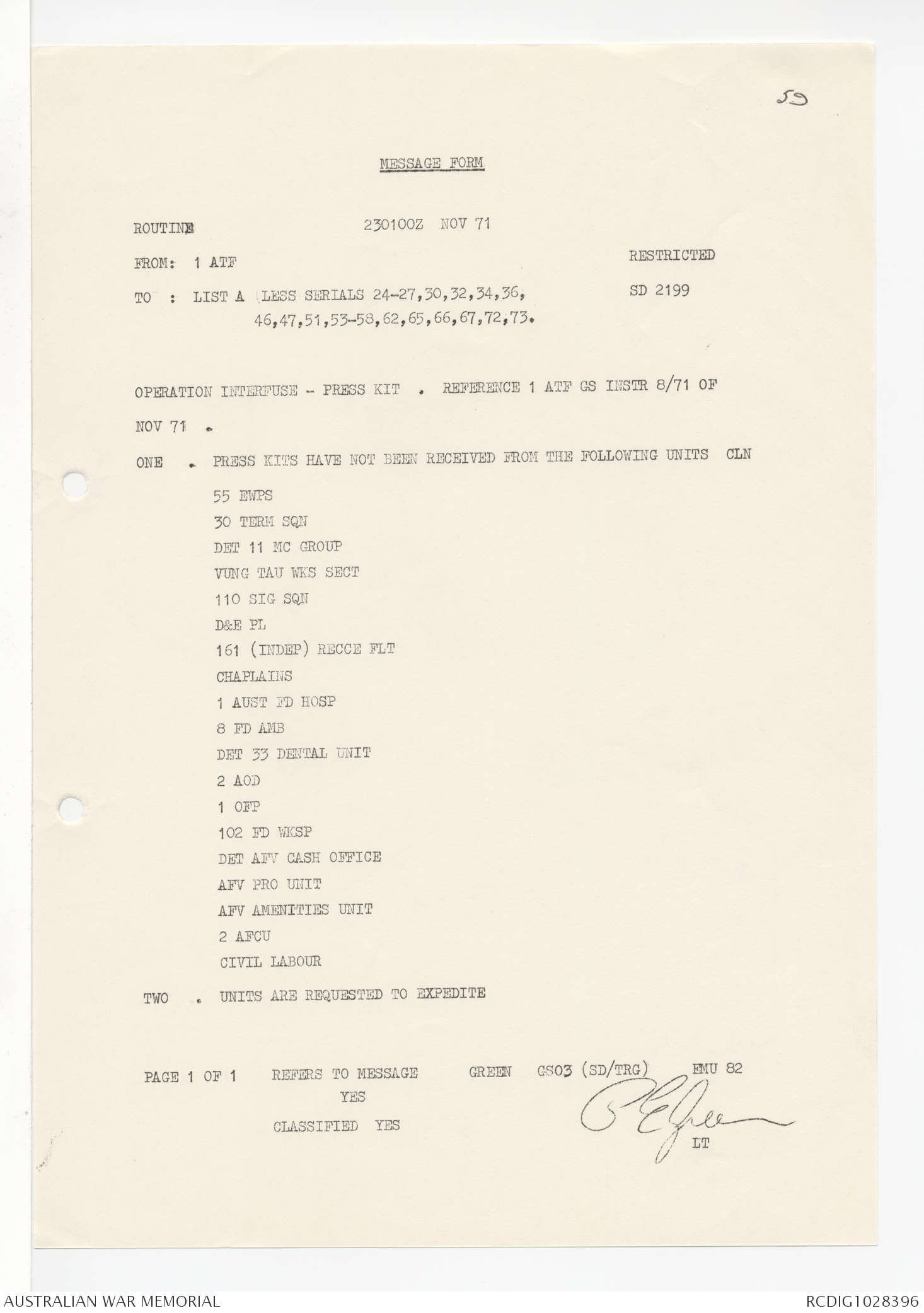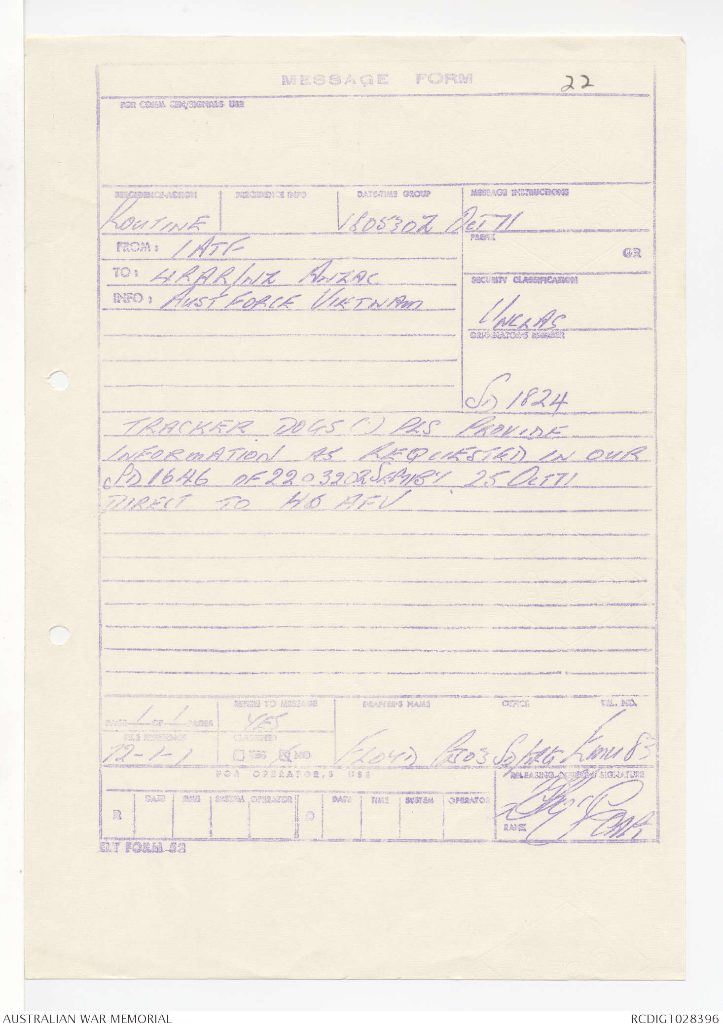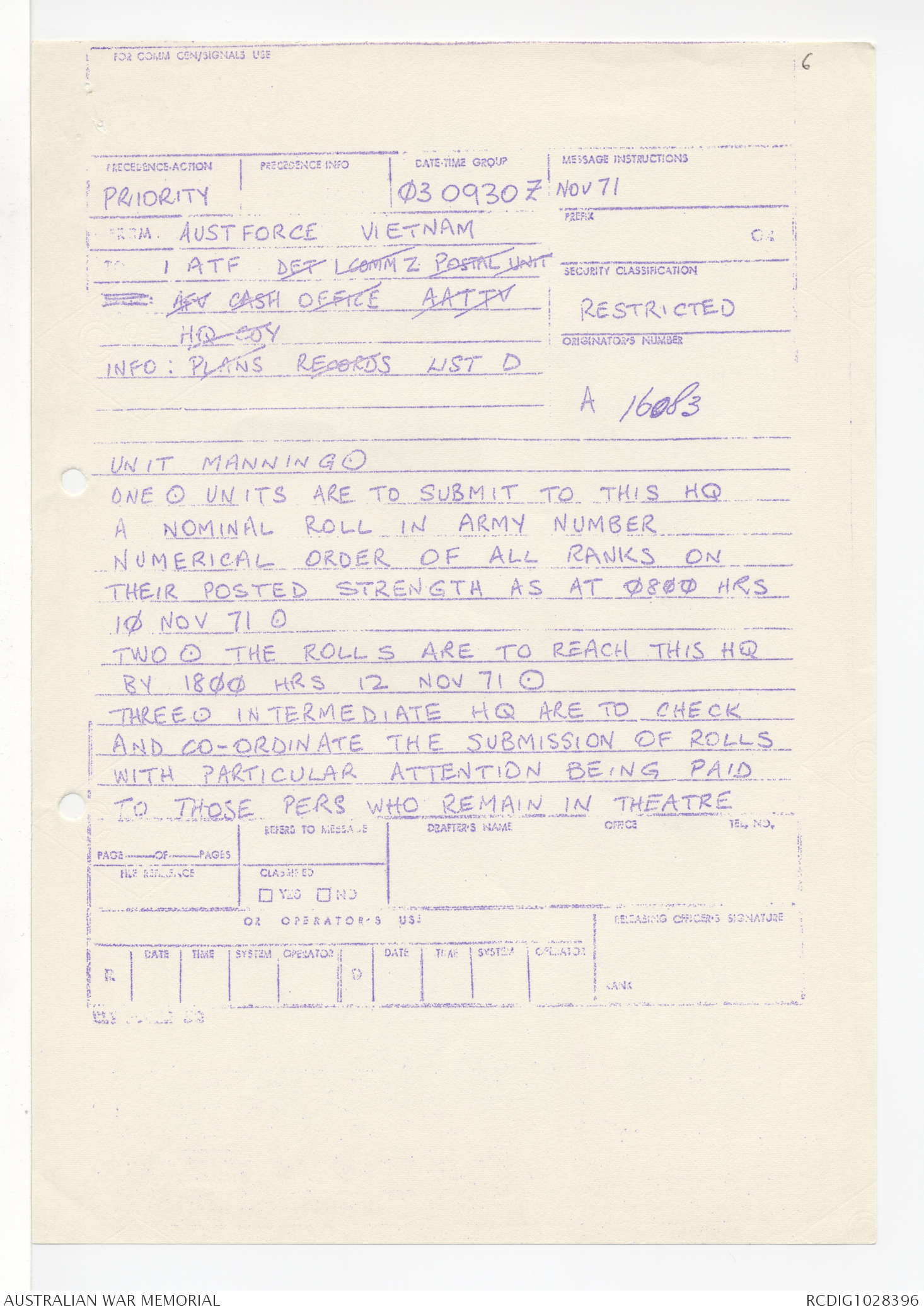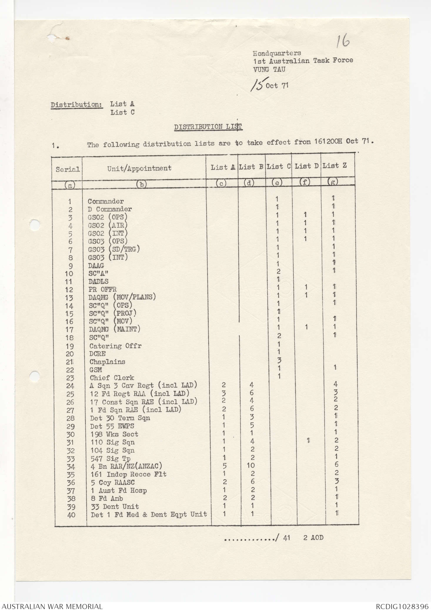 - AWM95 Subclass 1/4 - Headquarters, 1 Australian Task Force