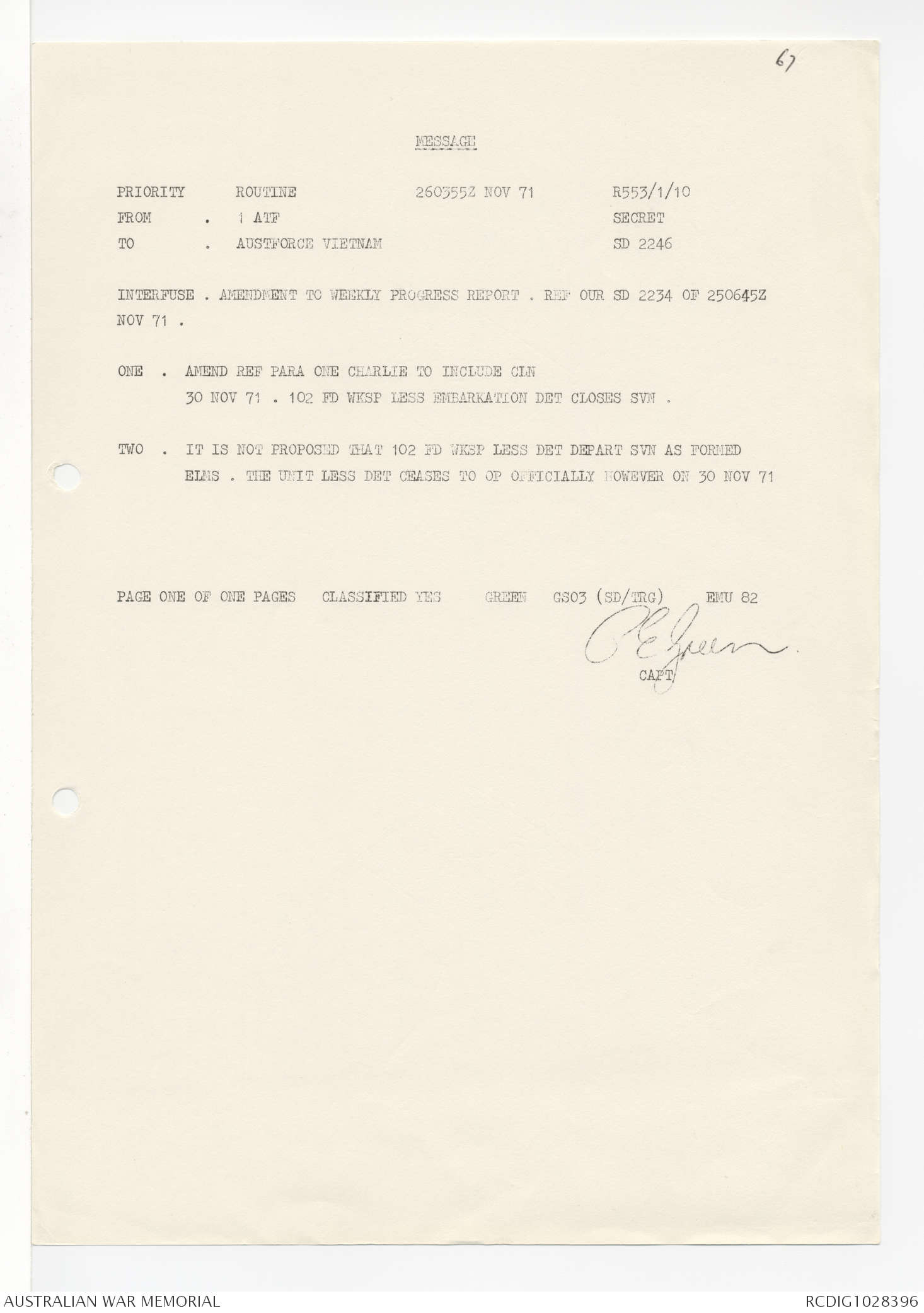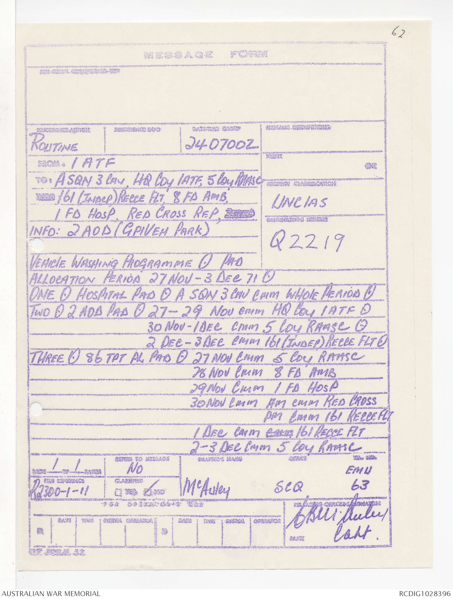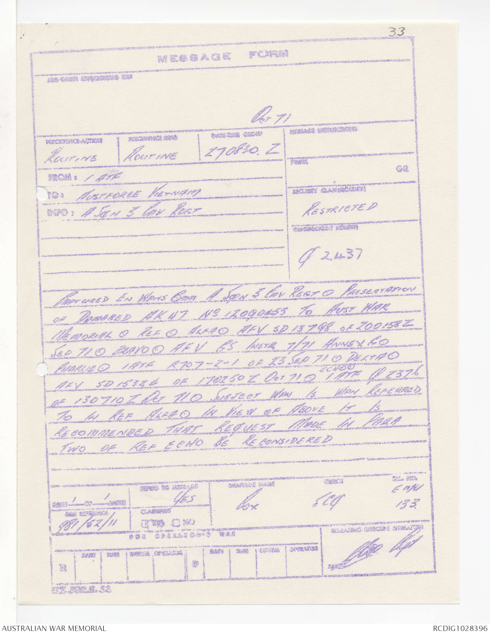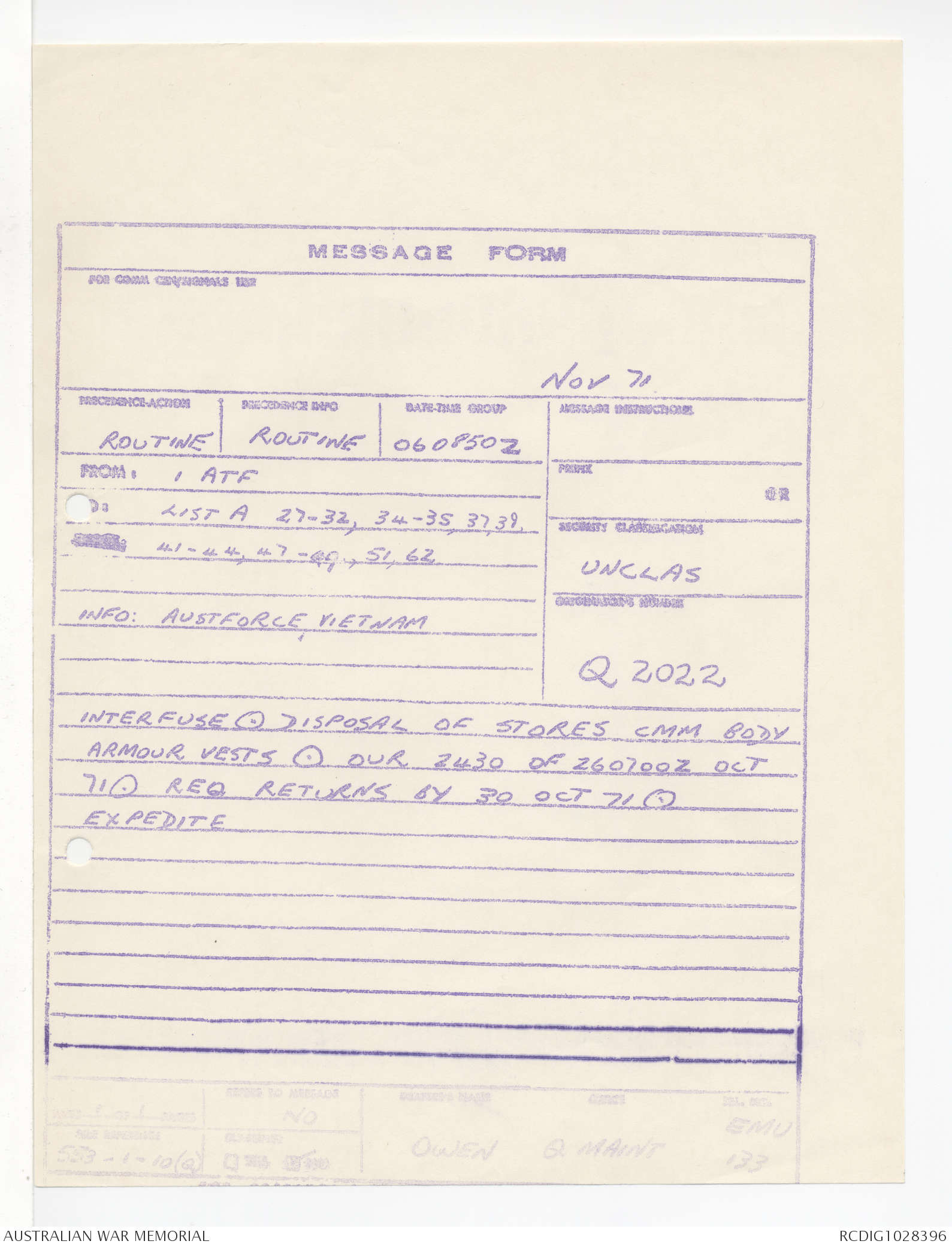 - AWM95 Subclass 1/4 - Headquarters, 1 Australian Task Force