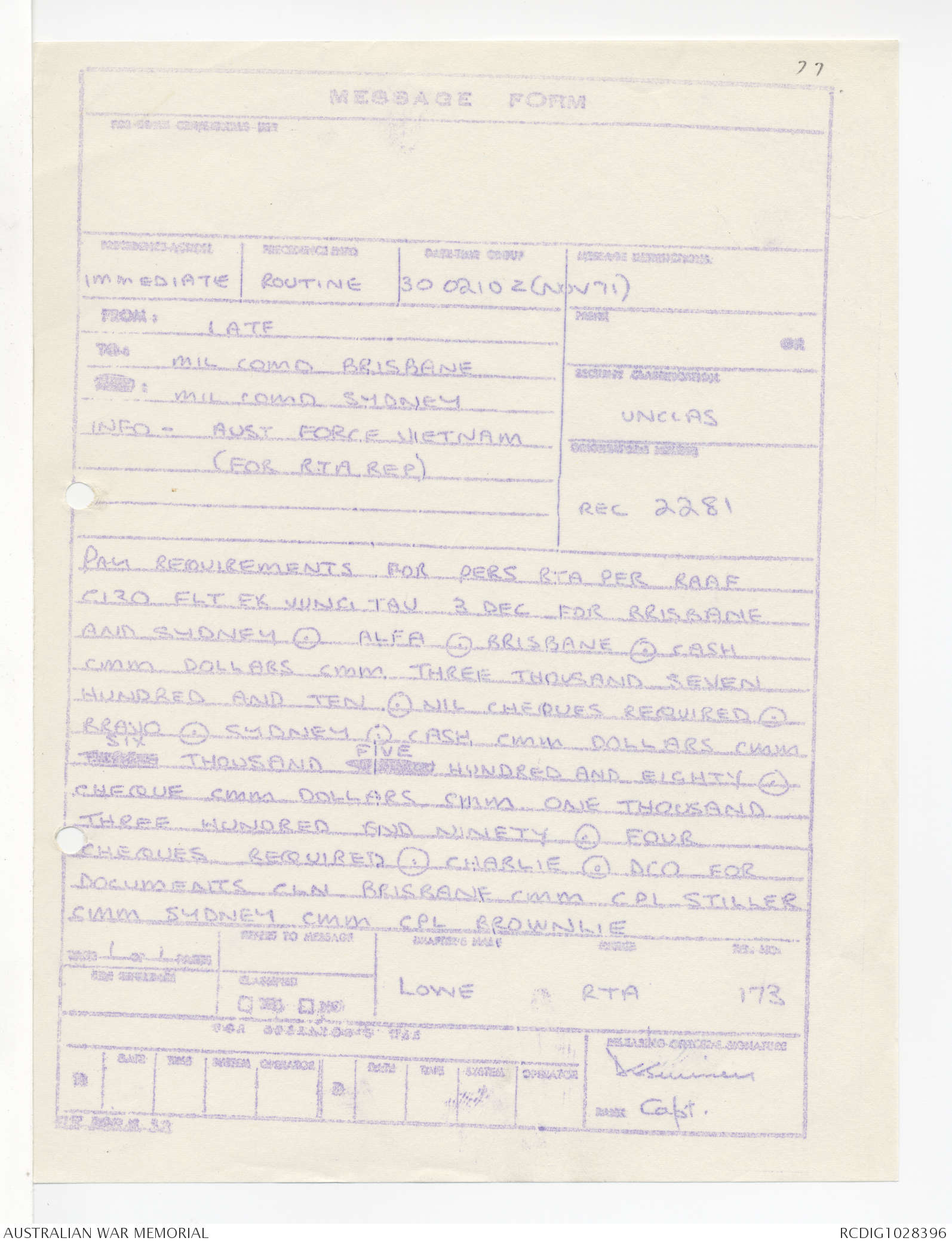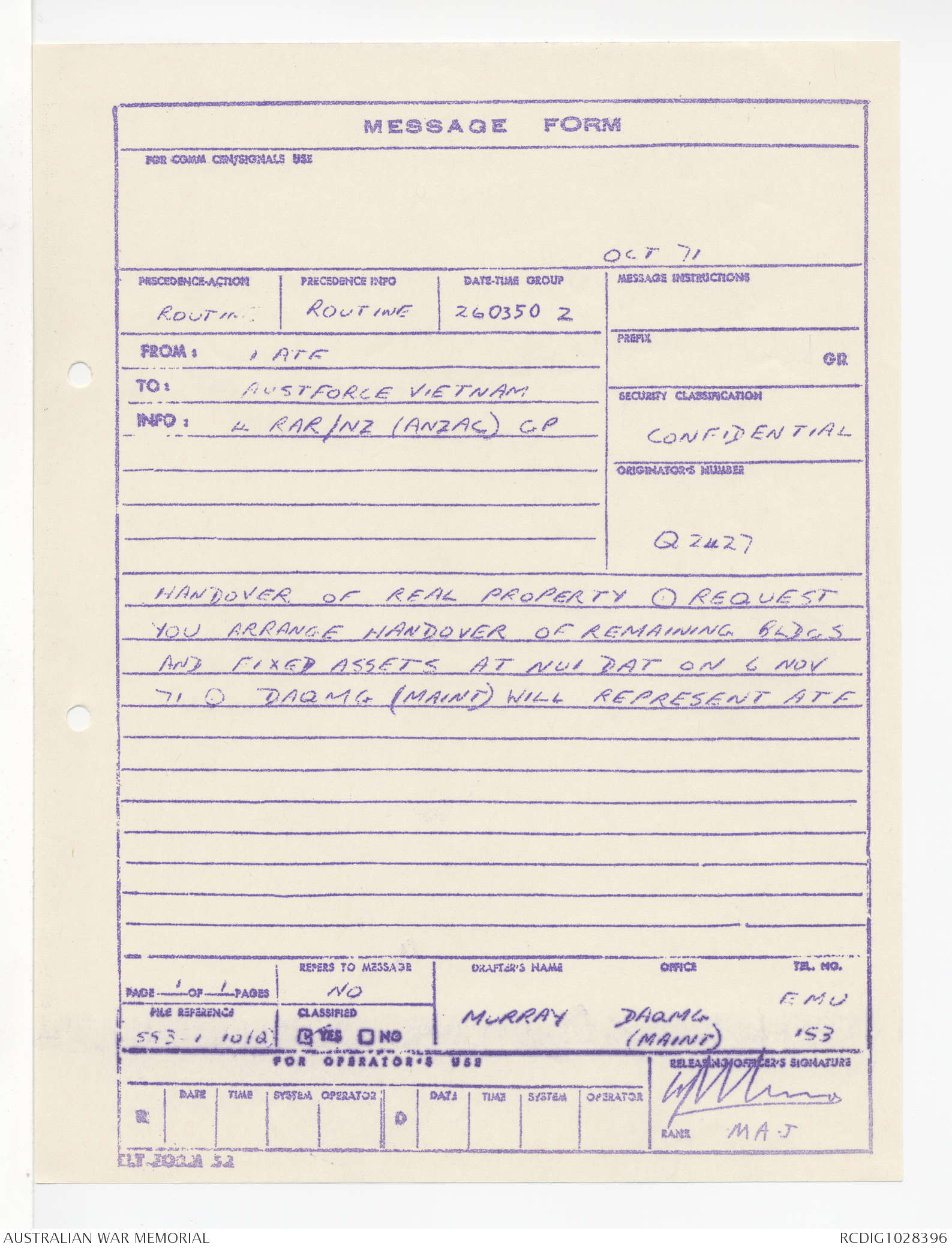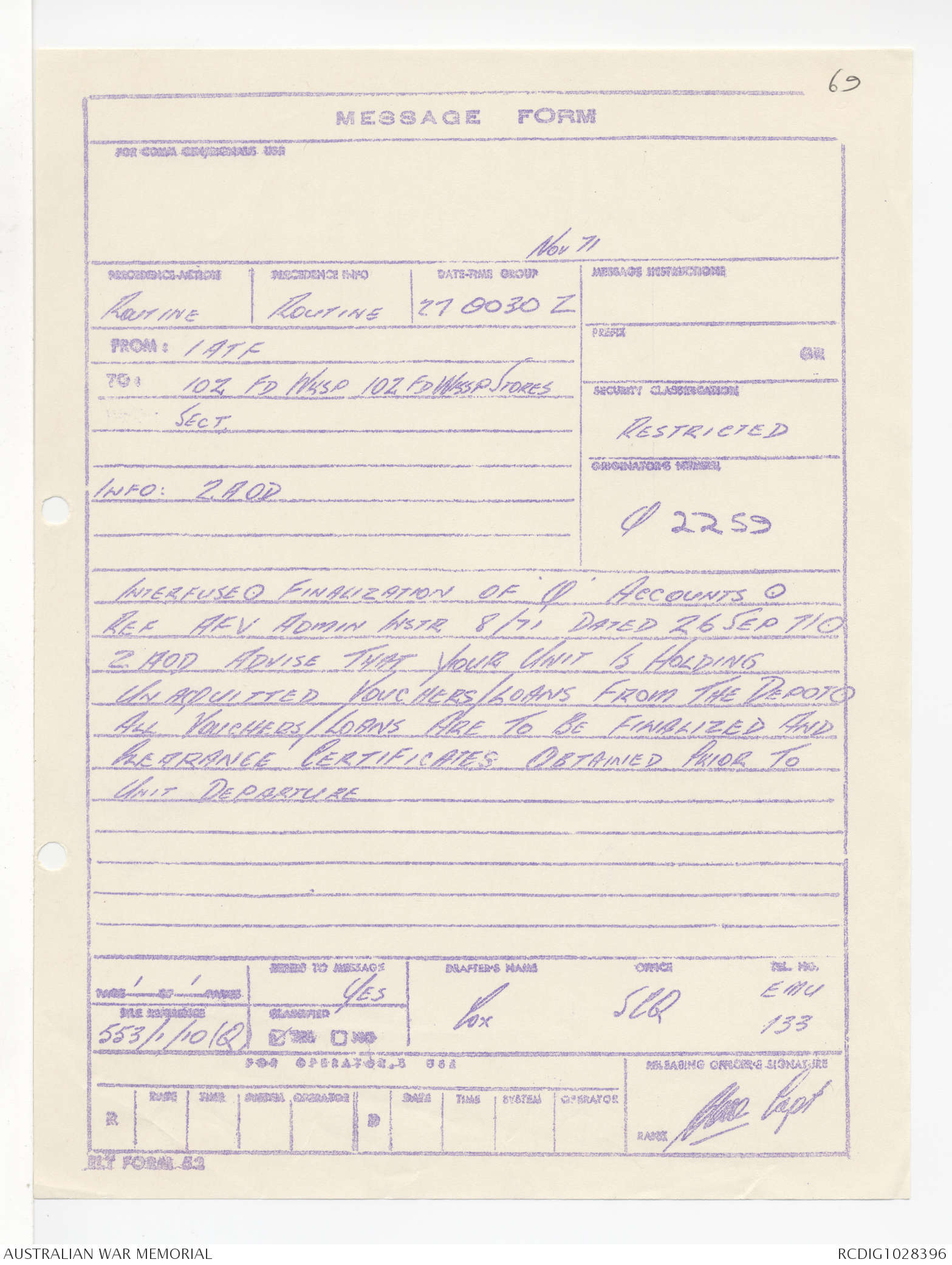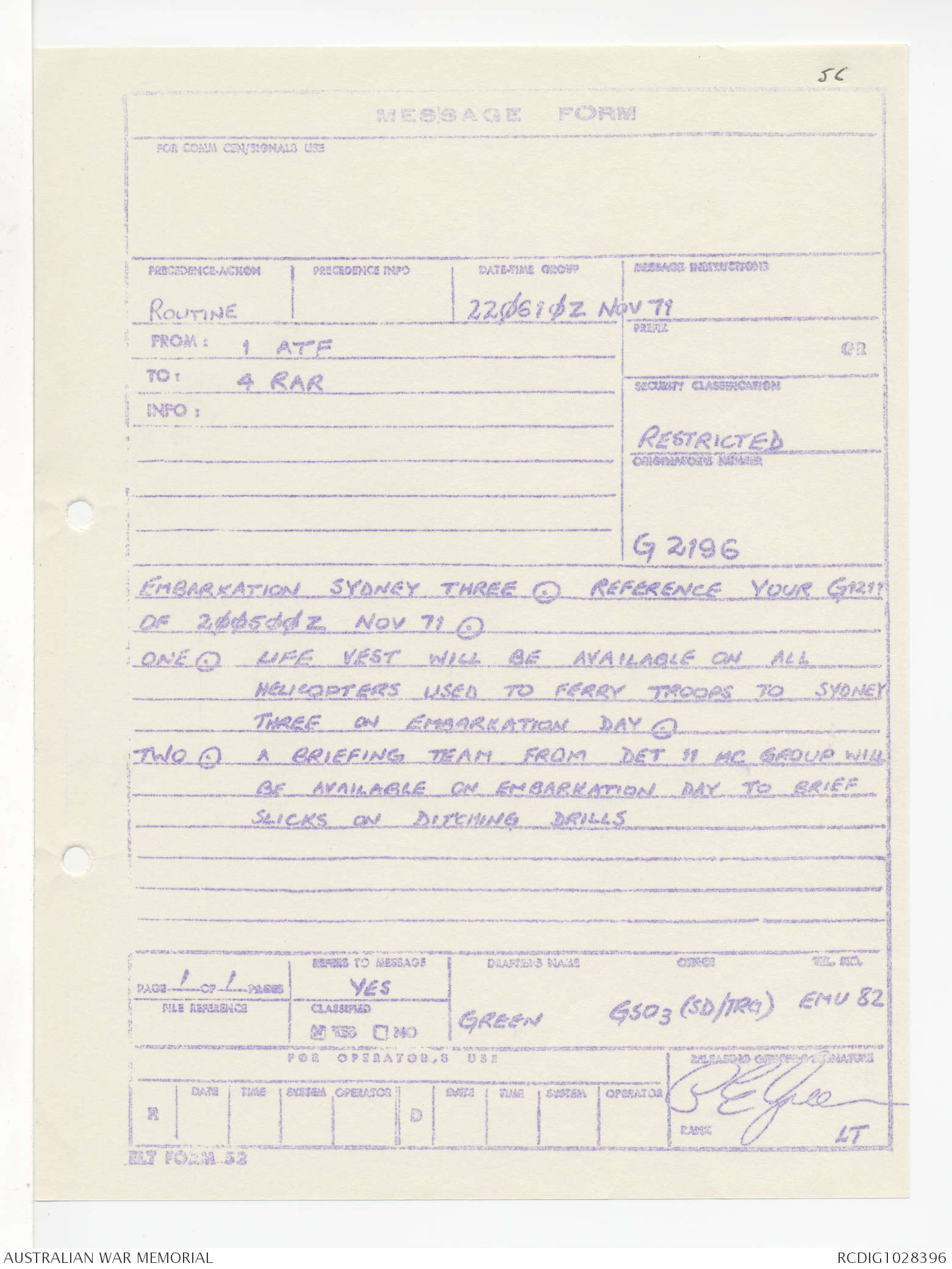 - AWM95 Subclass 1/4 - Headquarters, 1 Australian Task Force