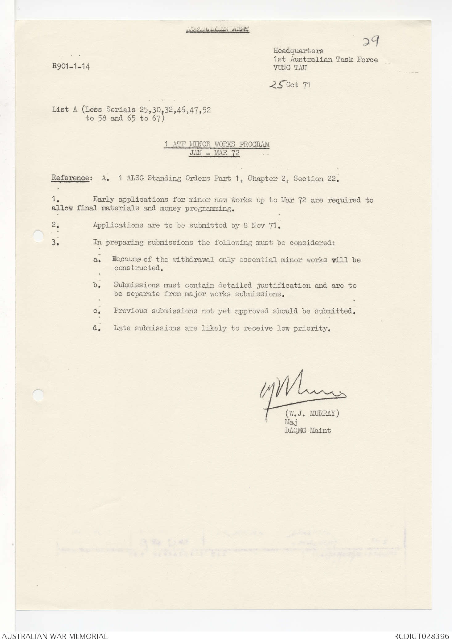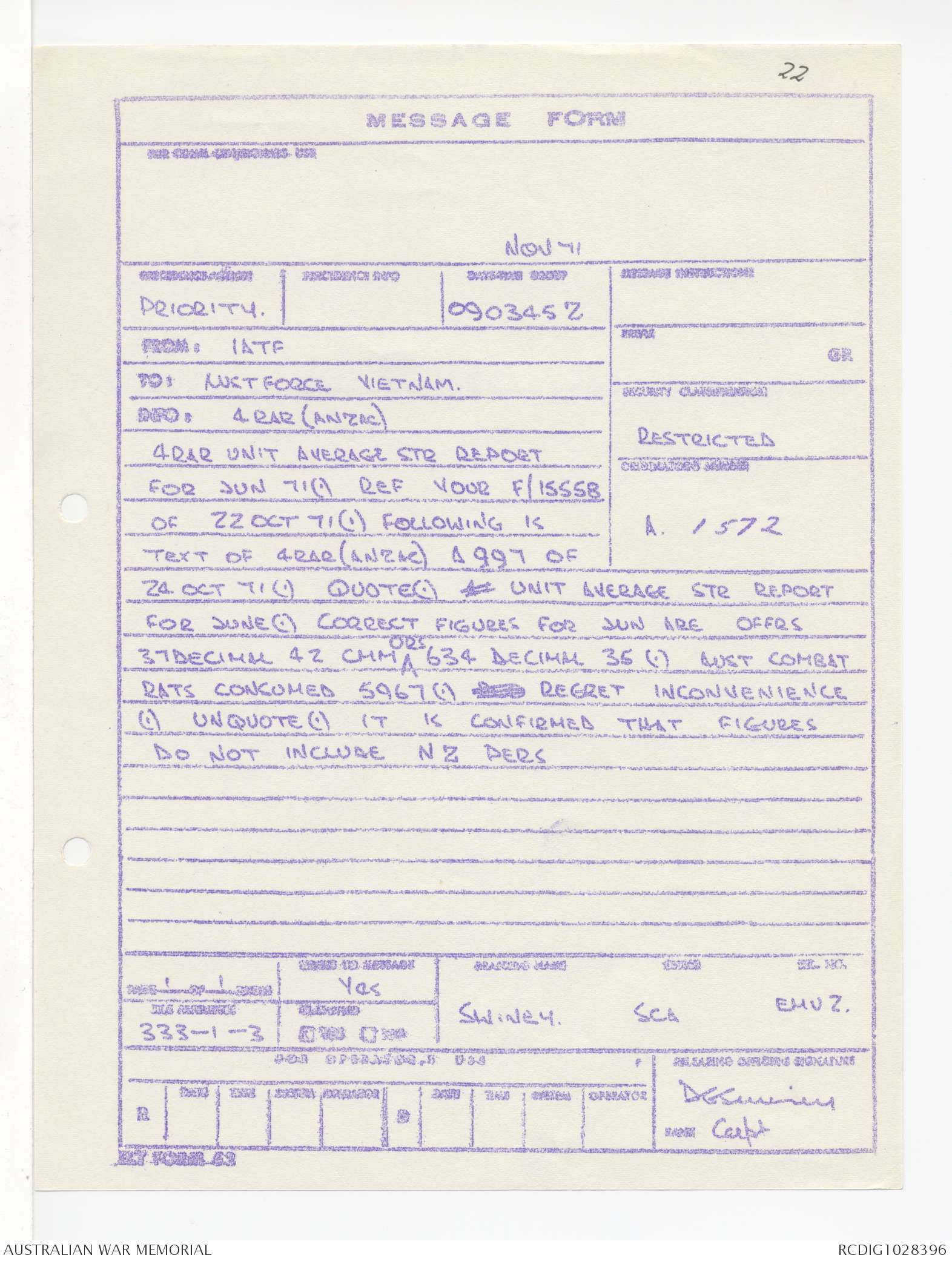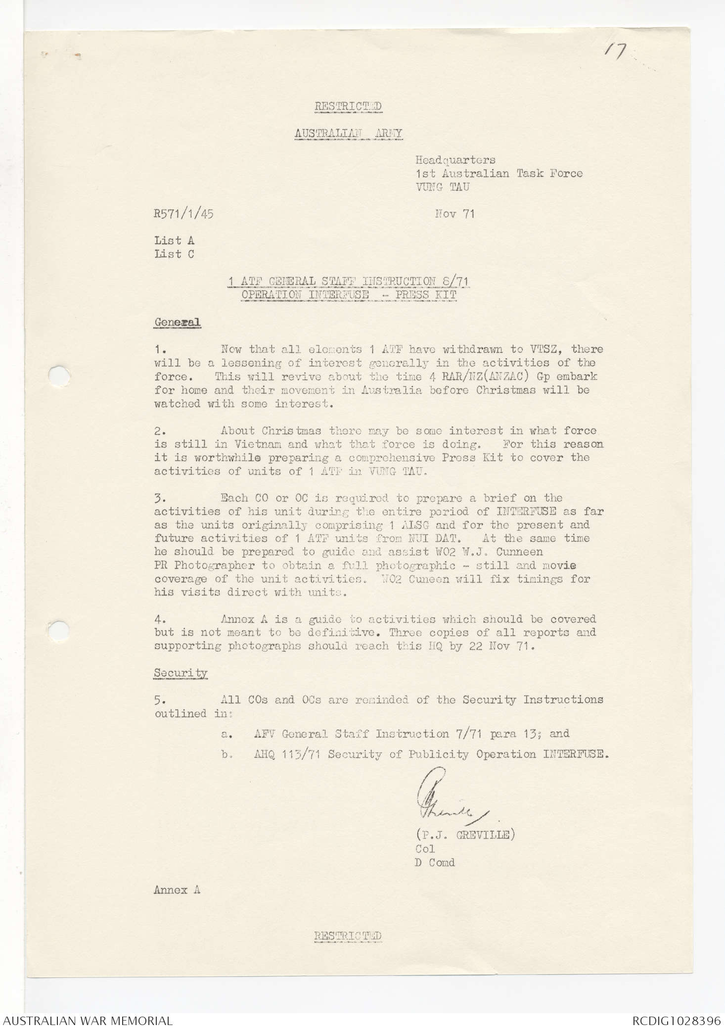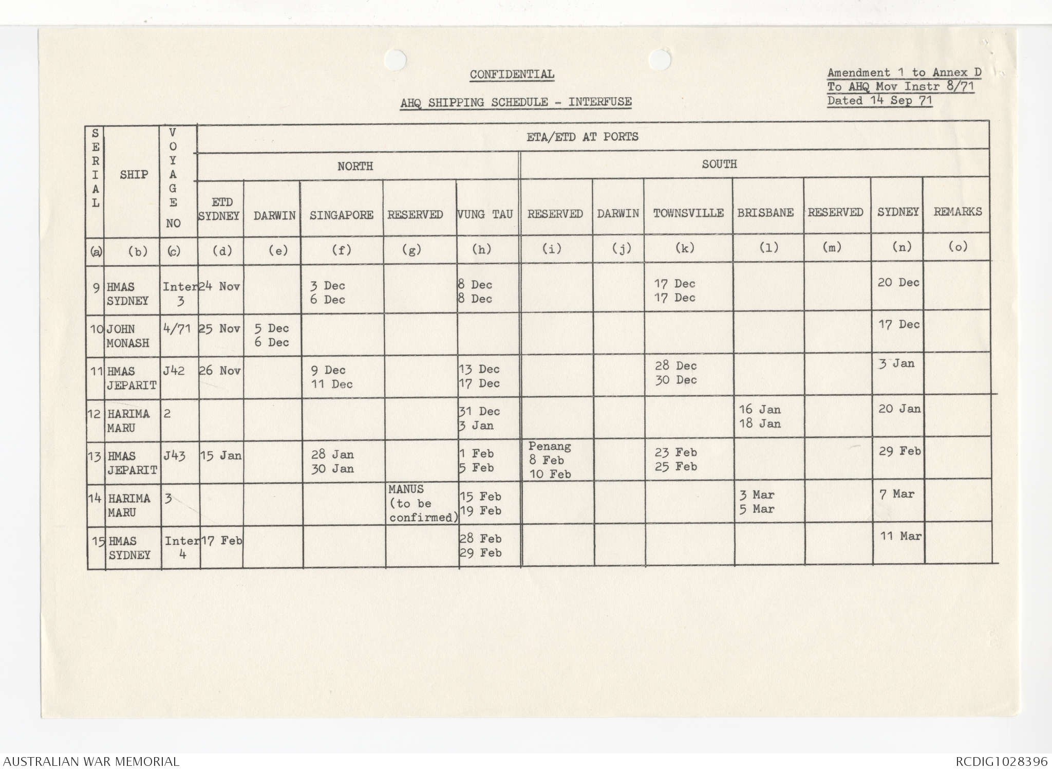 AWM95 1/4/245 - 1-30 November 1971, Annexes I-J