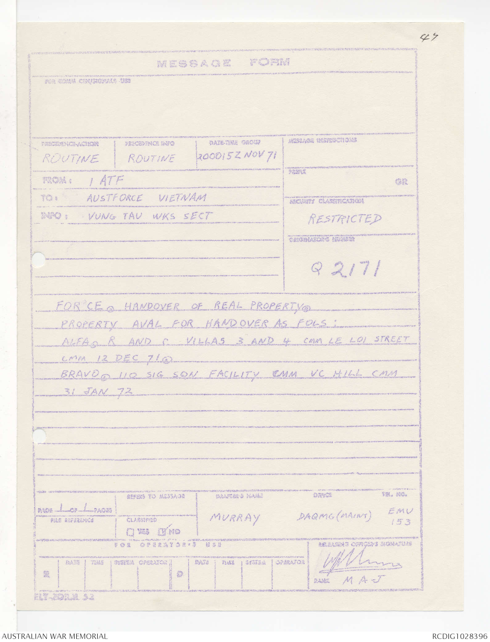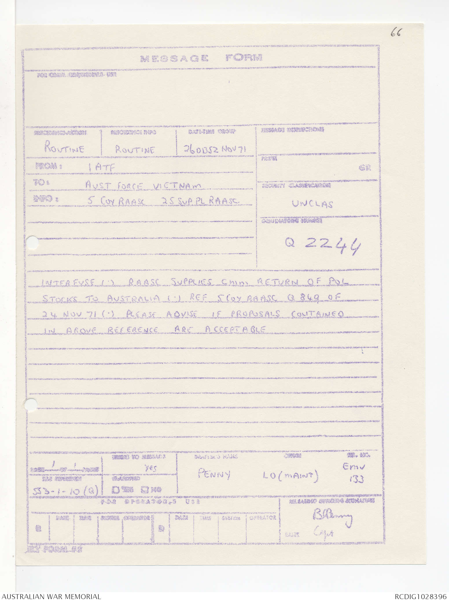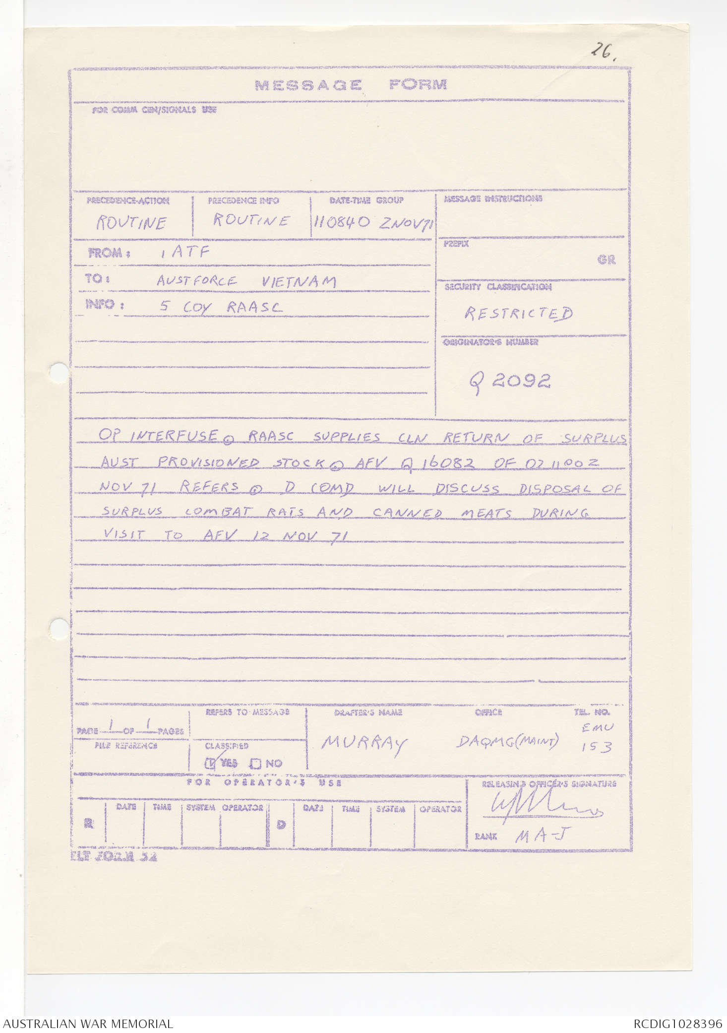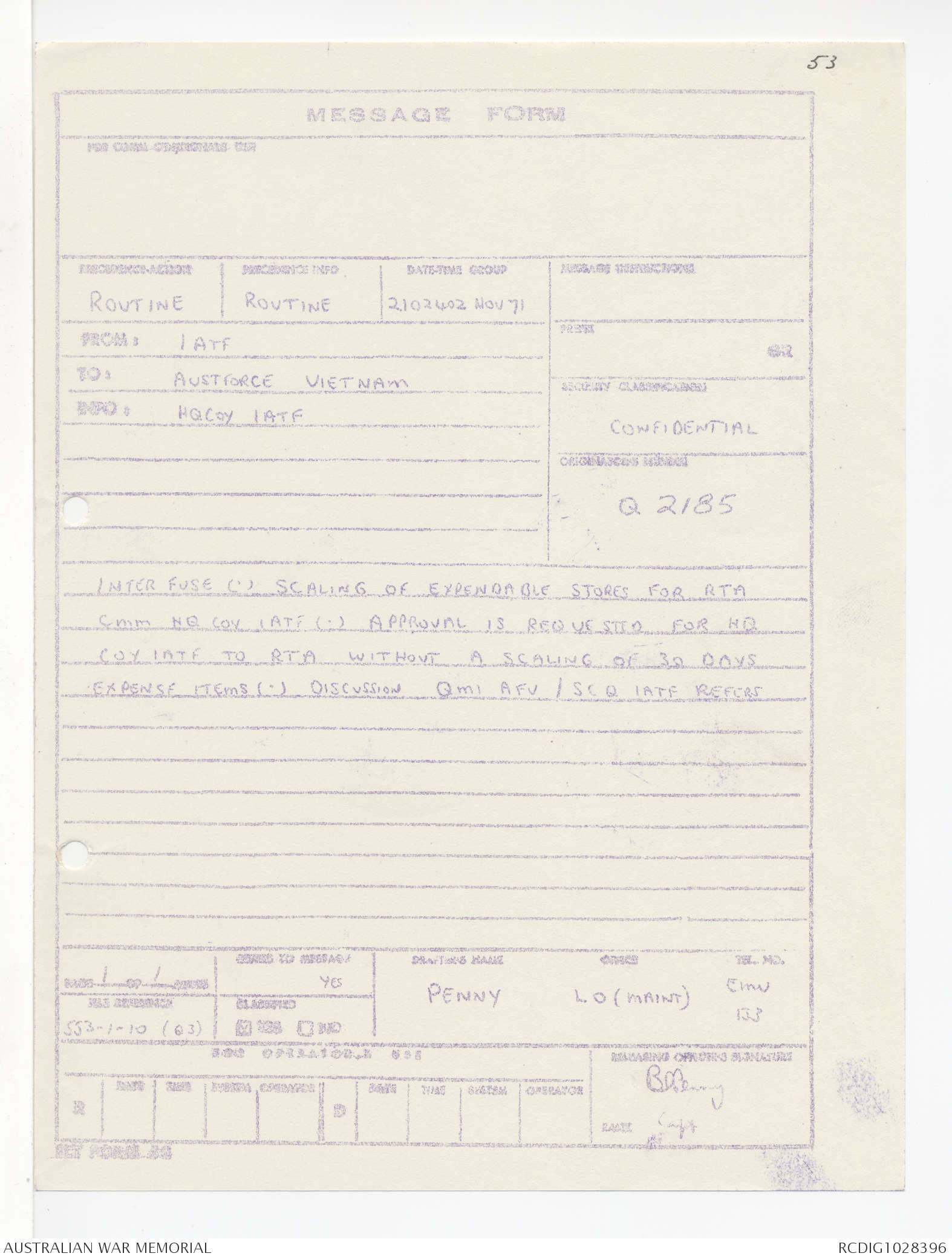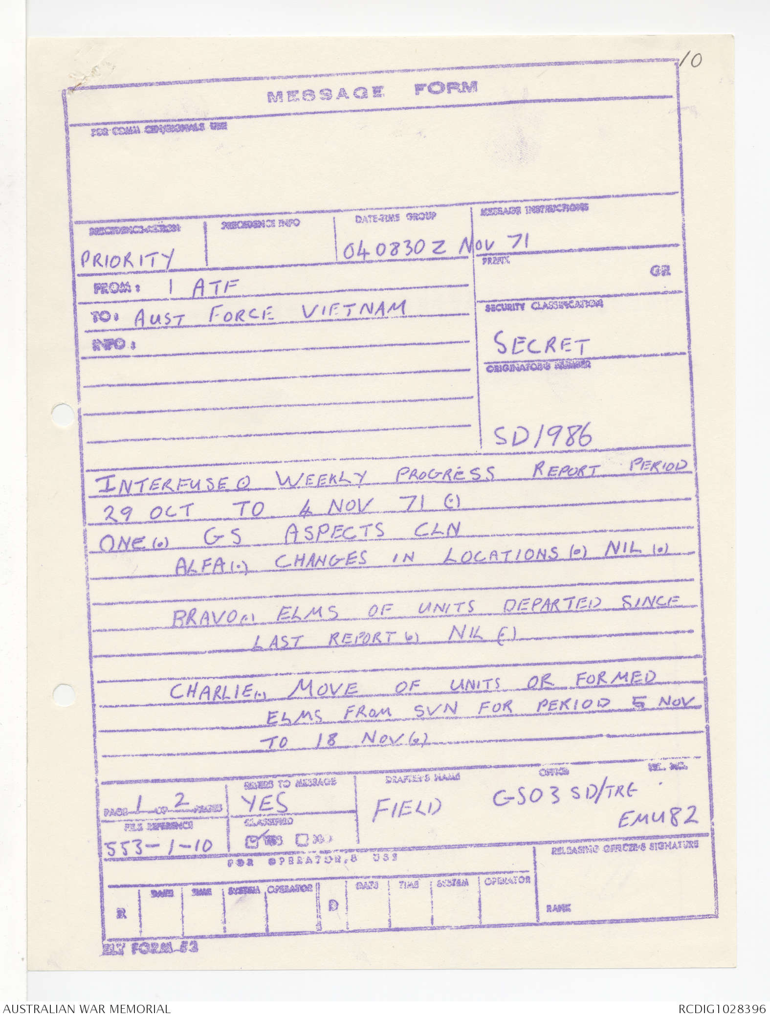 AWM95 1/4/245 - 1-30 November 1971, Annexes I-J