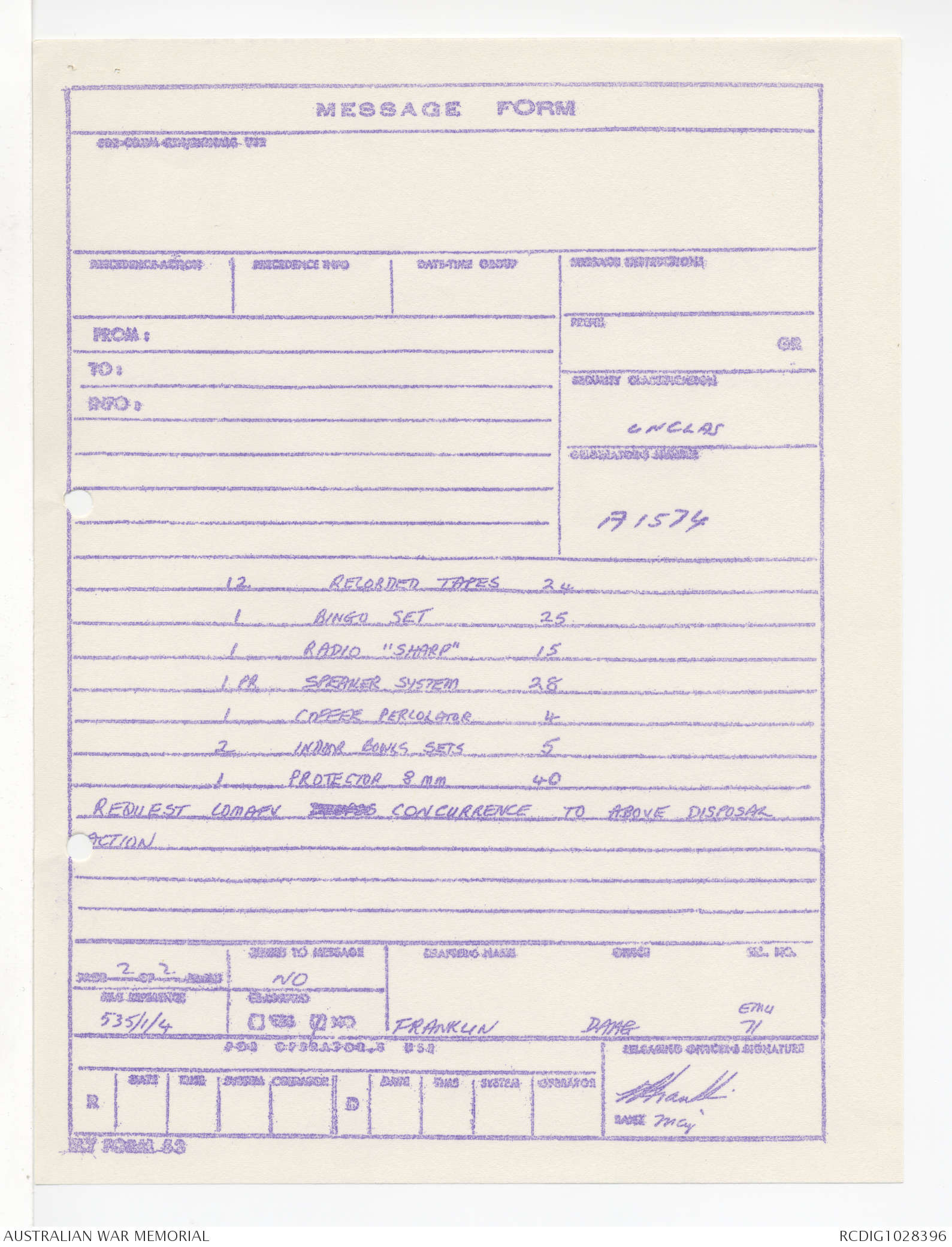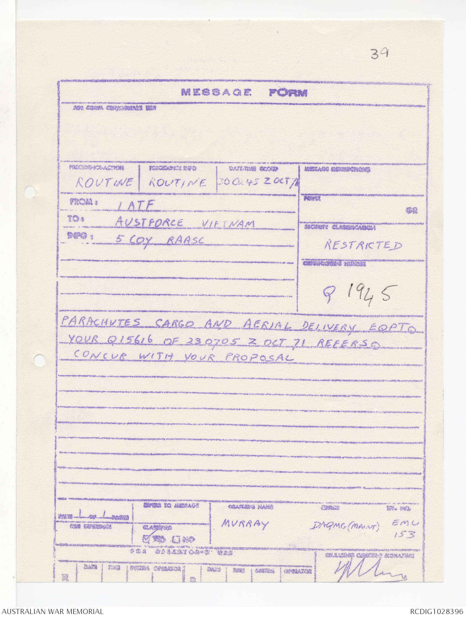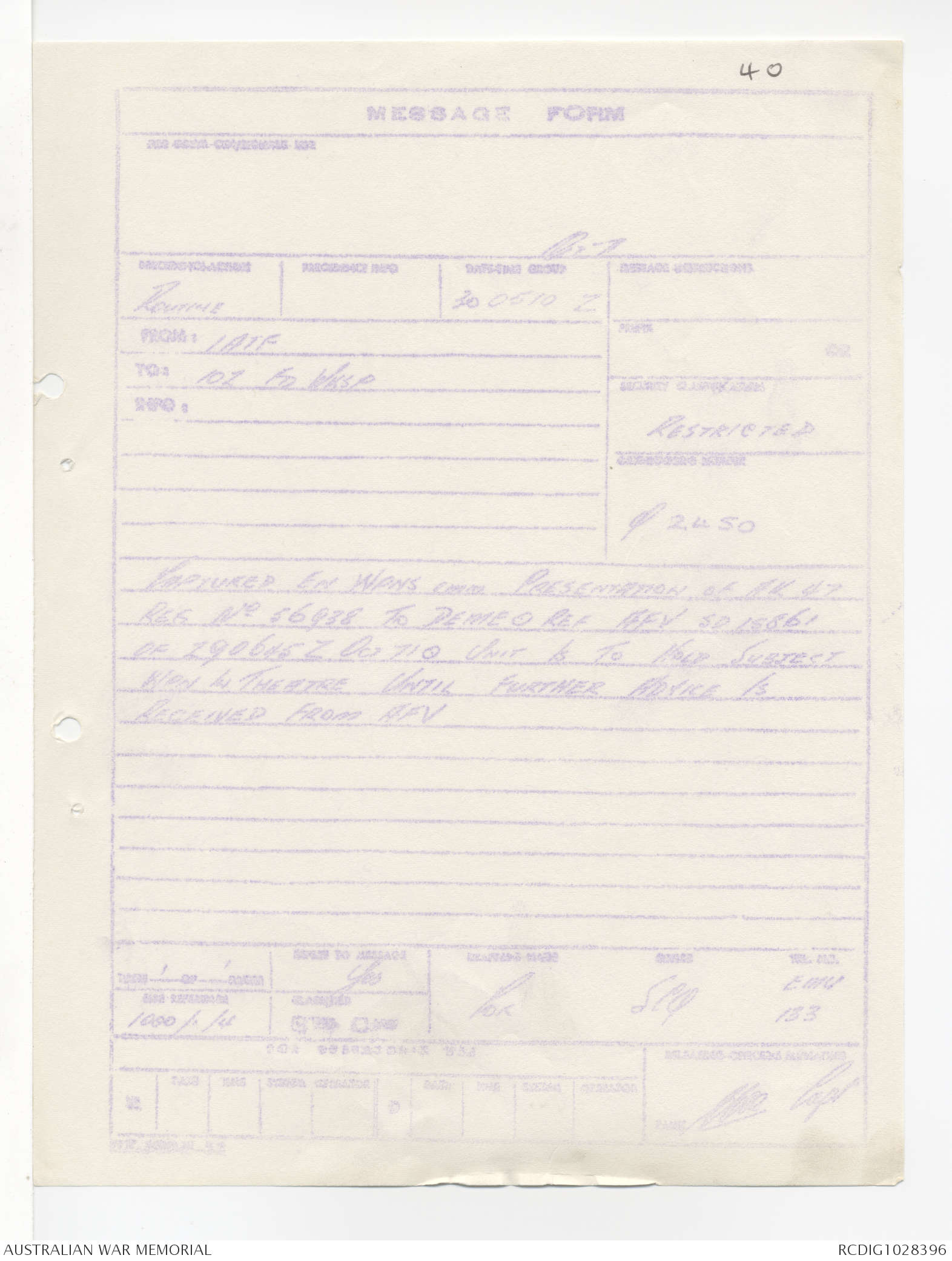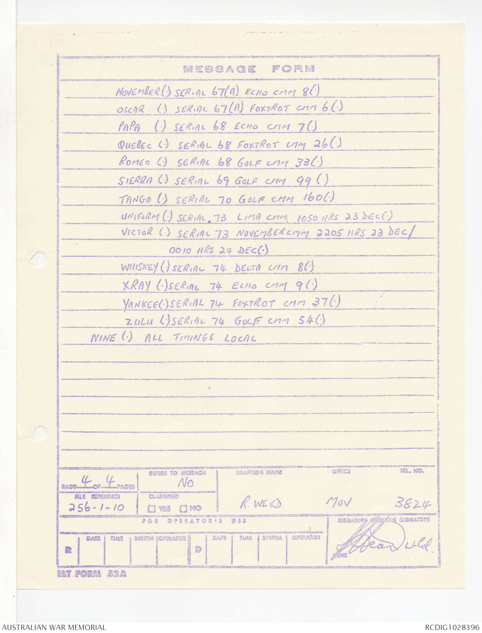 | Collection number | AWM95 1/4/245 |