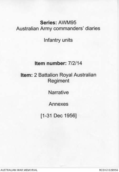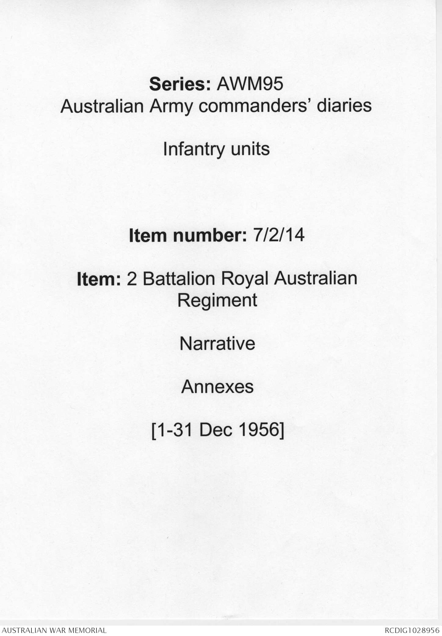 AWM95 7/2/14 - 1-31 December 1956, Narrative, Annexes
