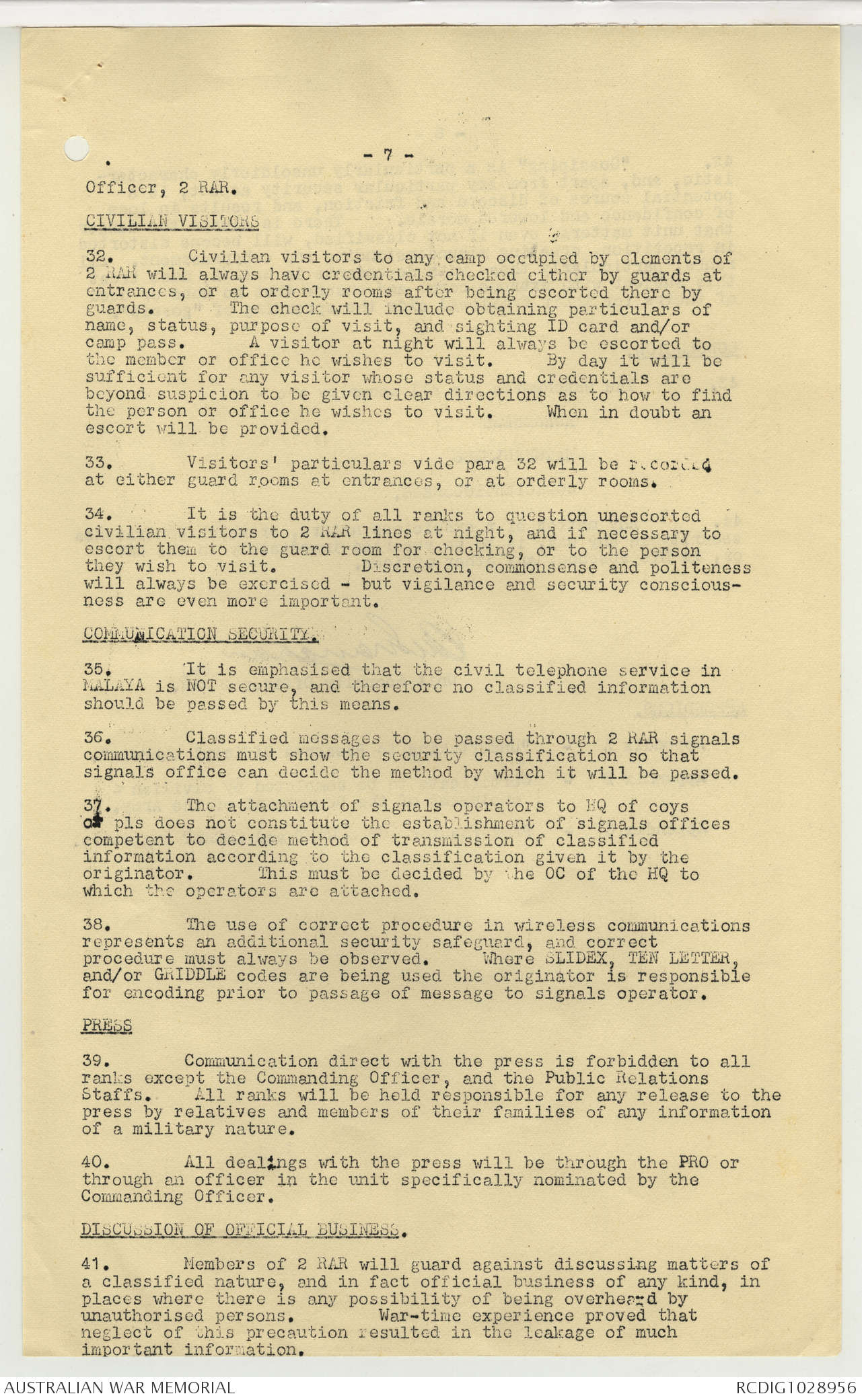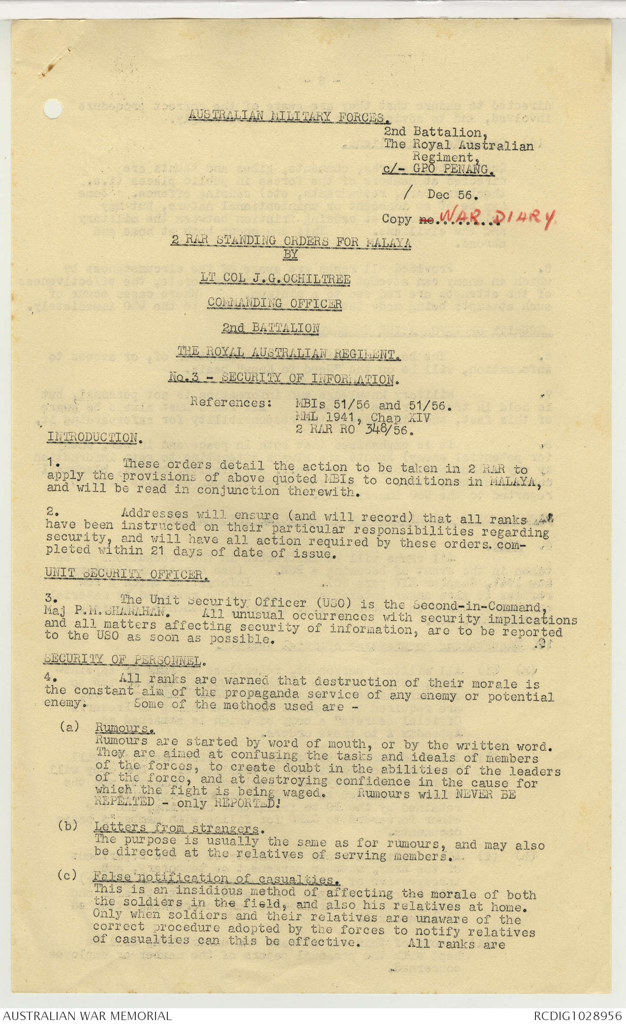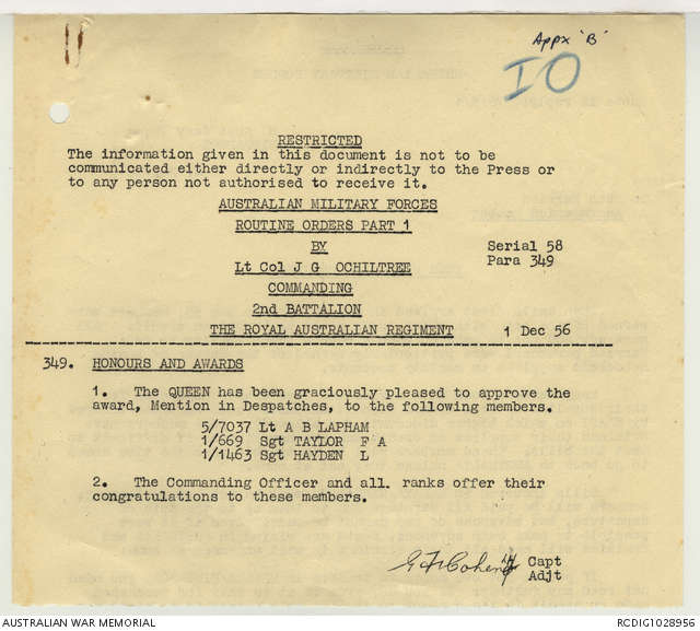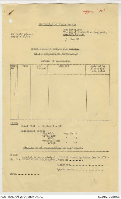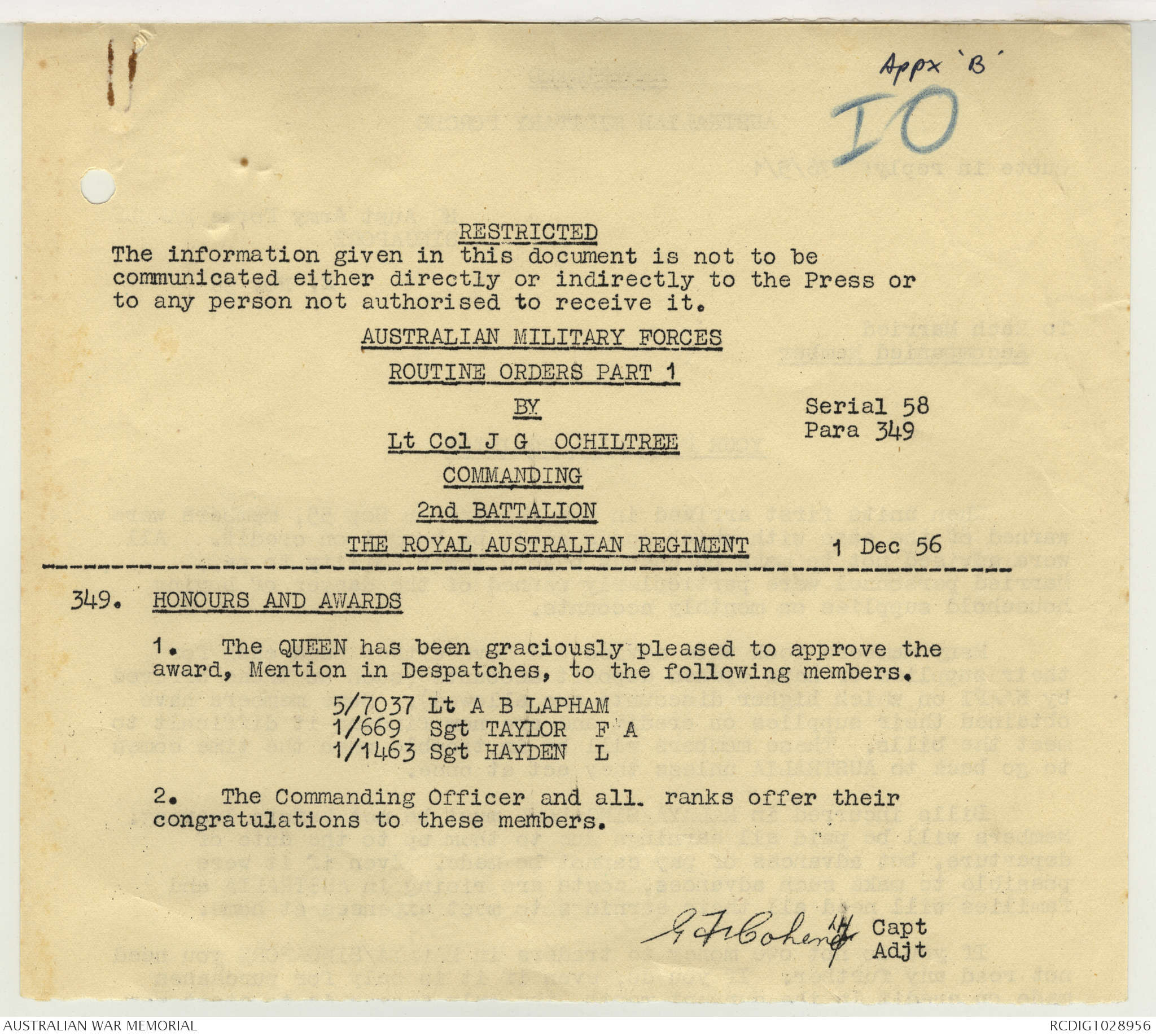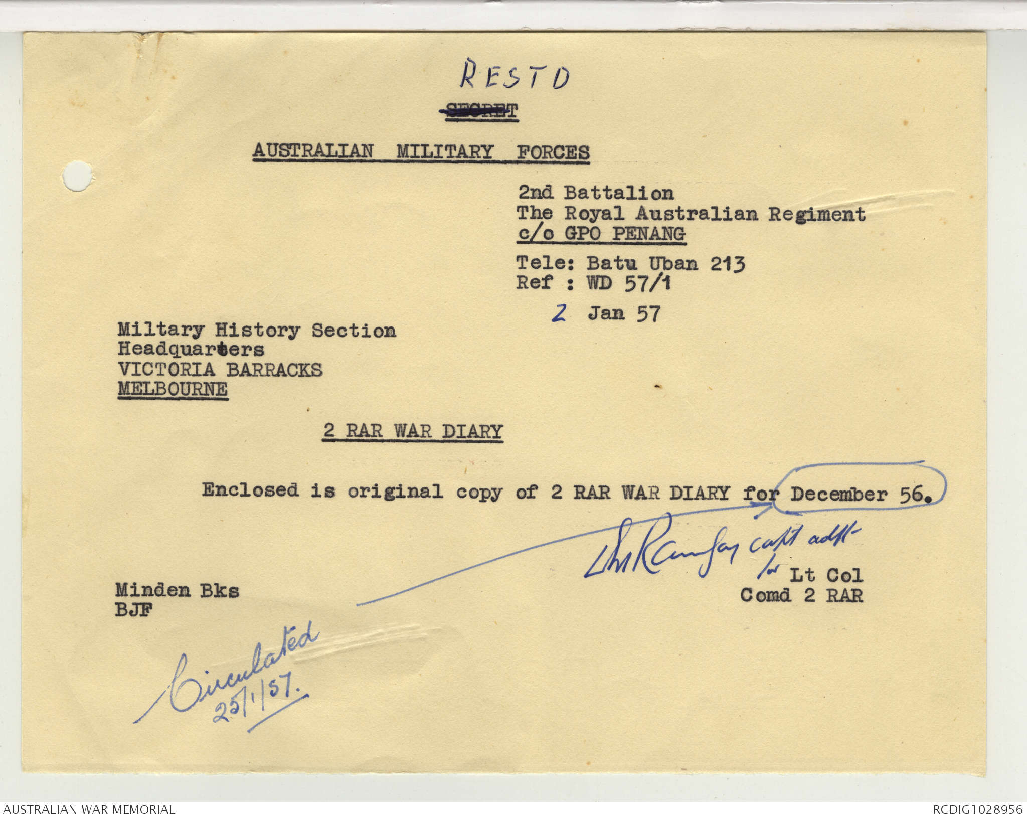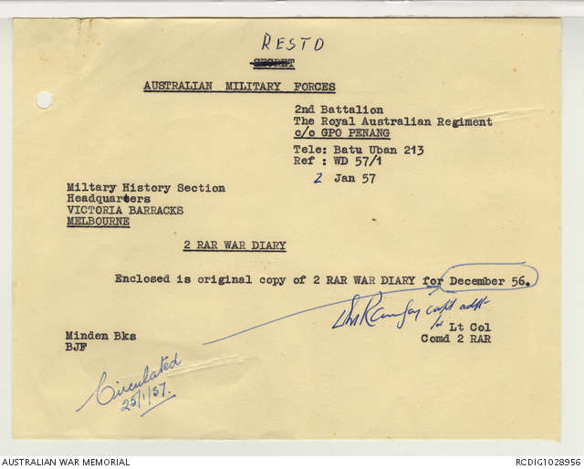 - AWM95 Subclass 7/2 - 2 Battalion Royal Australian Regiment