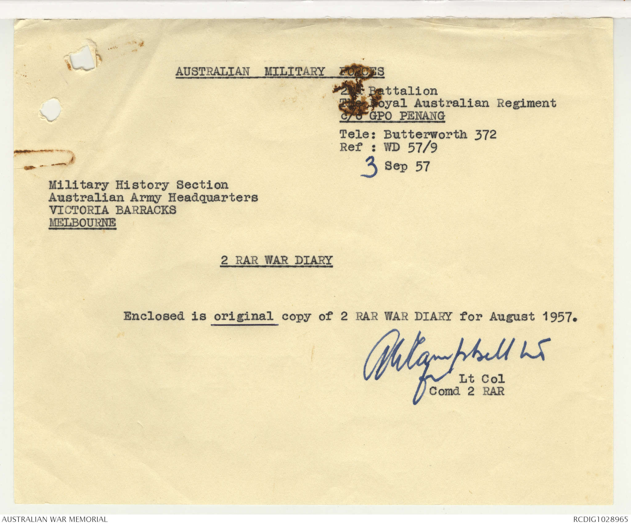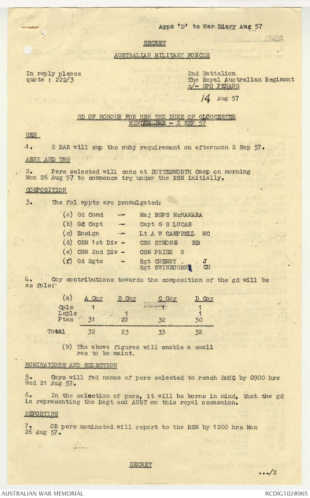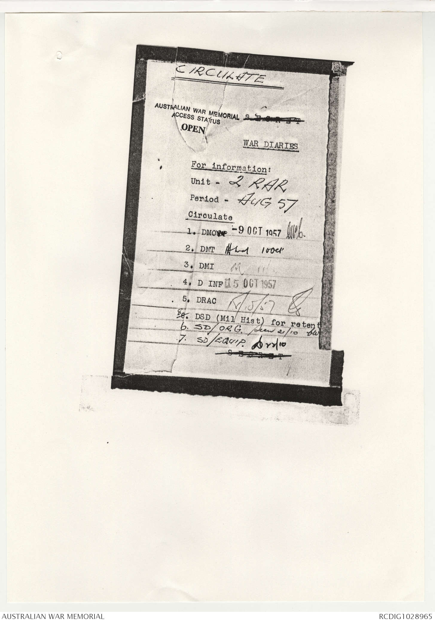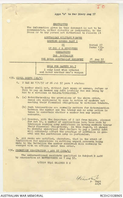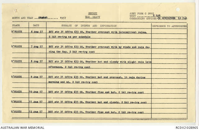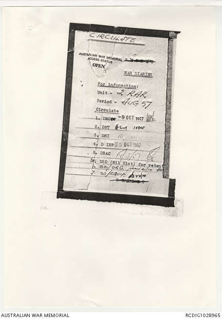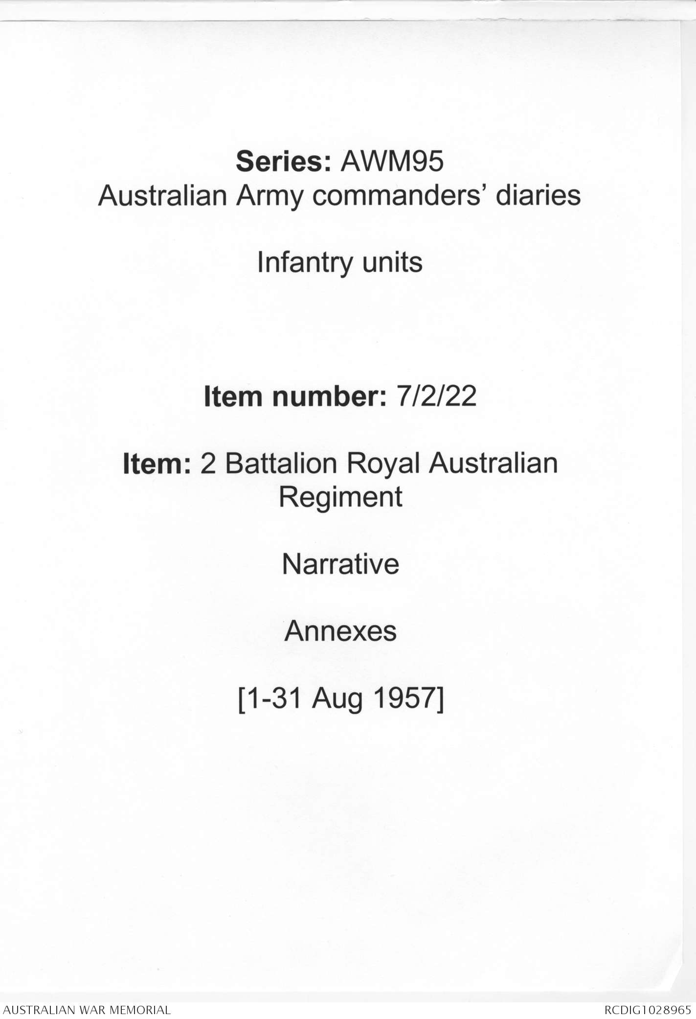 - AWM95 Subclass 7/2 - 2 Battalion Royal Australian Regiment