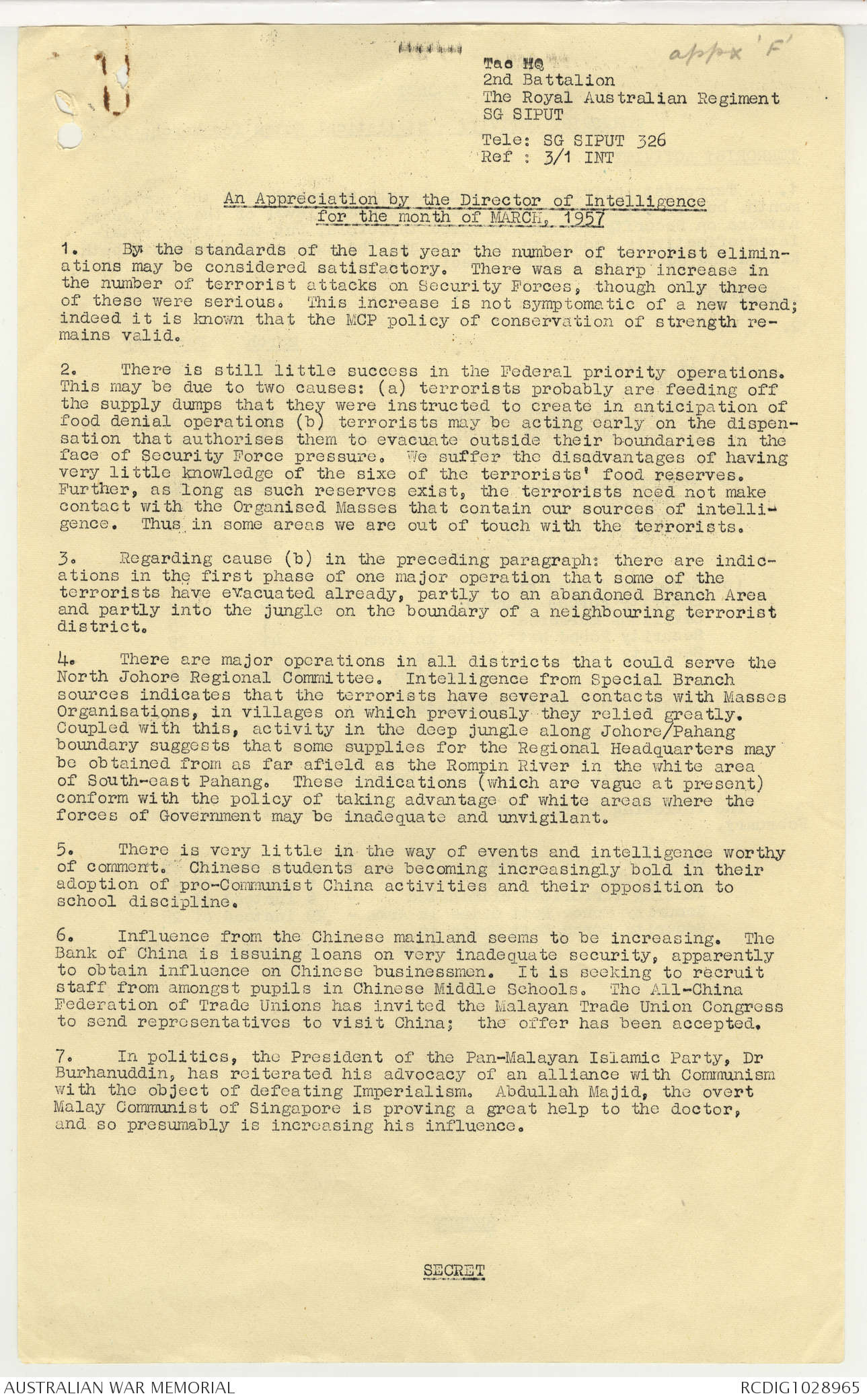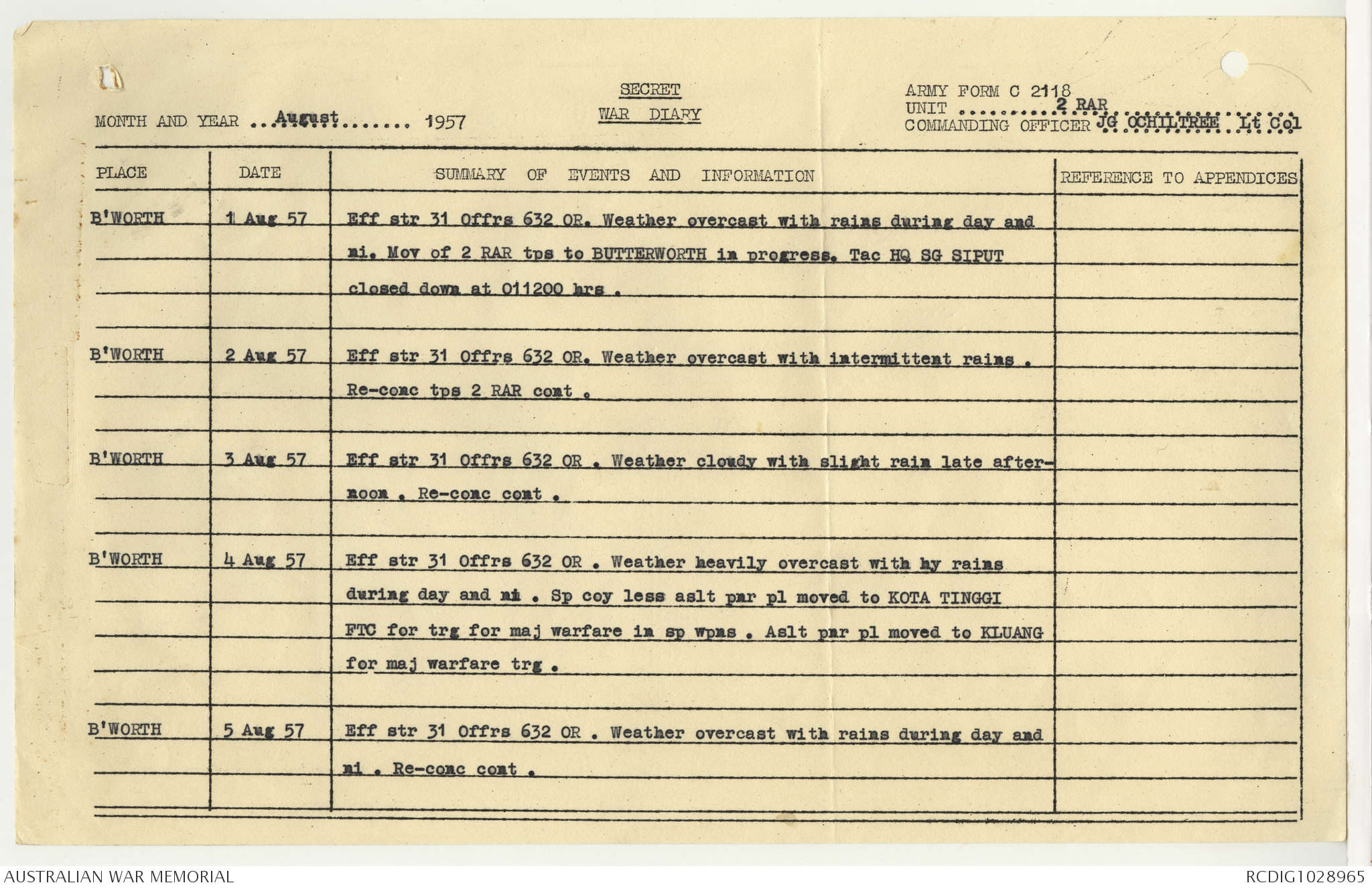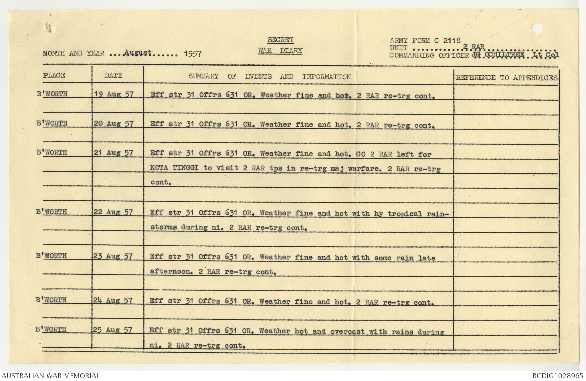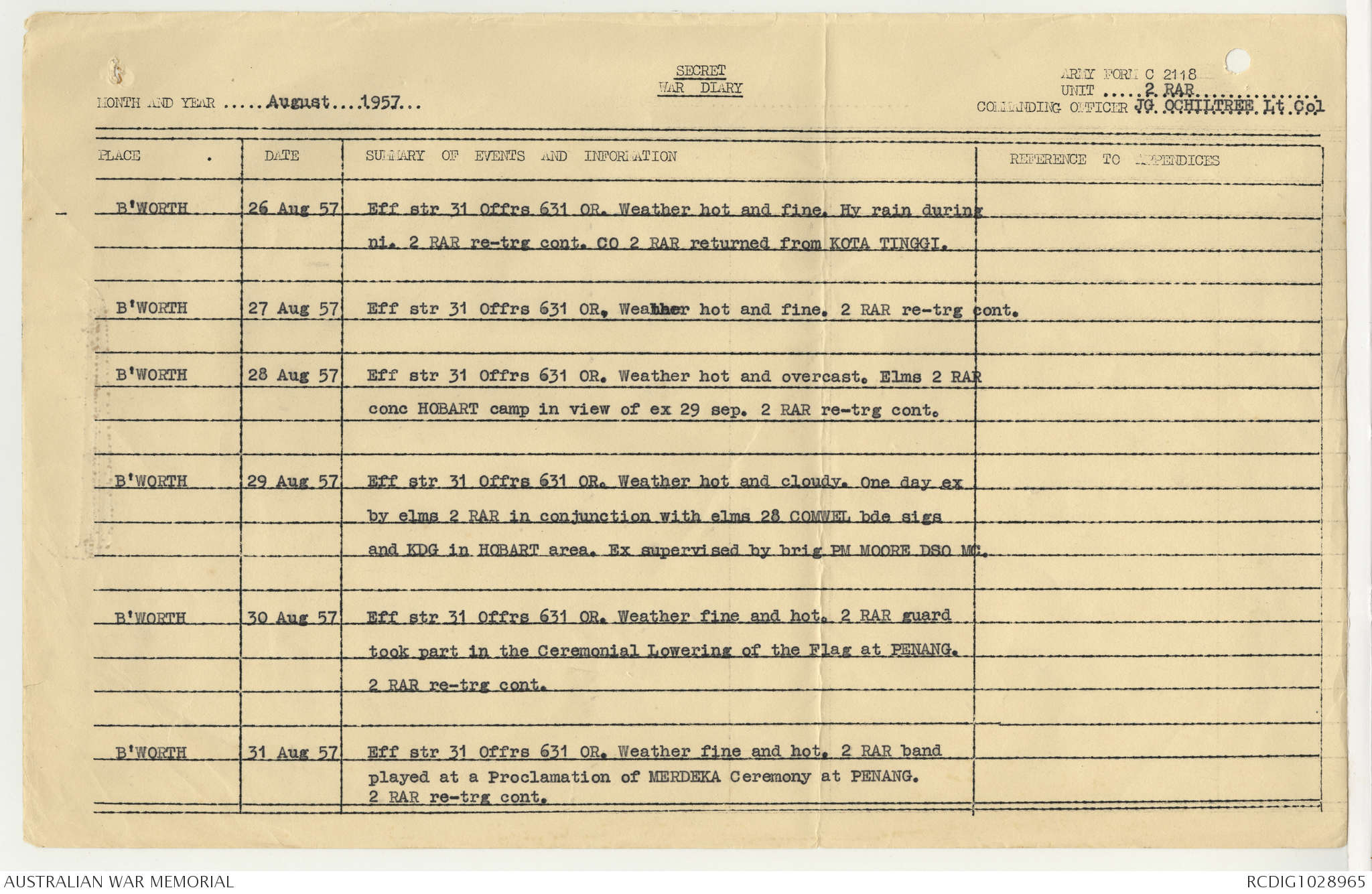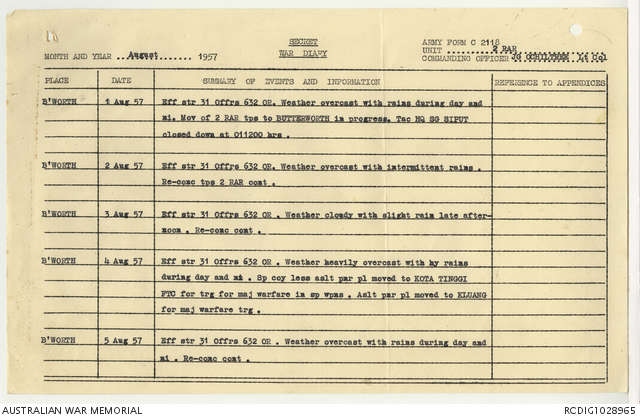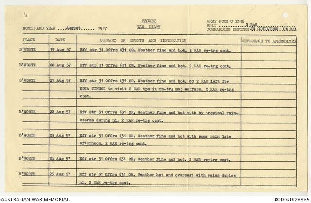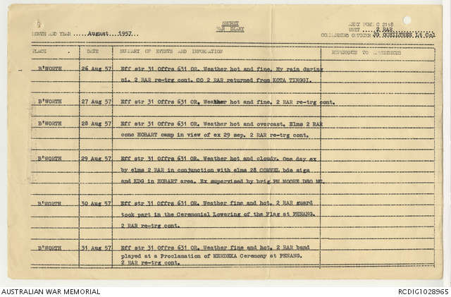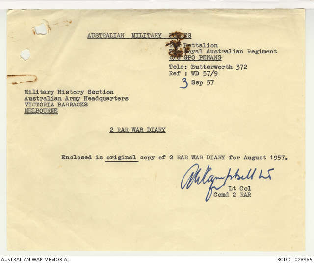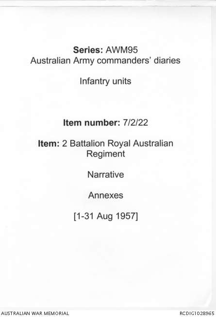 AWM95 7/2/22 - 1-31 August 1957, Narrative, Annexes