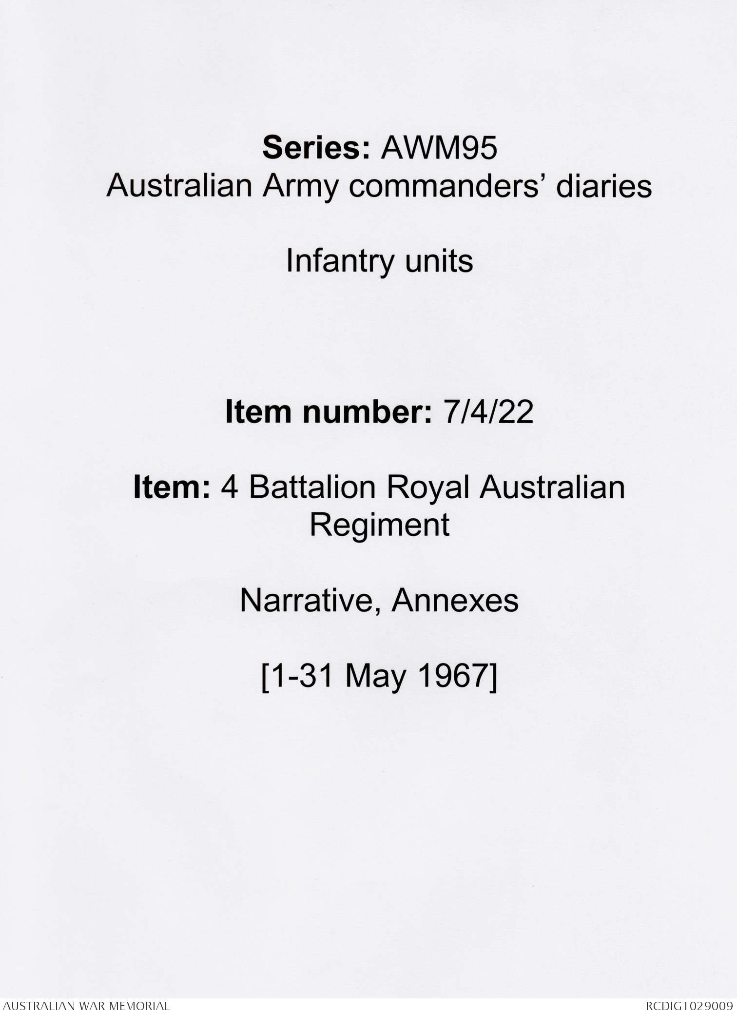 - AWM95 Subclass 7/4 - 4 Battalion Royal Australian Regiment