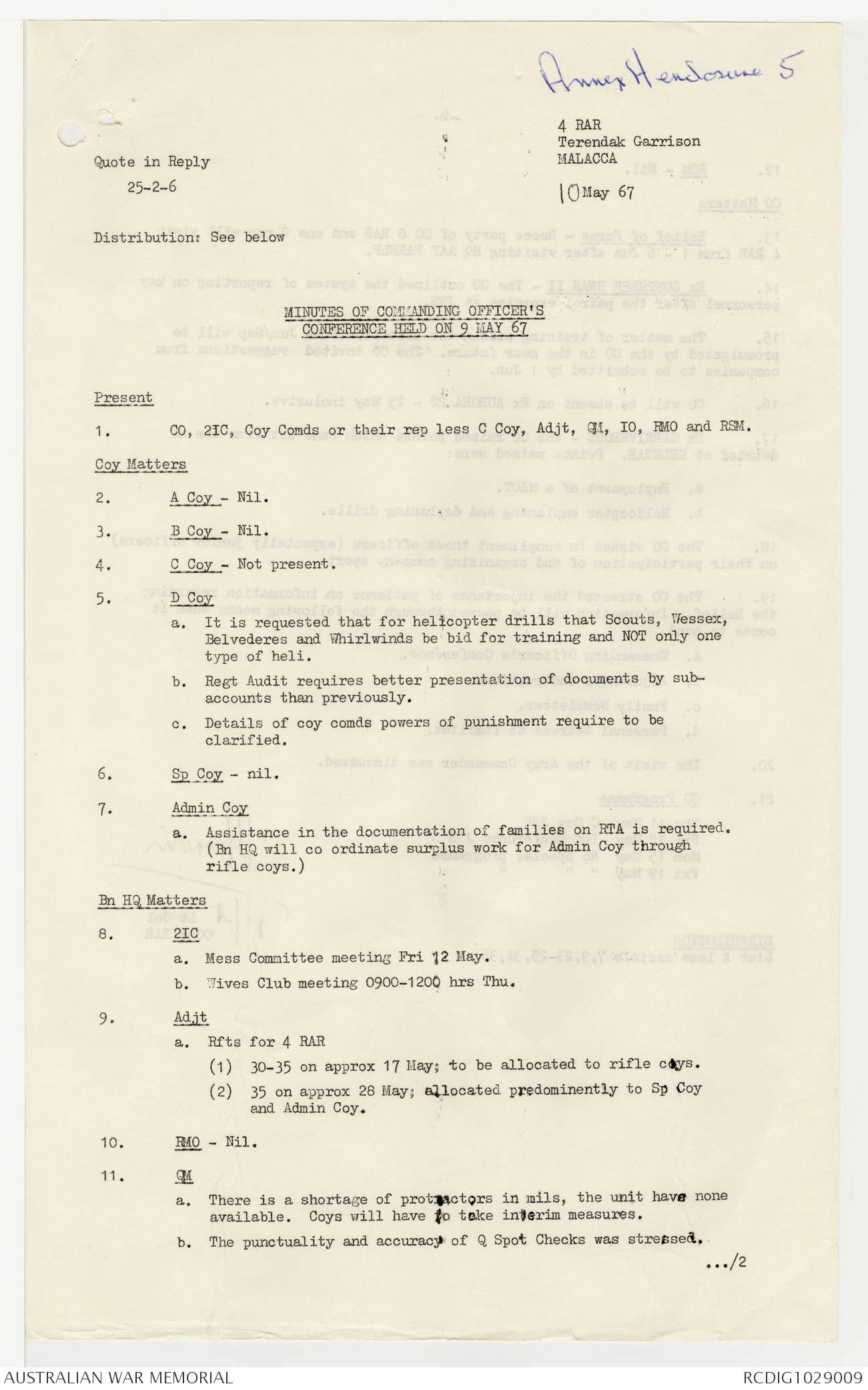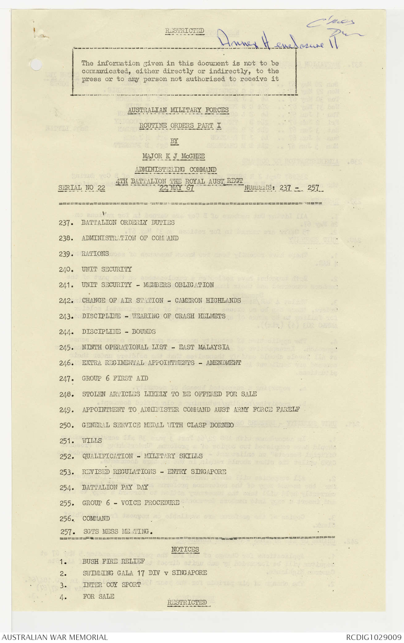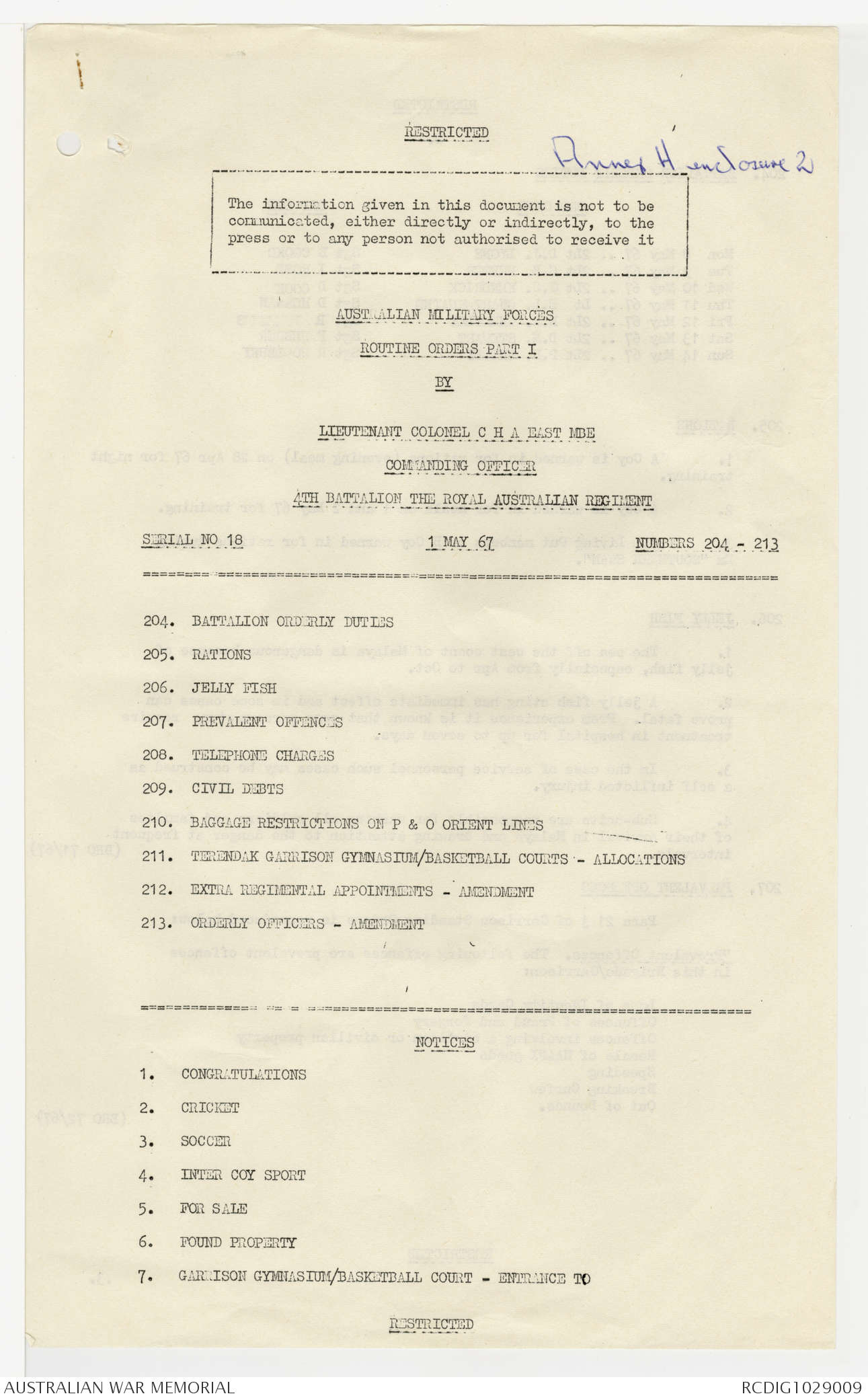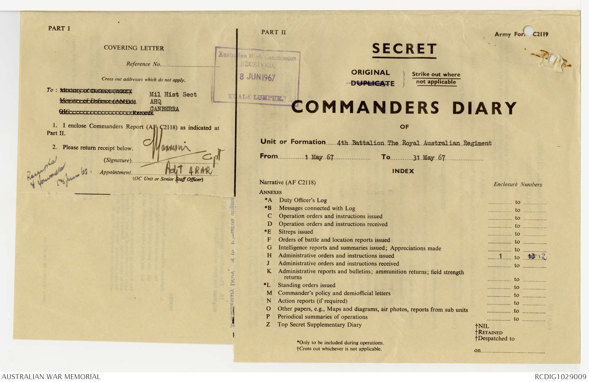AWM95 7/4/22 - 1-31 May 1967, Narrative, Annexes