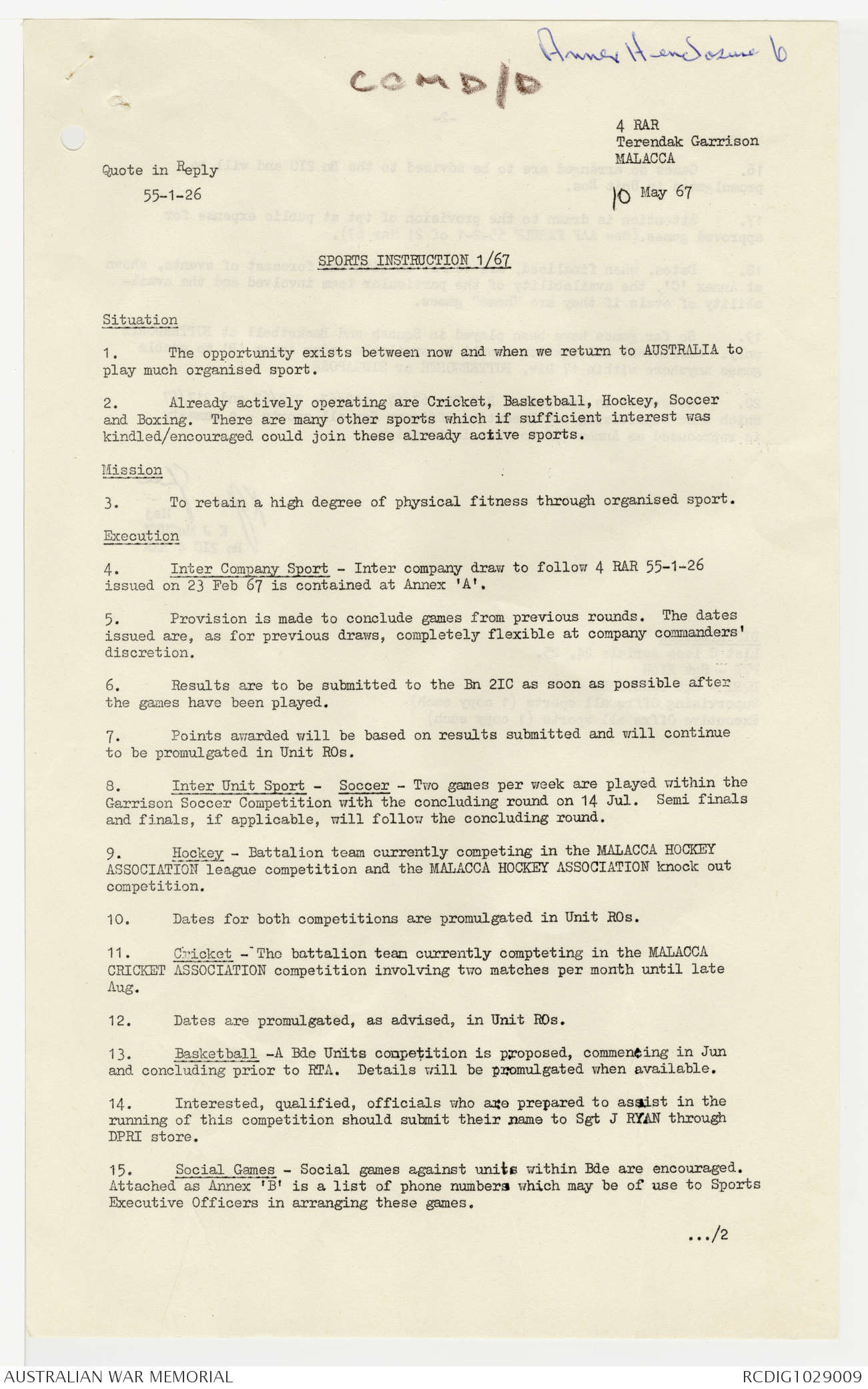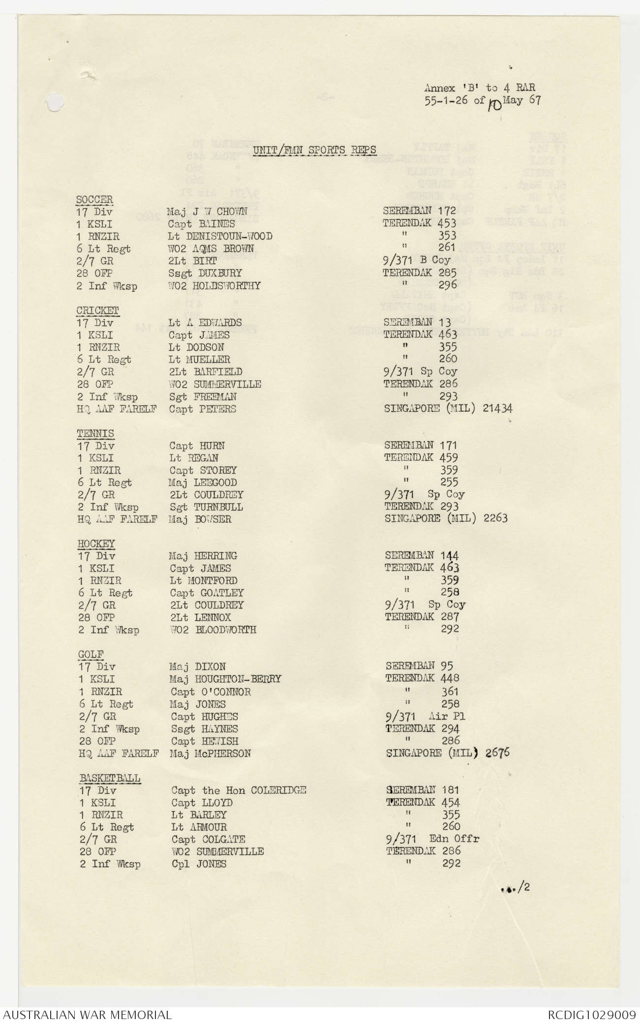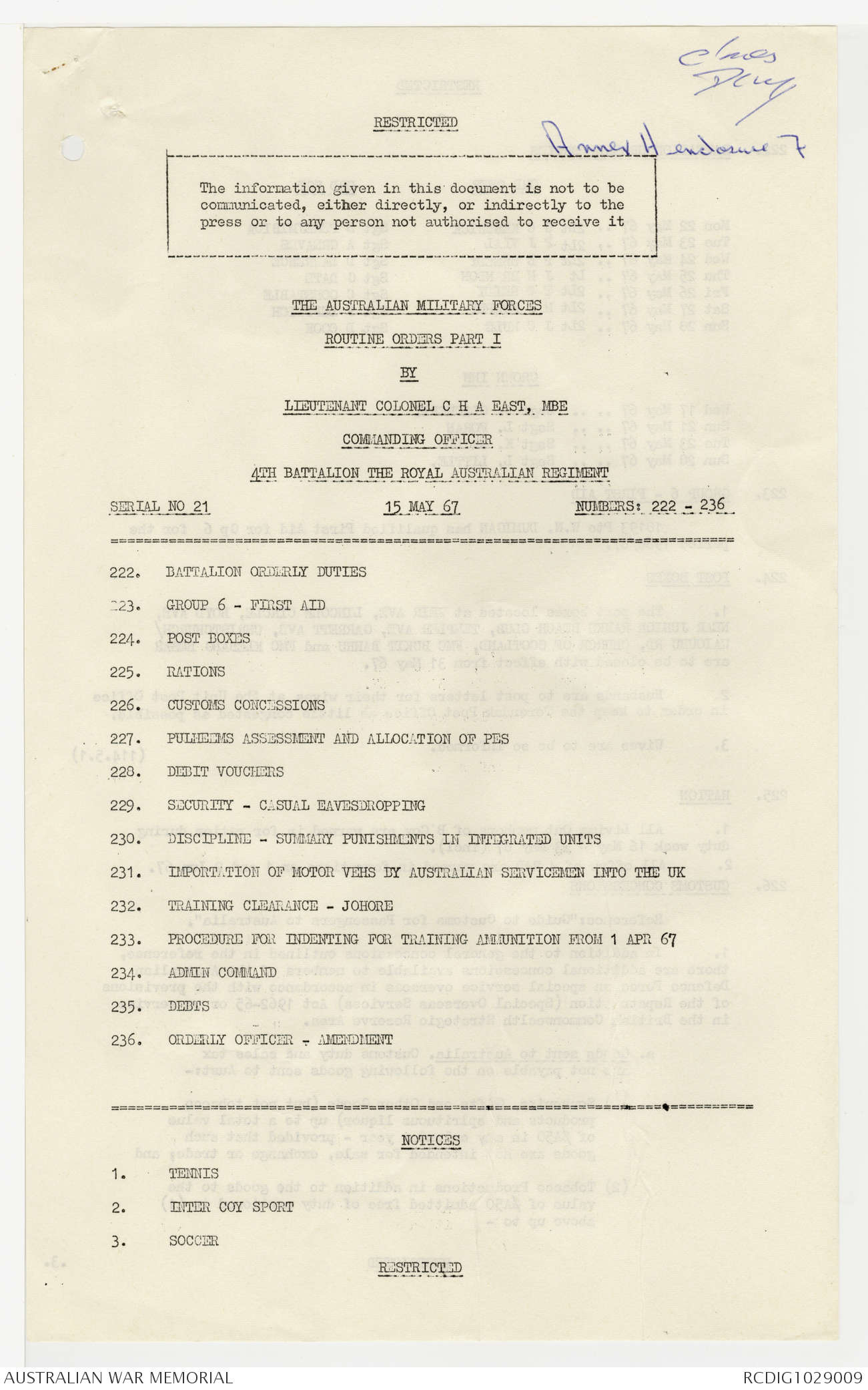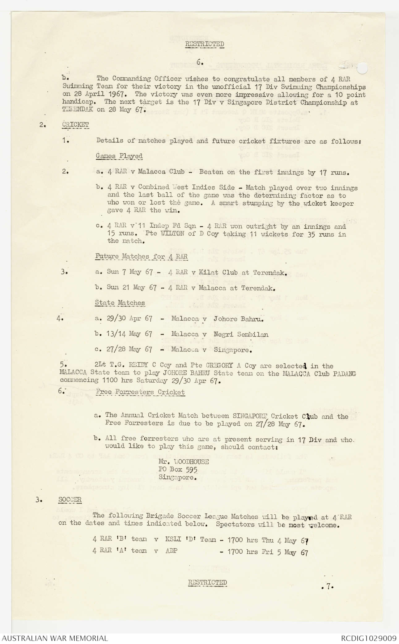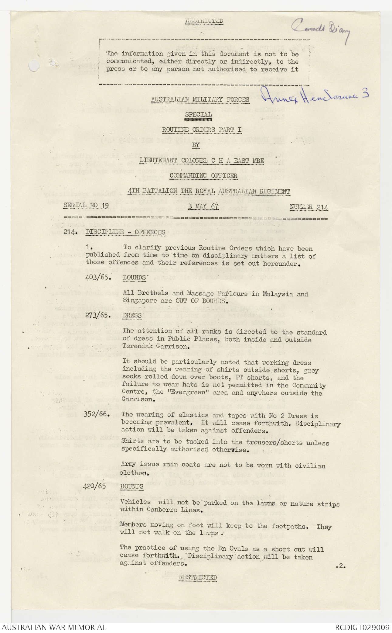 AWM95 7/4/22 - 1-31 May 1967, Narrative, Annexes