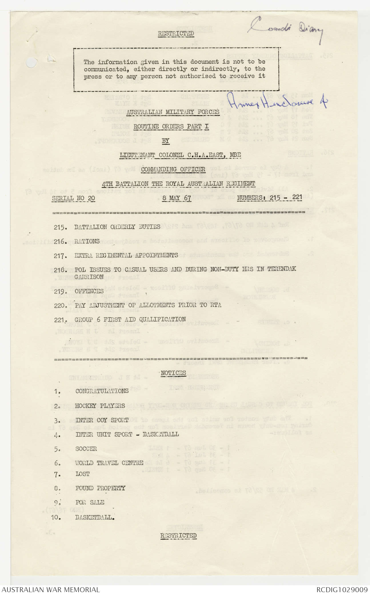Australian Army commanders' diaries
