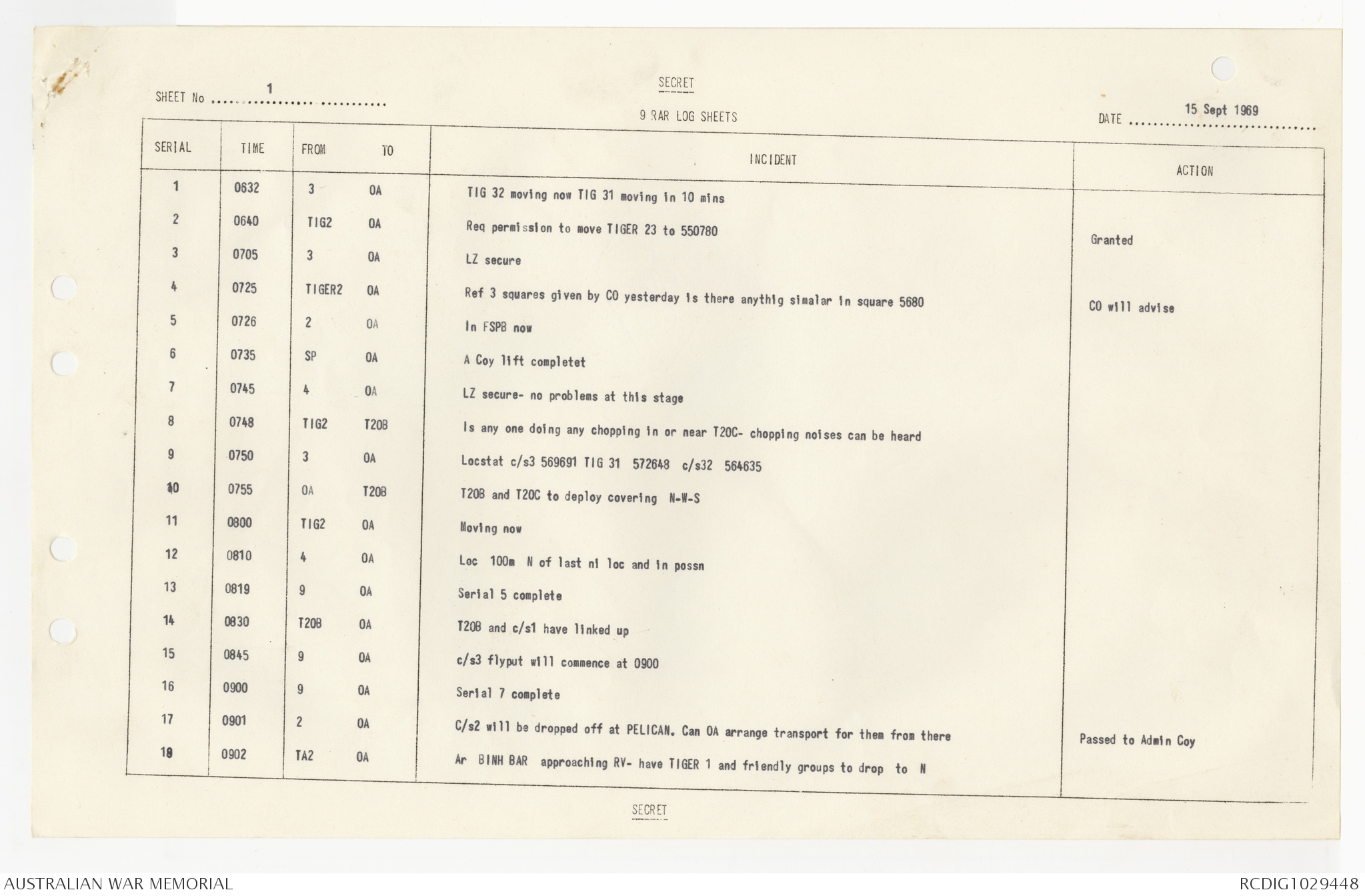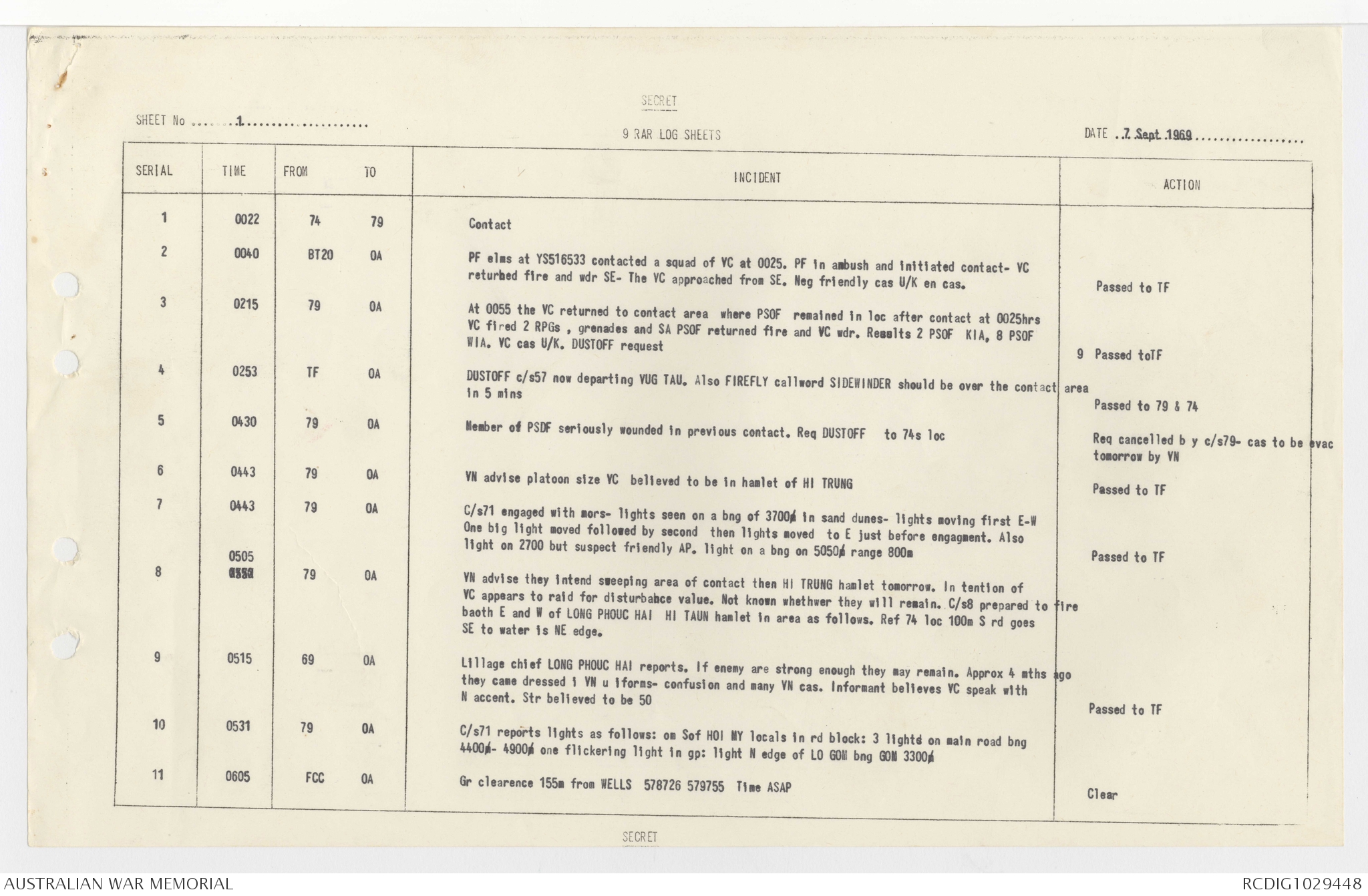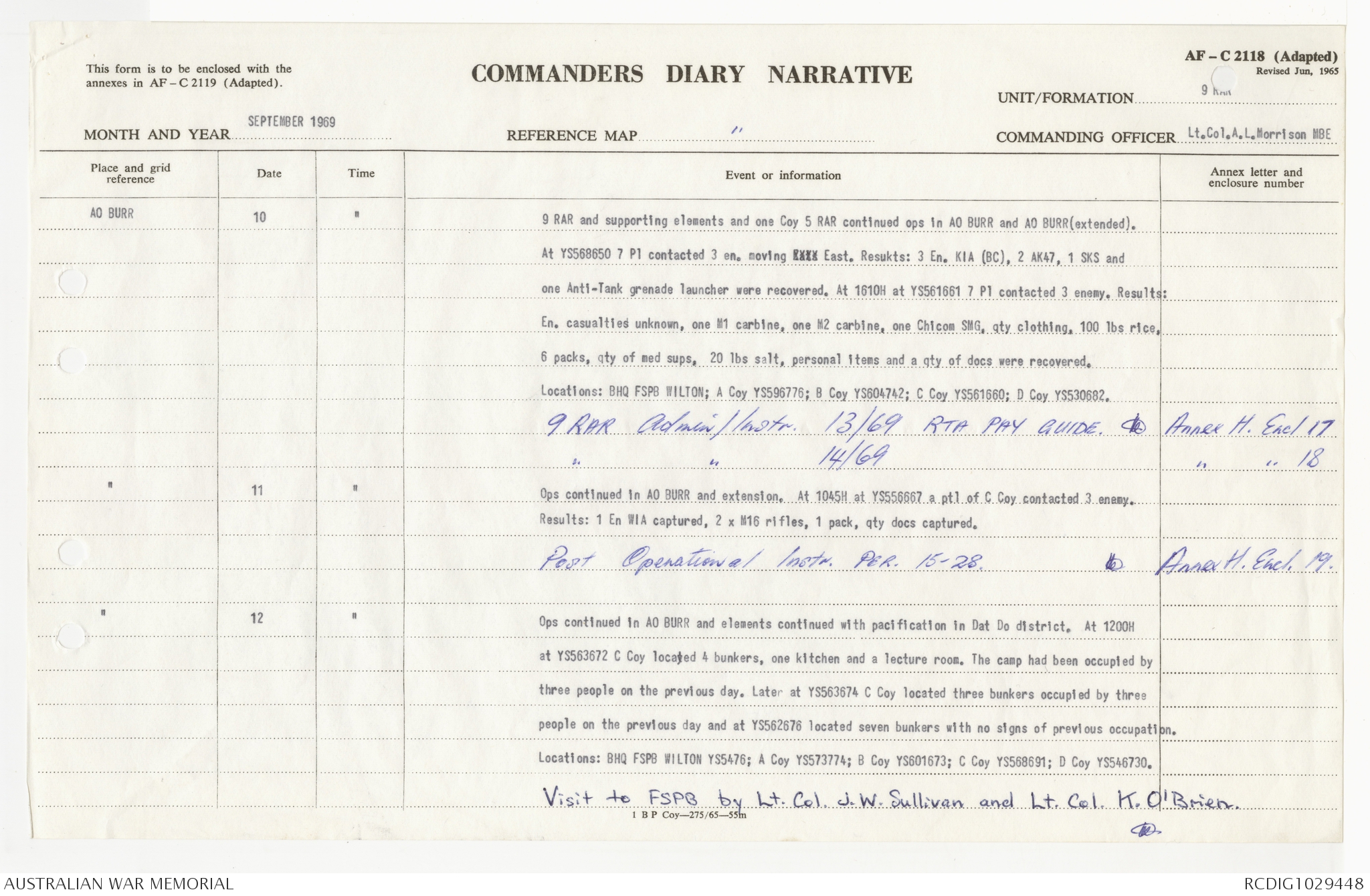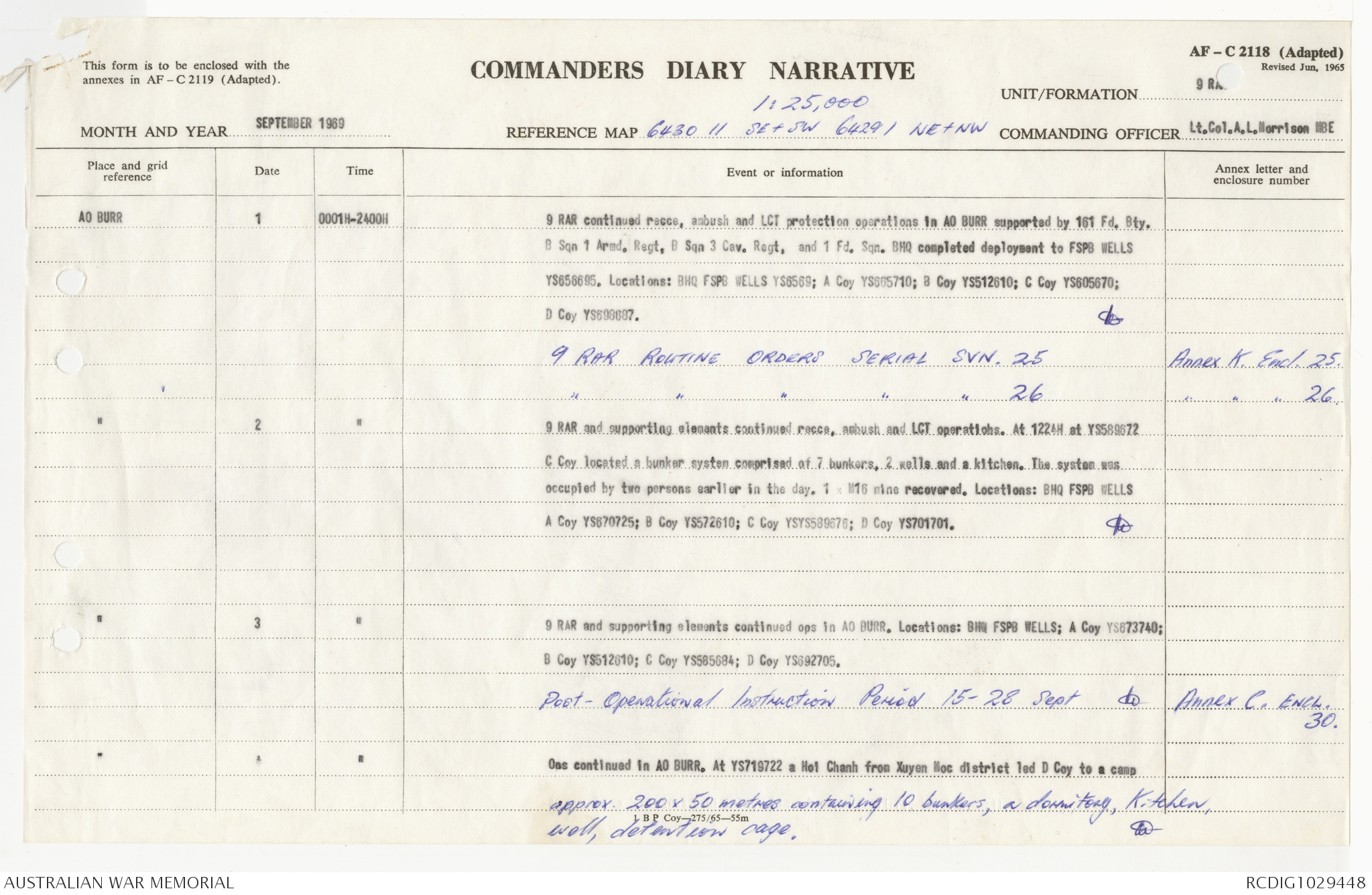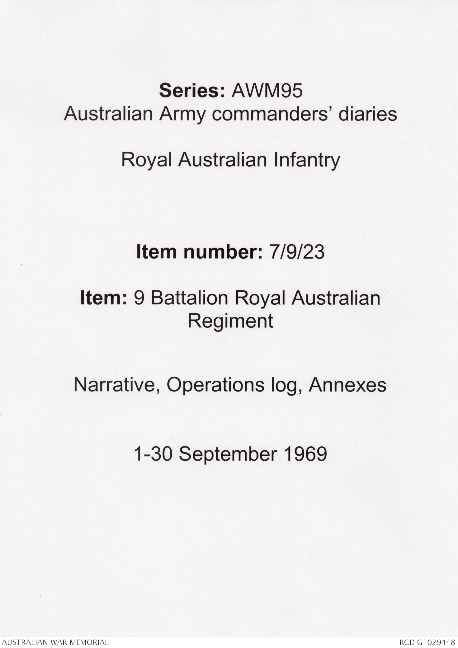 AWM95 7/9/23 - 1-30 September 1969, Narrative, Operations log, Annexes