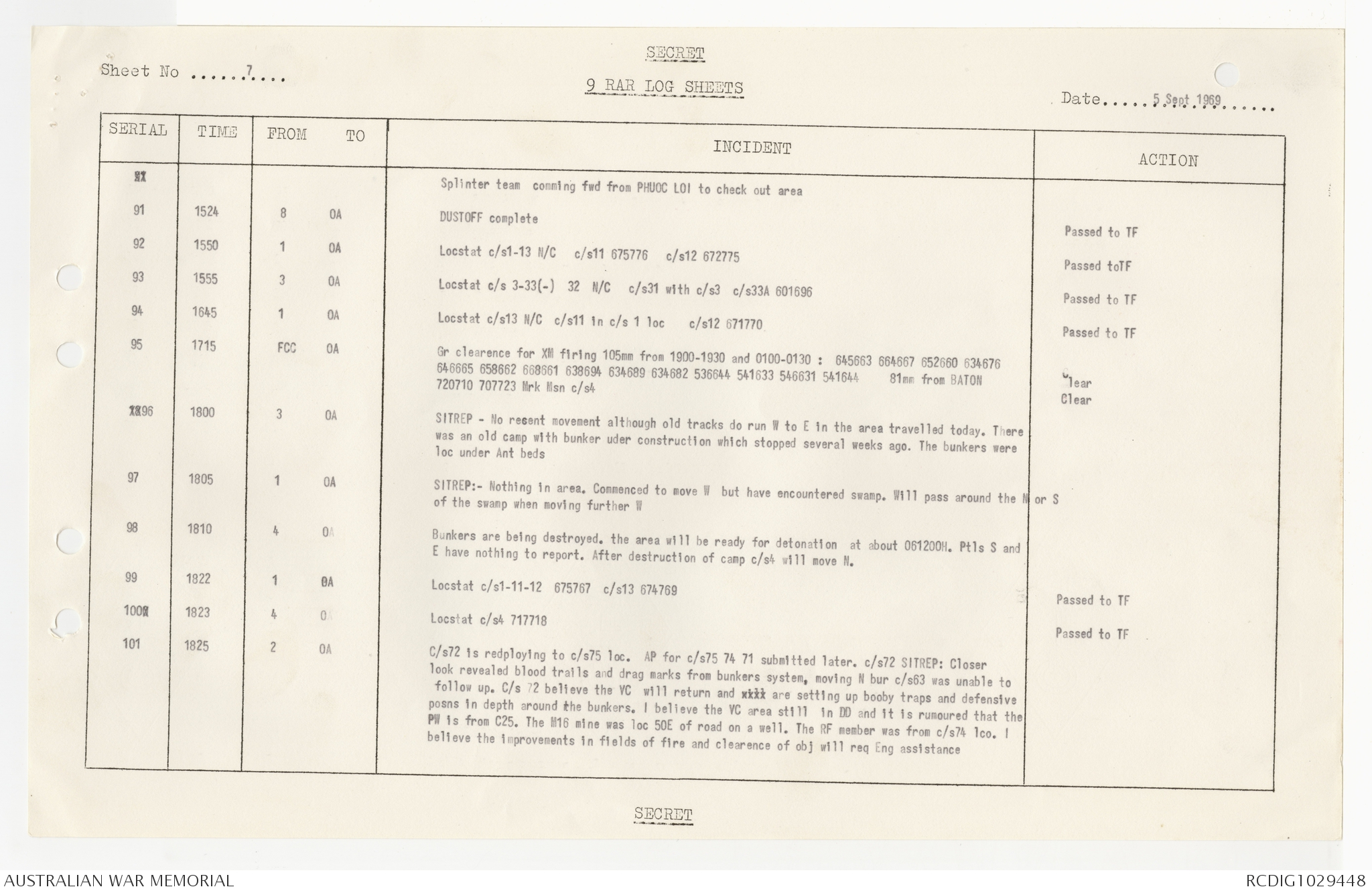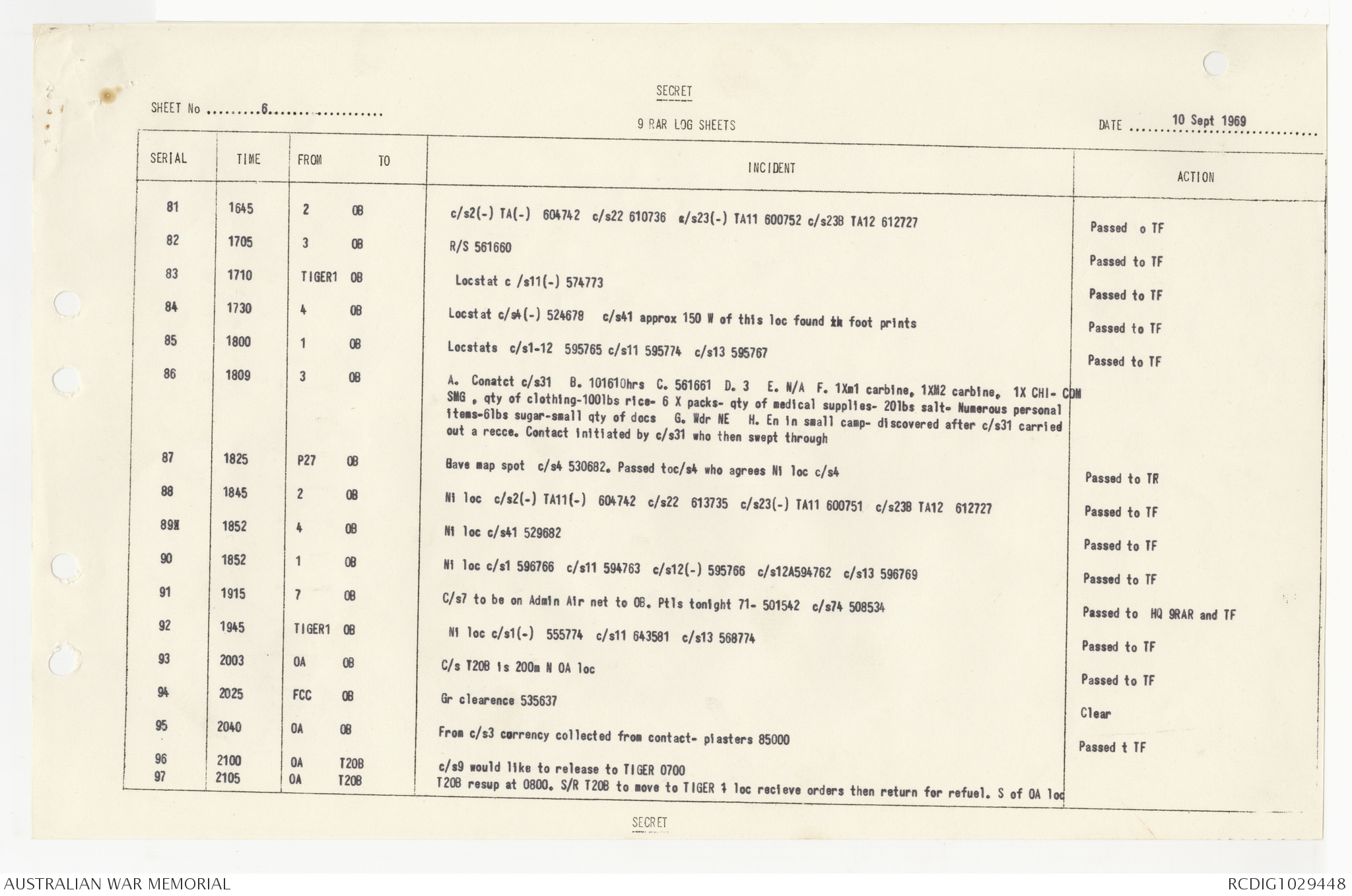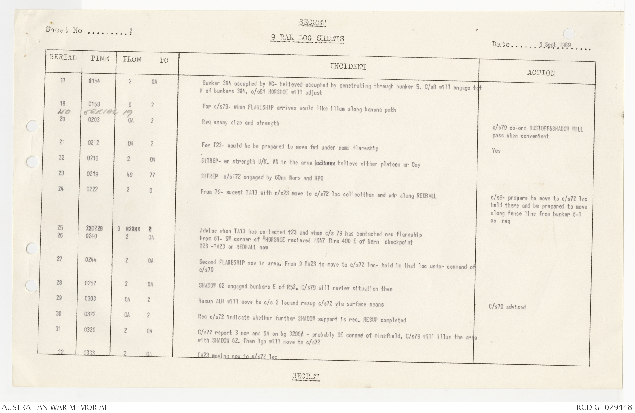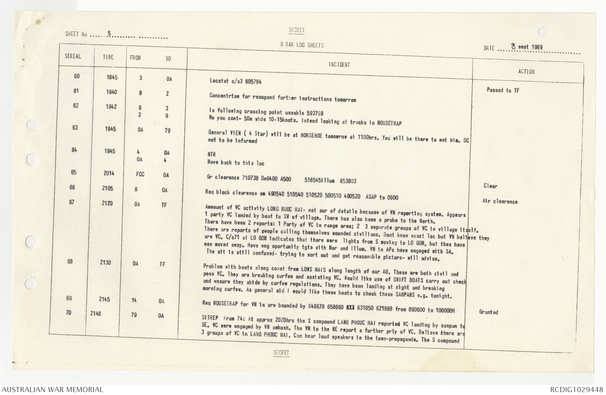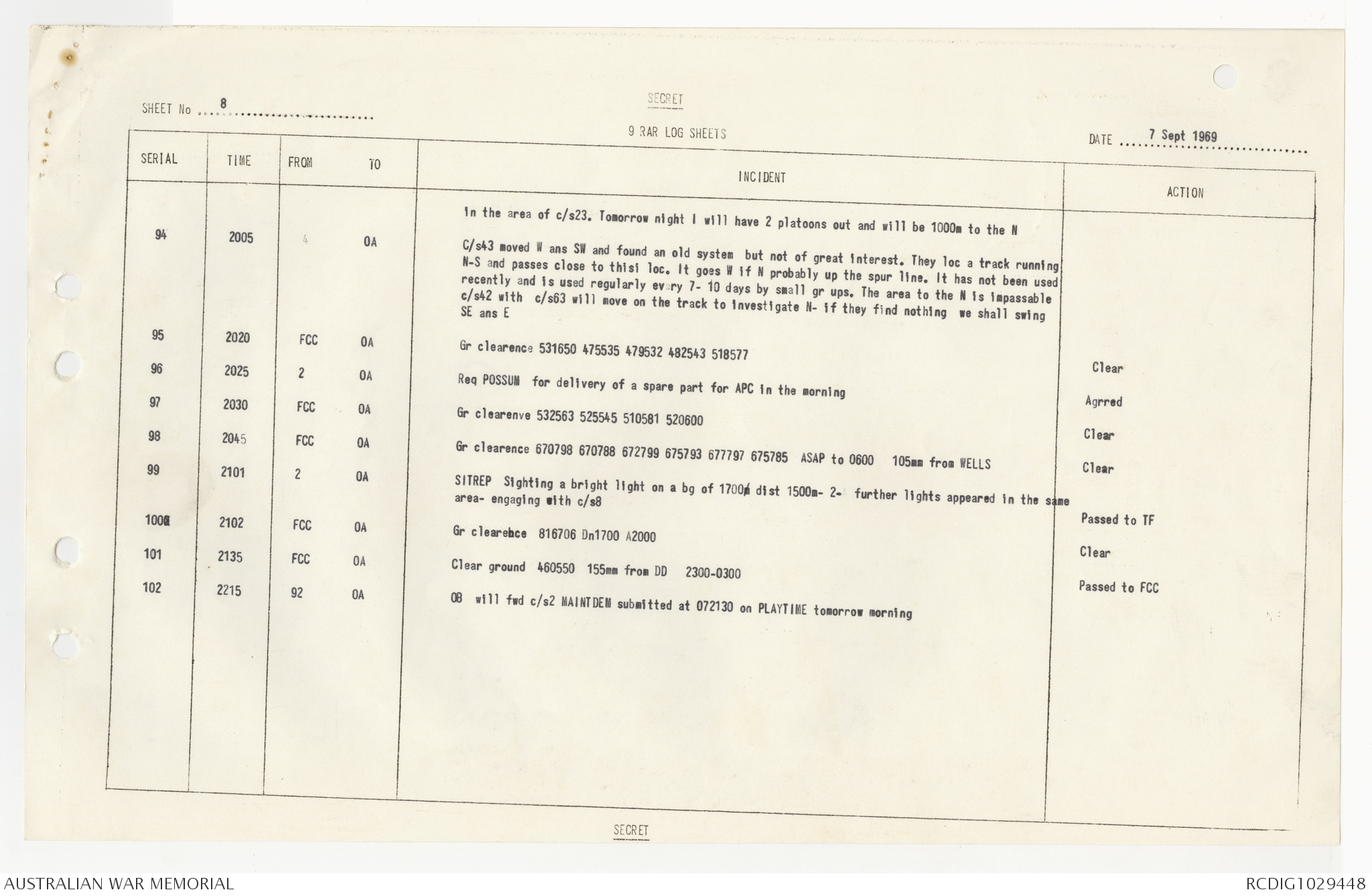 AWM95 7/9/23 - 1-30 September 1969, Narrative, Operations log, Annexes