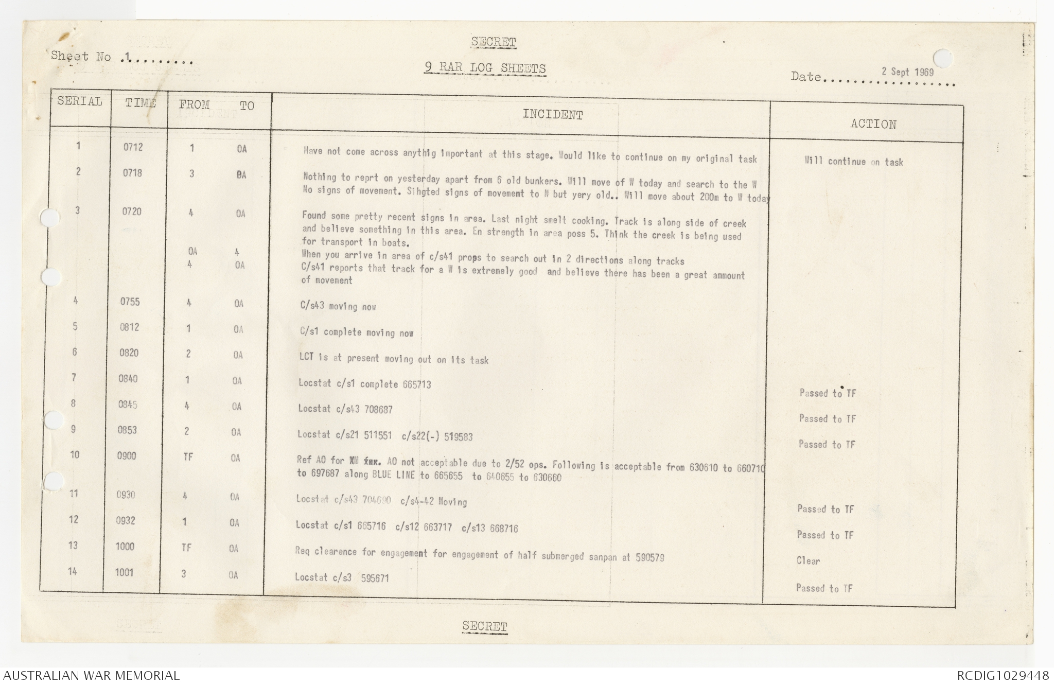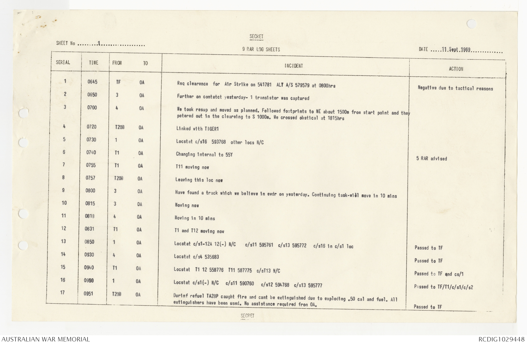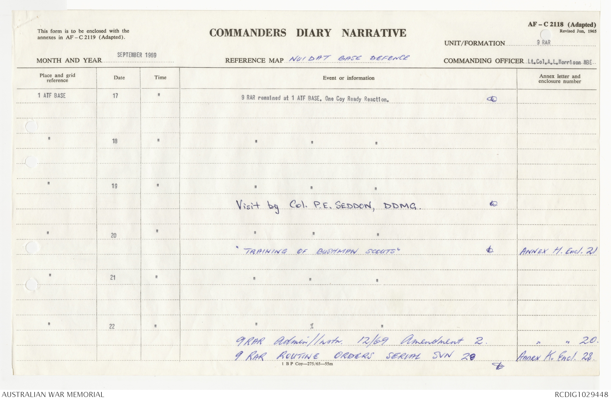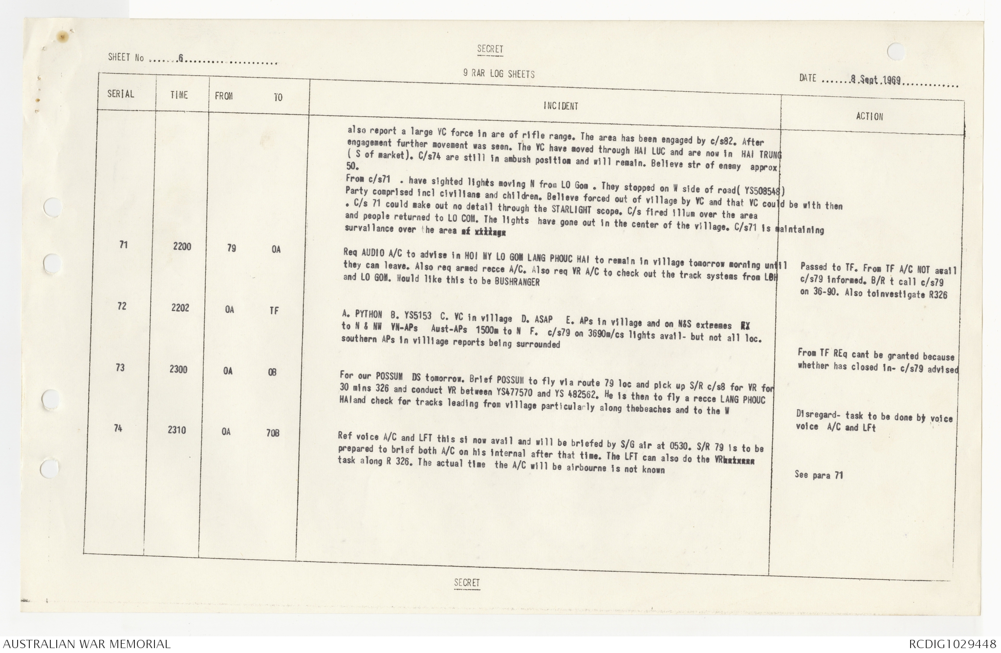 AWM95 7/9/23 - 1-30 September 1969, Narrative, Operations log, Annexes