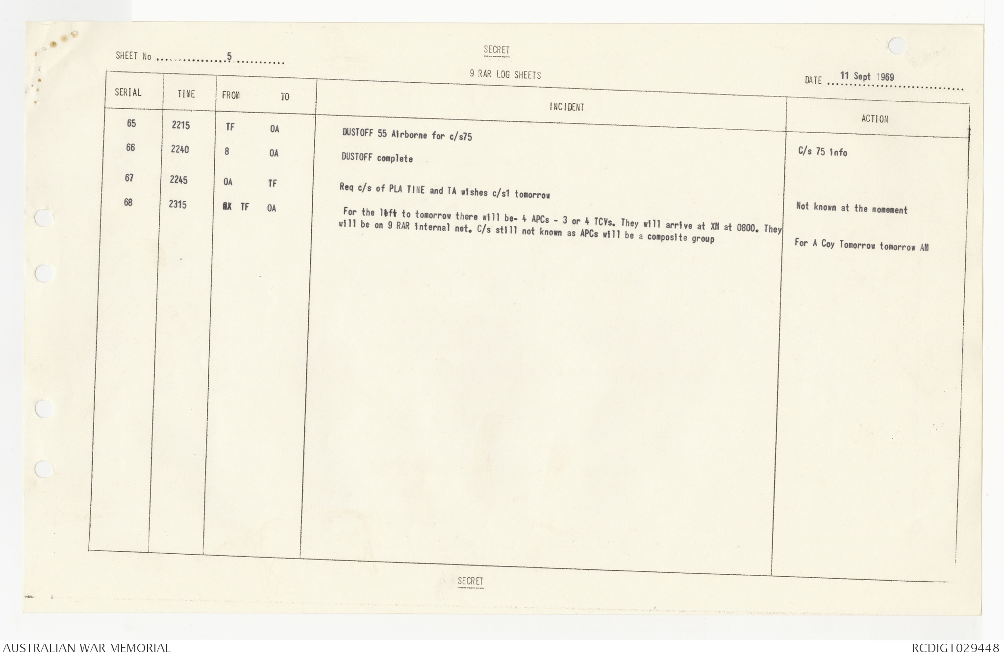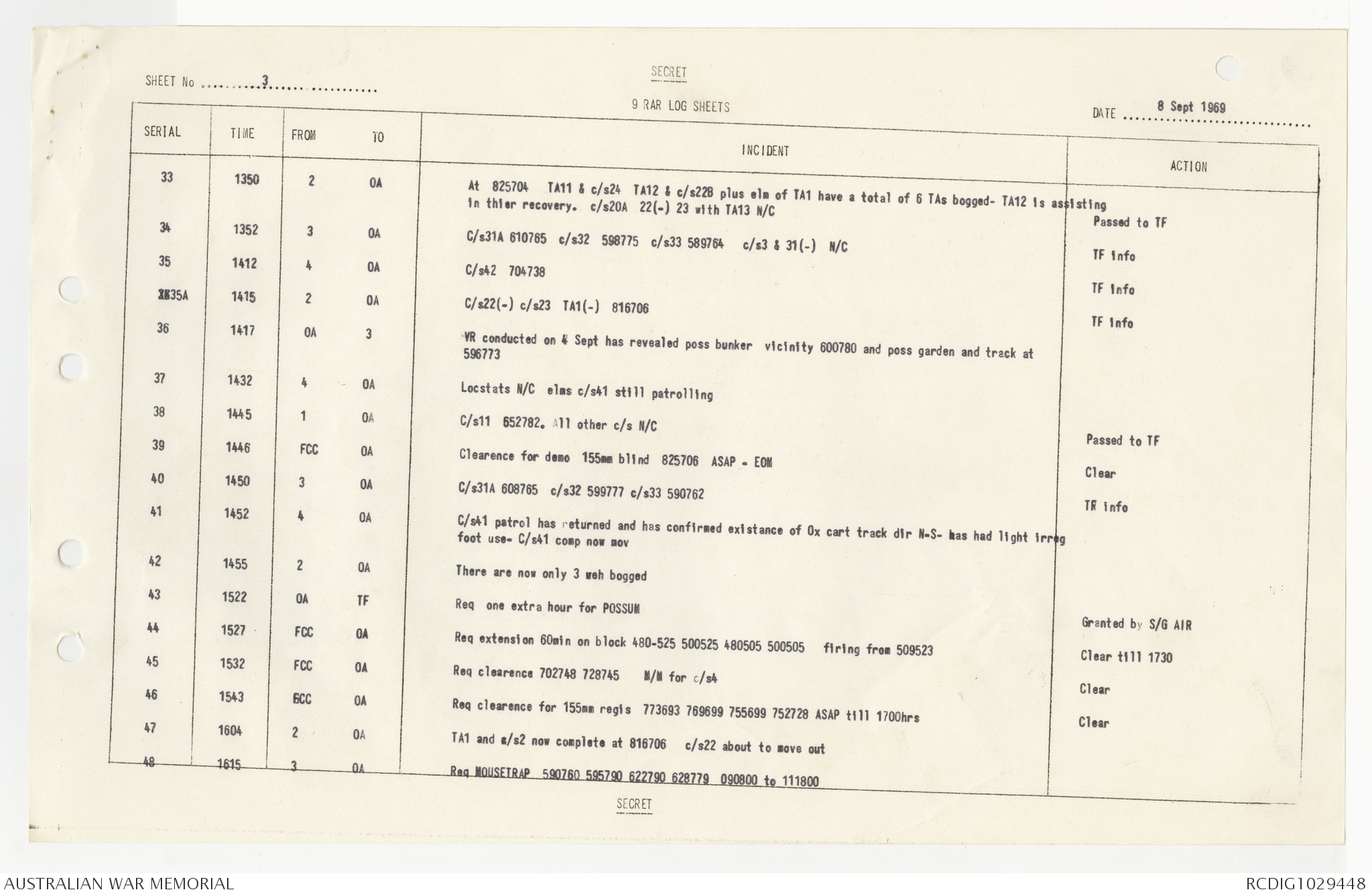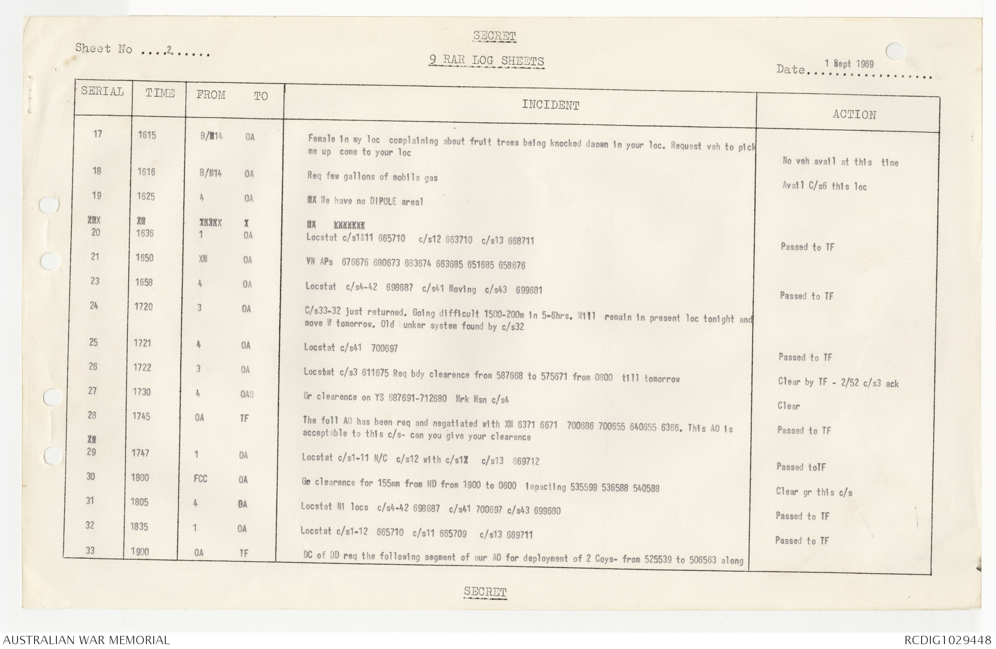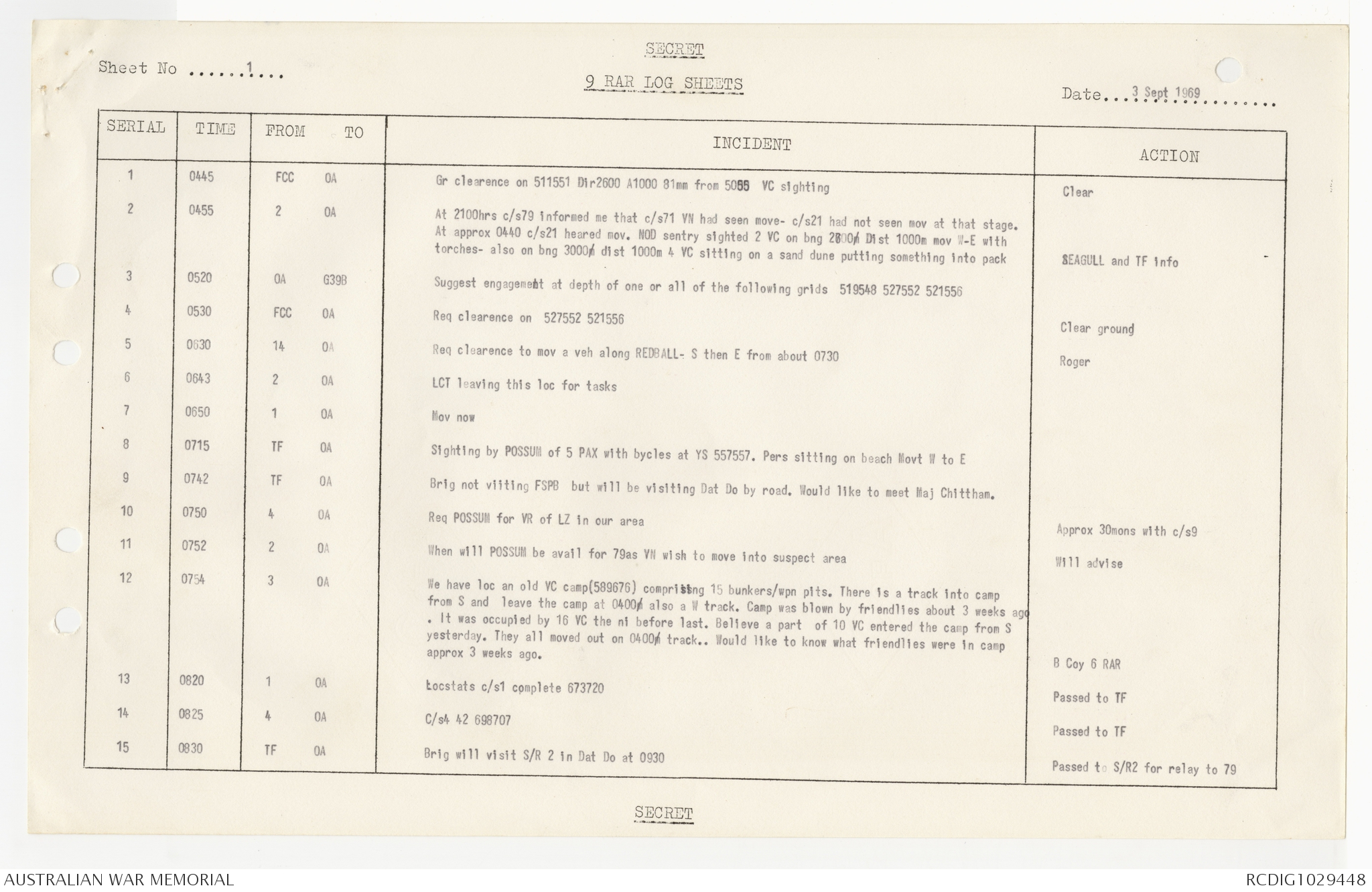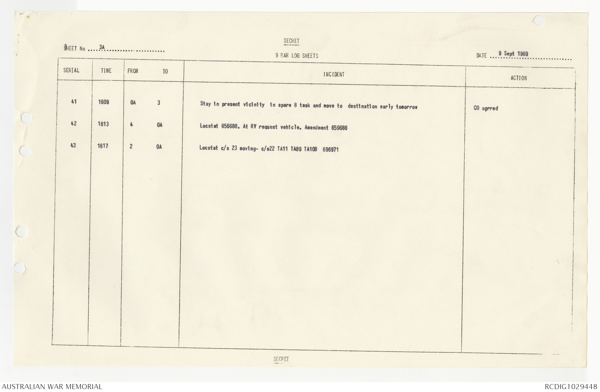 AWM95 7/9/23 - 1-30 September 1969, Narrative, Operations log, Annexes