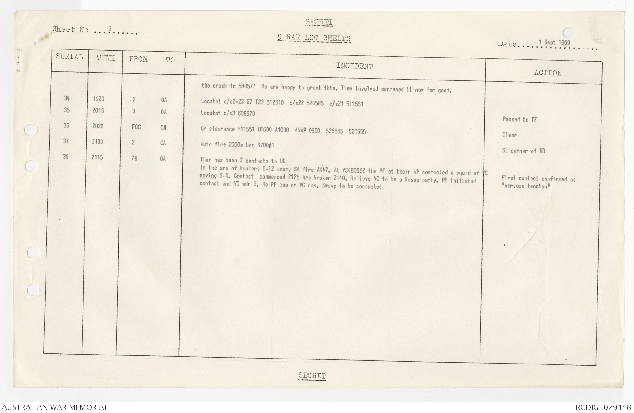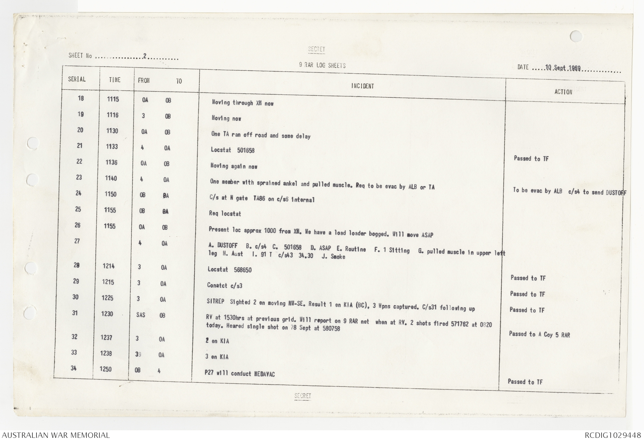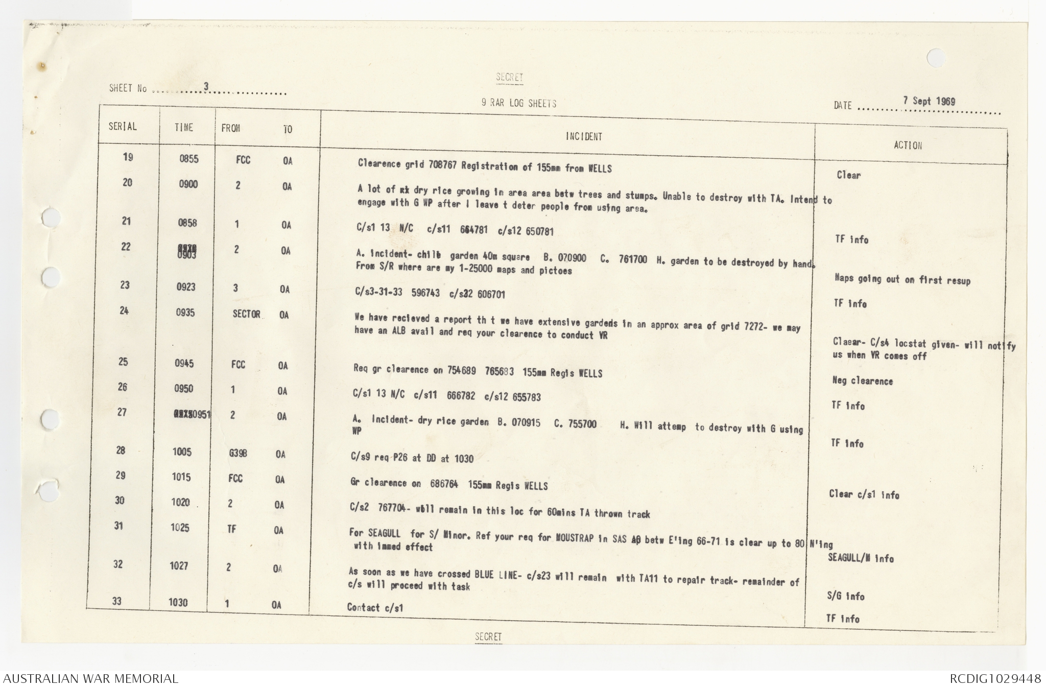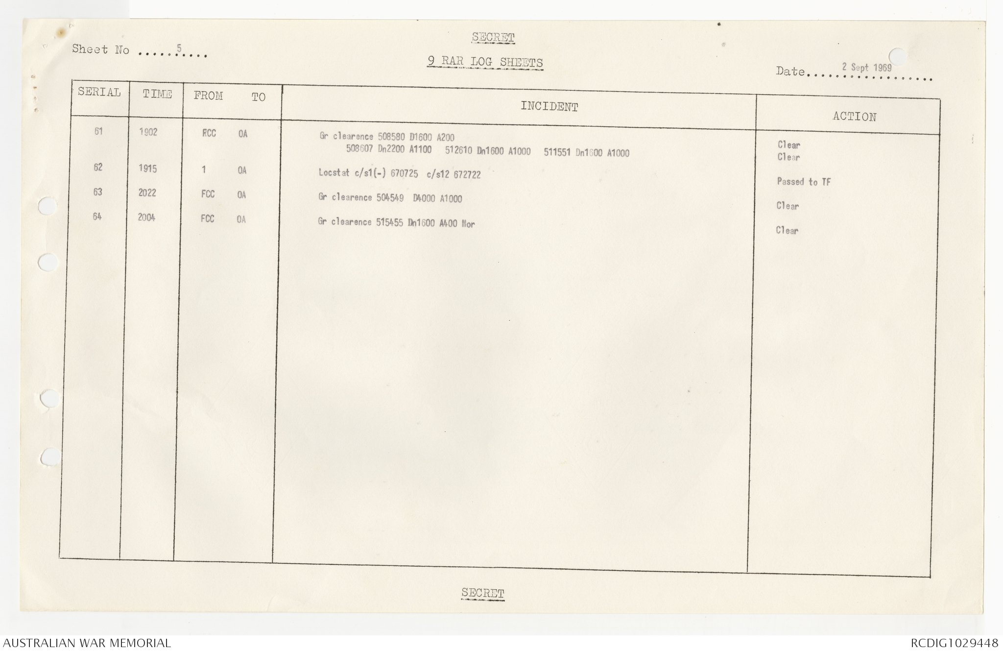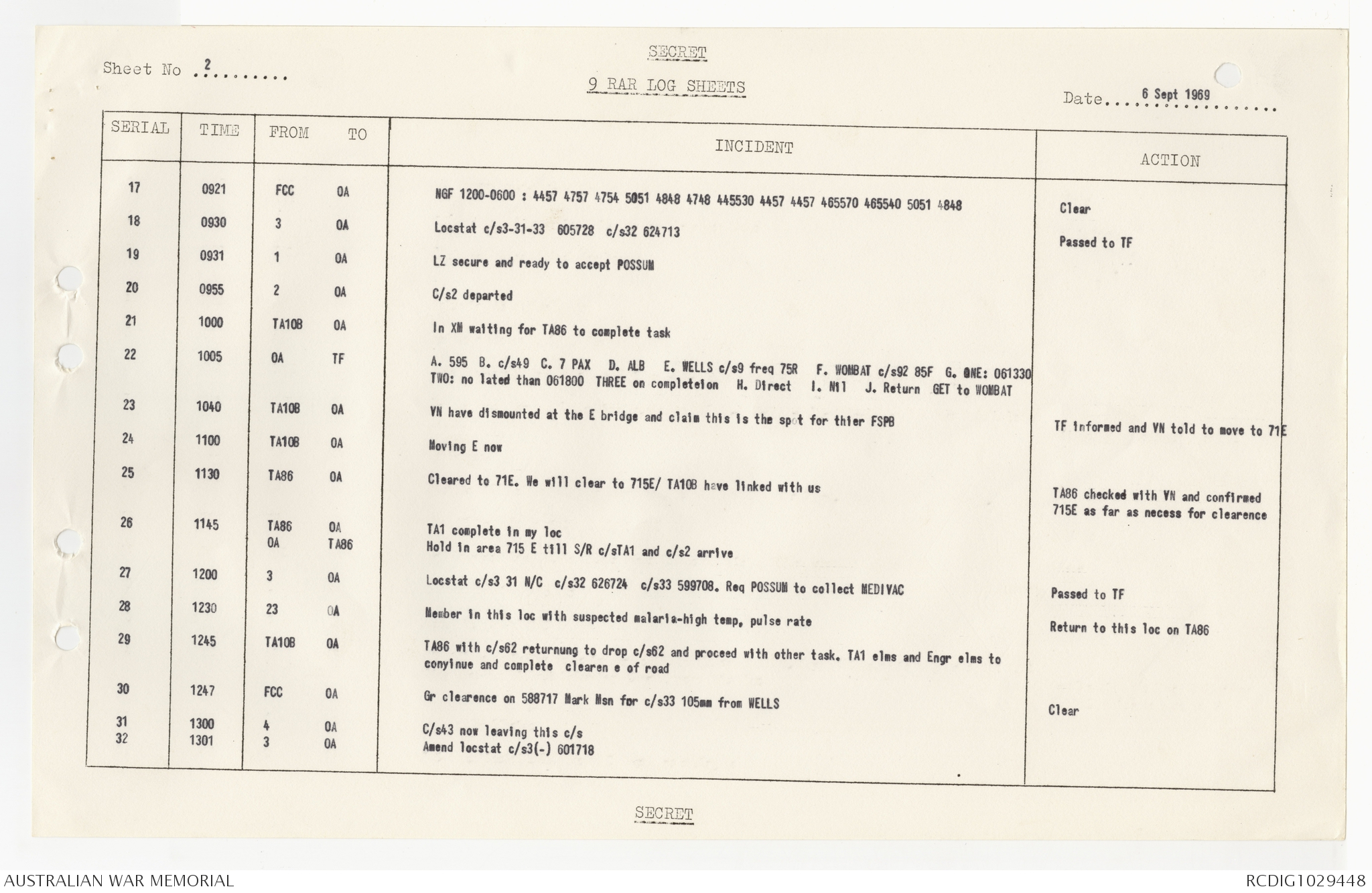 AWM95 7/9/23 - 1-30 September 1969, Narrative, Operations log, Annexes