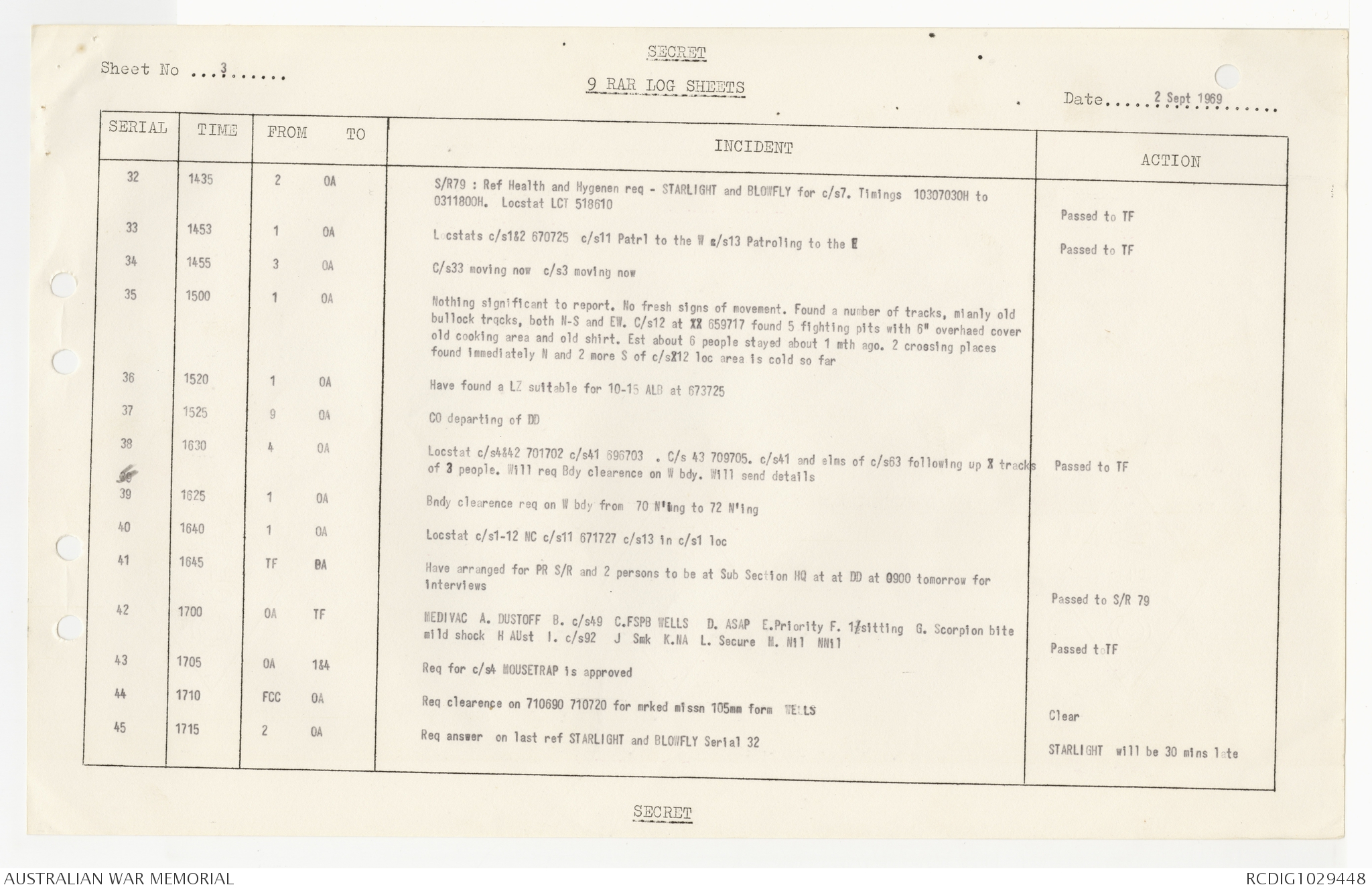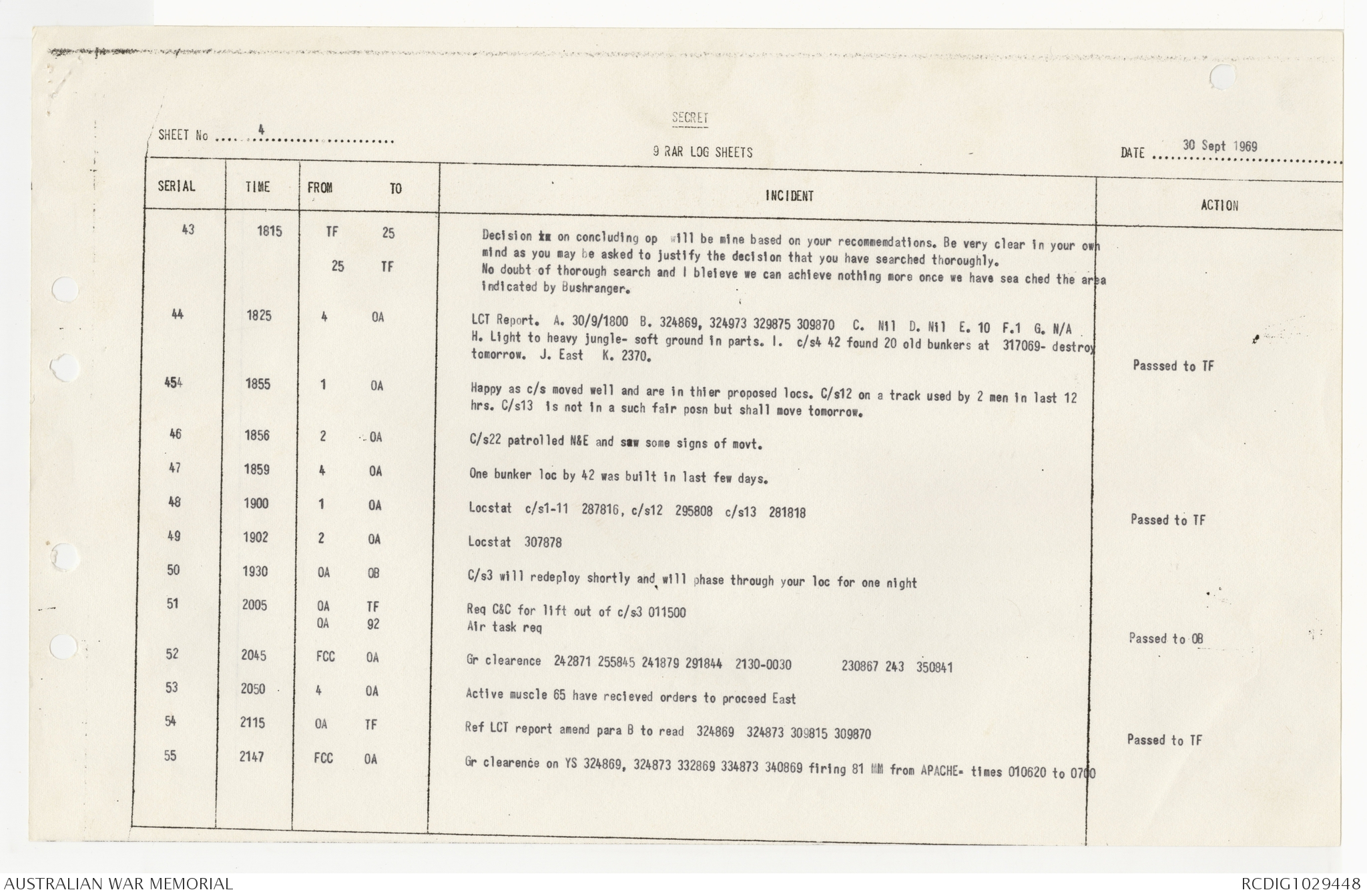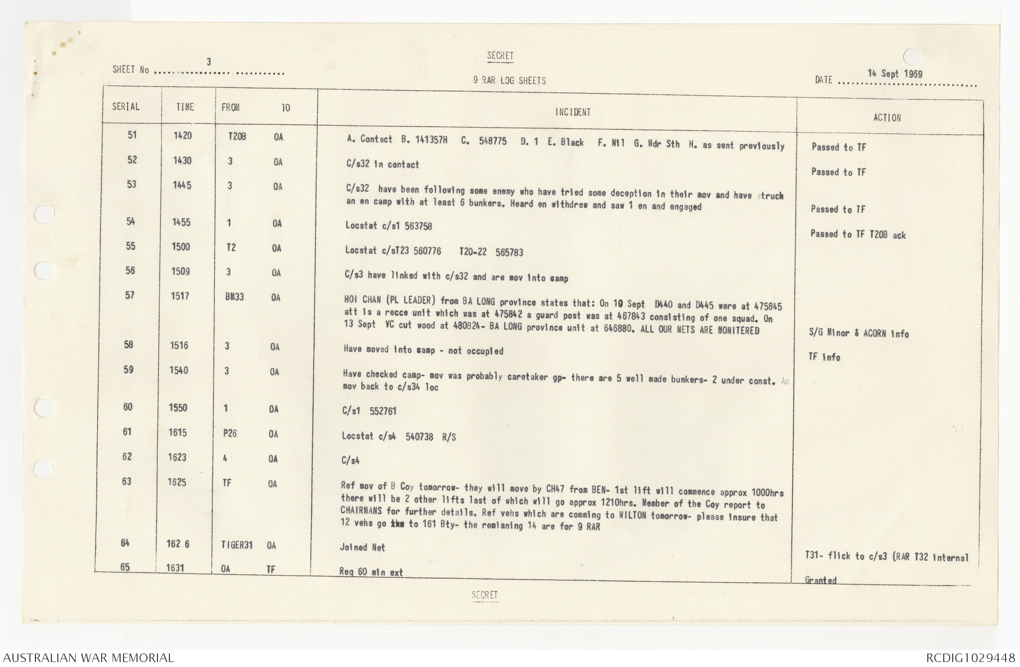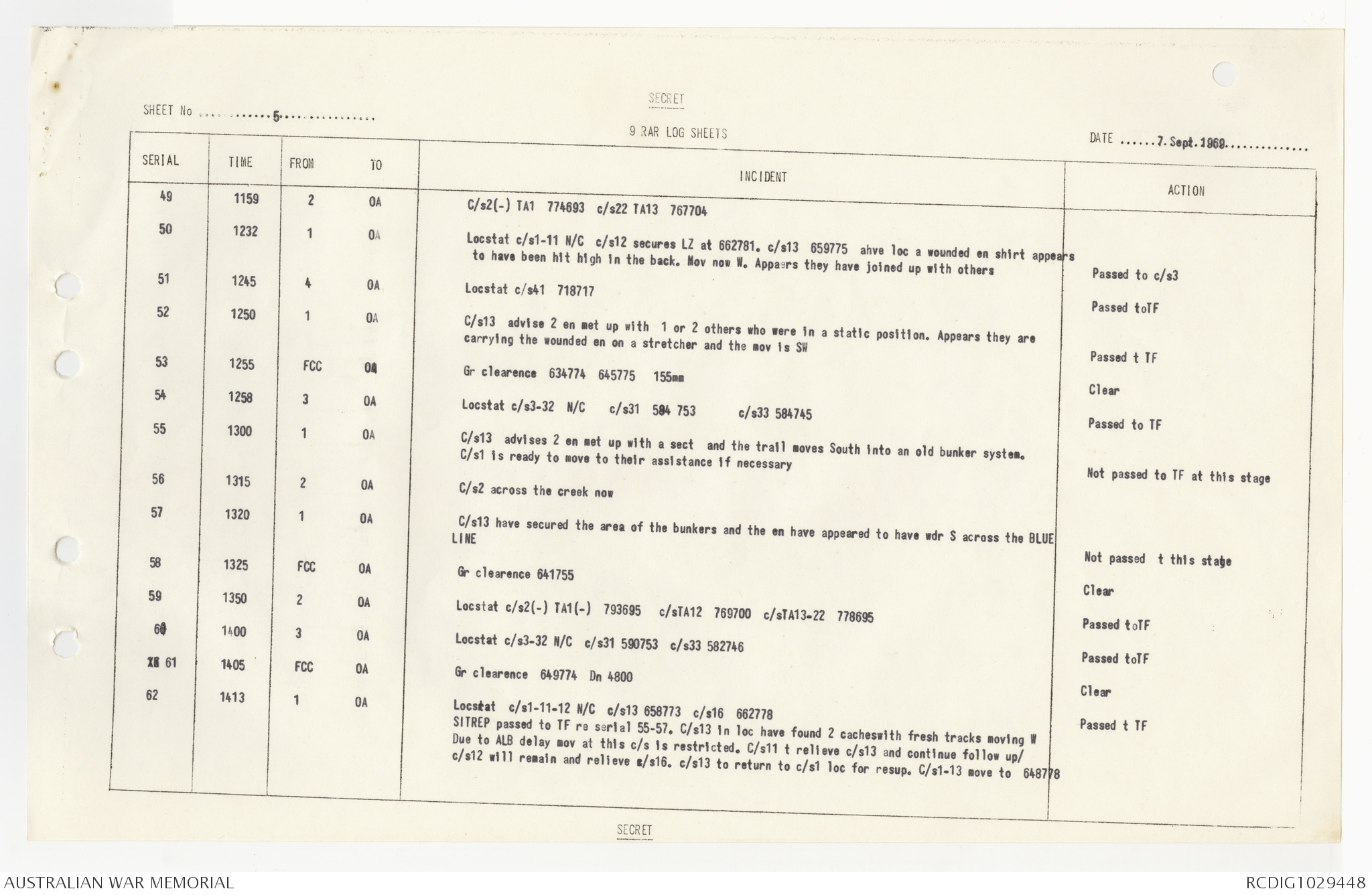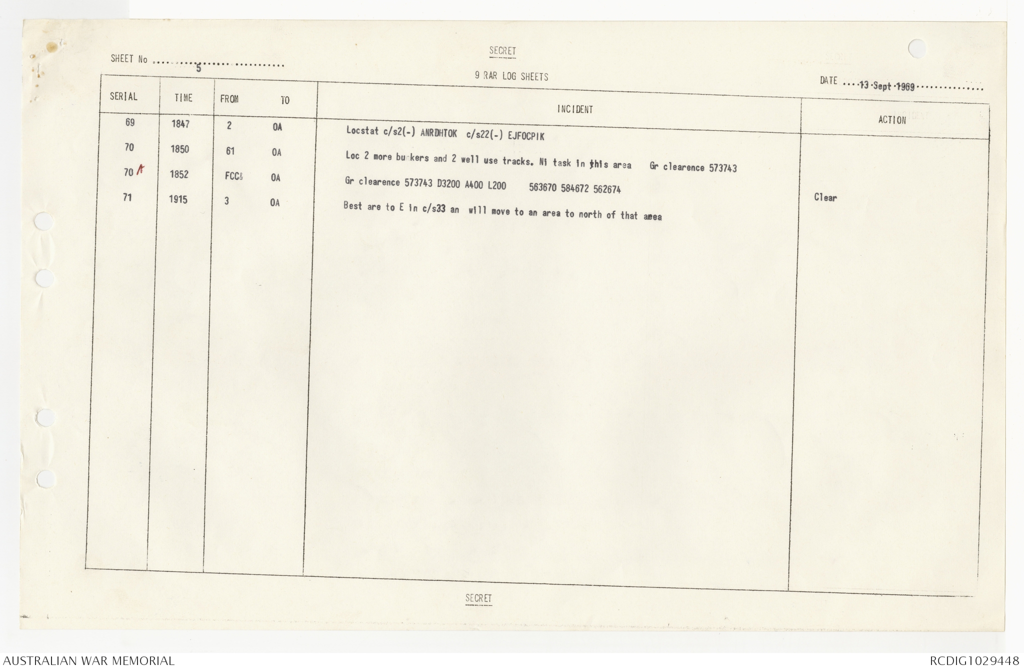 AWM95 7/9/23 - 1-30 September 1969, Narrative, Operations log, Annexes