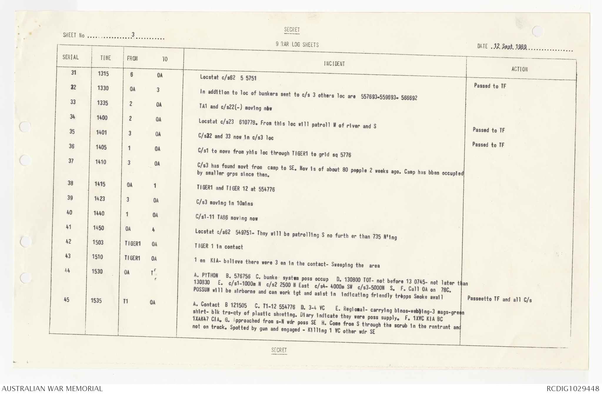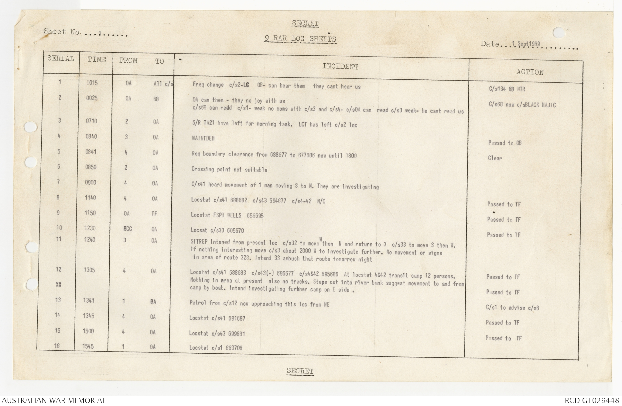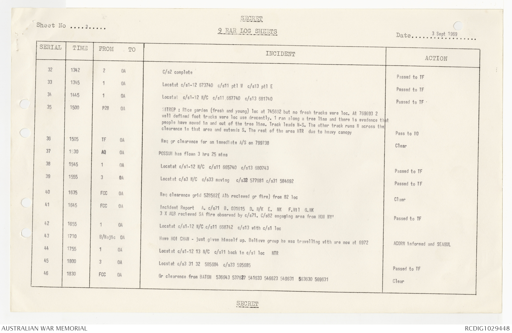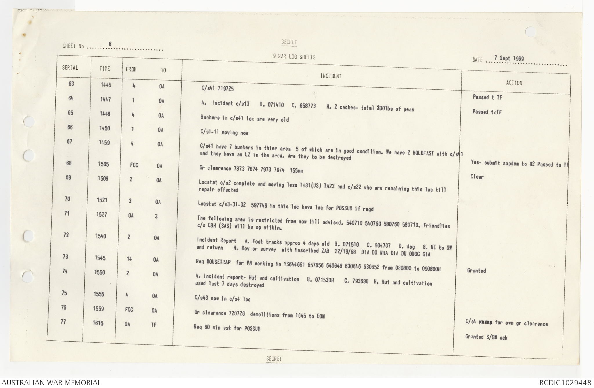 AWM95 7/9/23 - 1-30 September 1969, Narrative, Operations log, Annexes