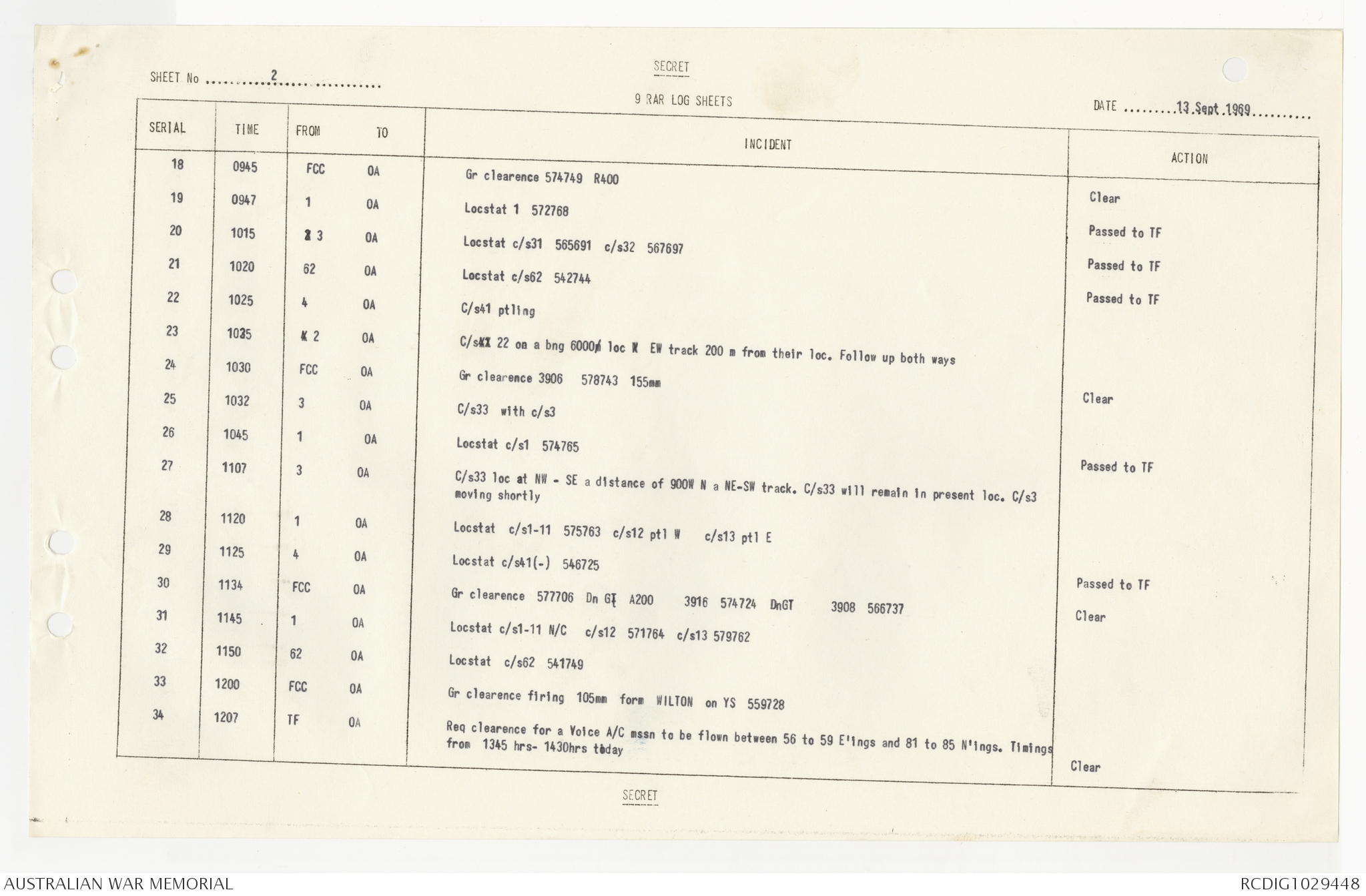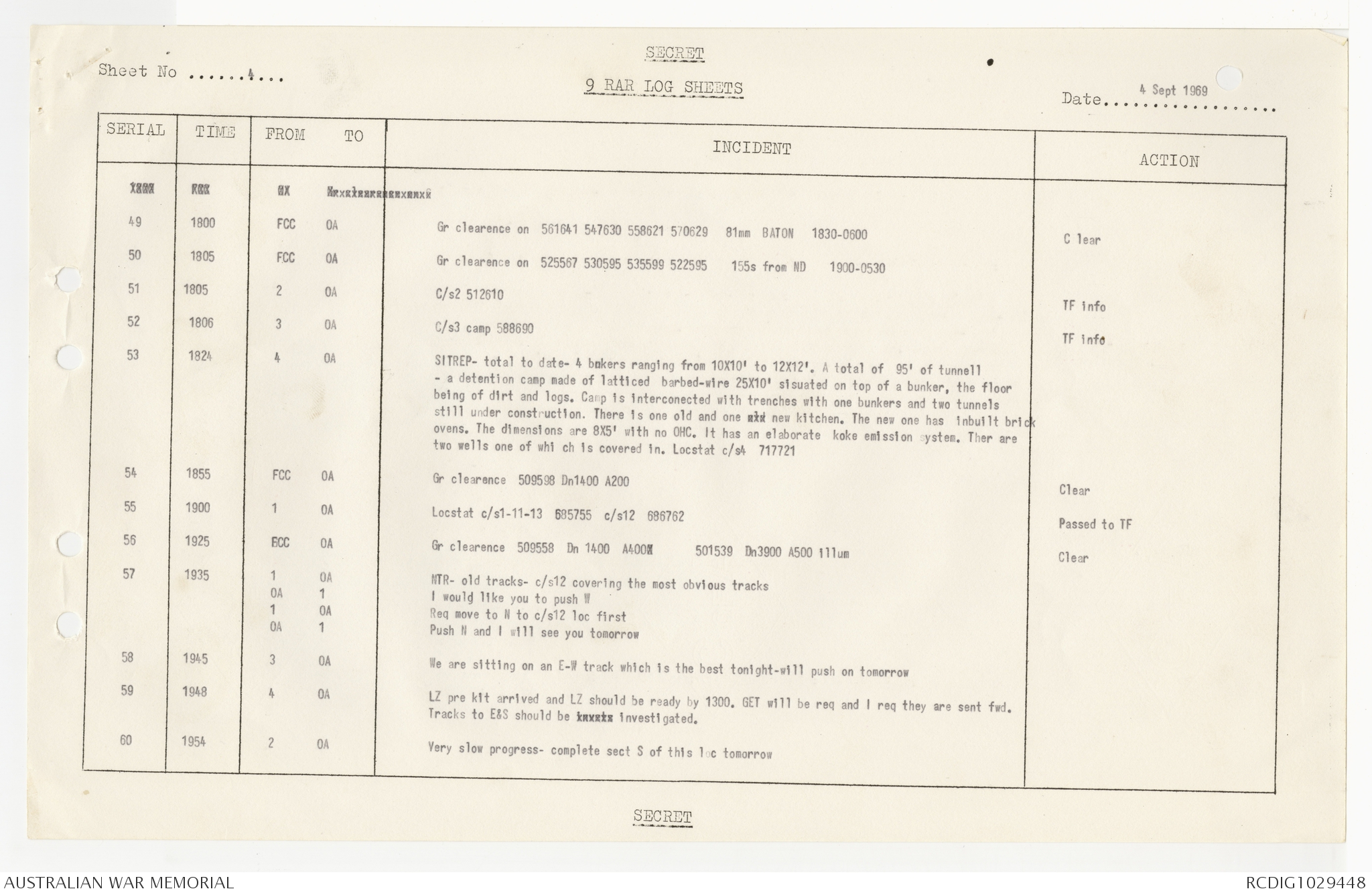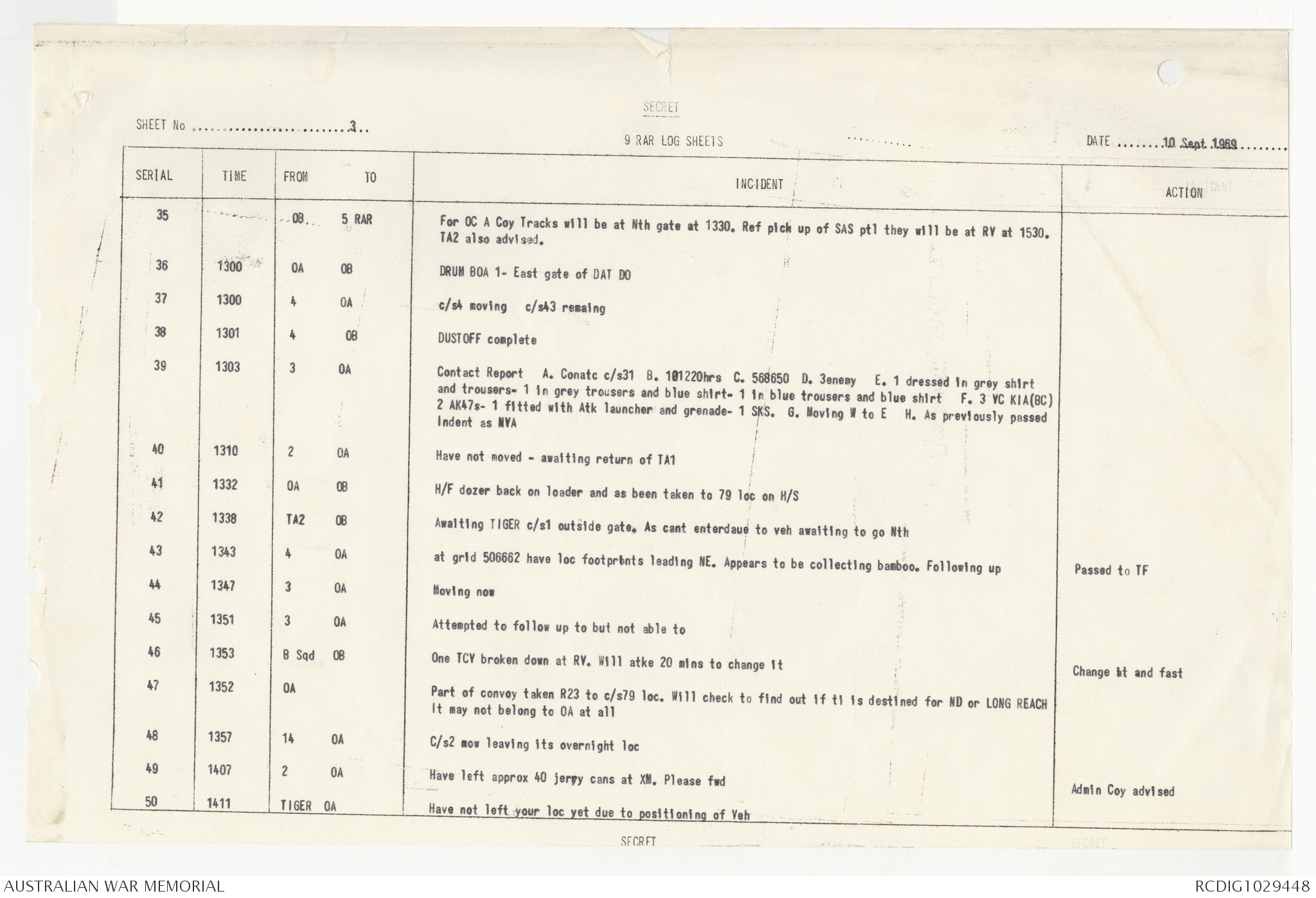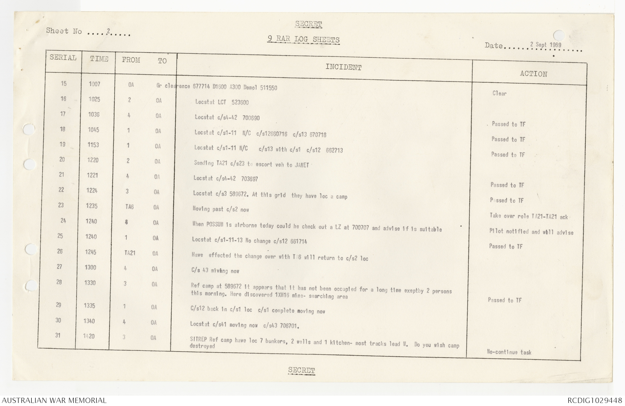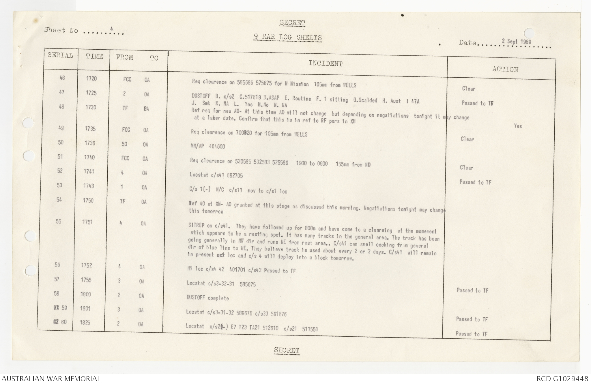 AWM95 7/9/23 - 1-30 September 1969, Narrative, Operations log, Annexes