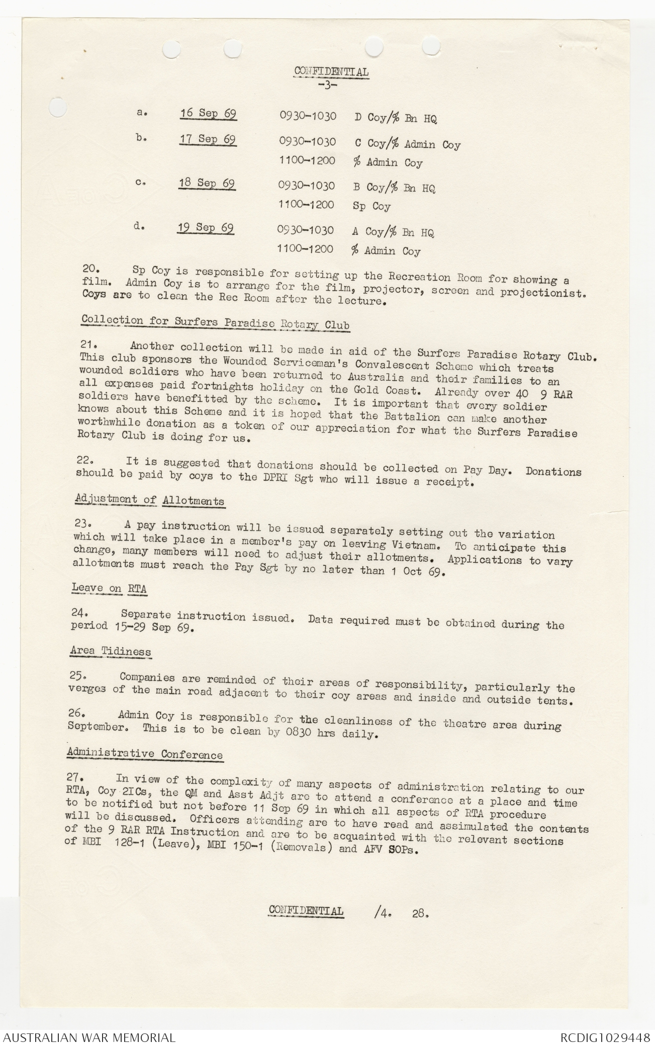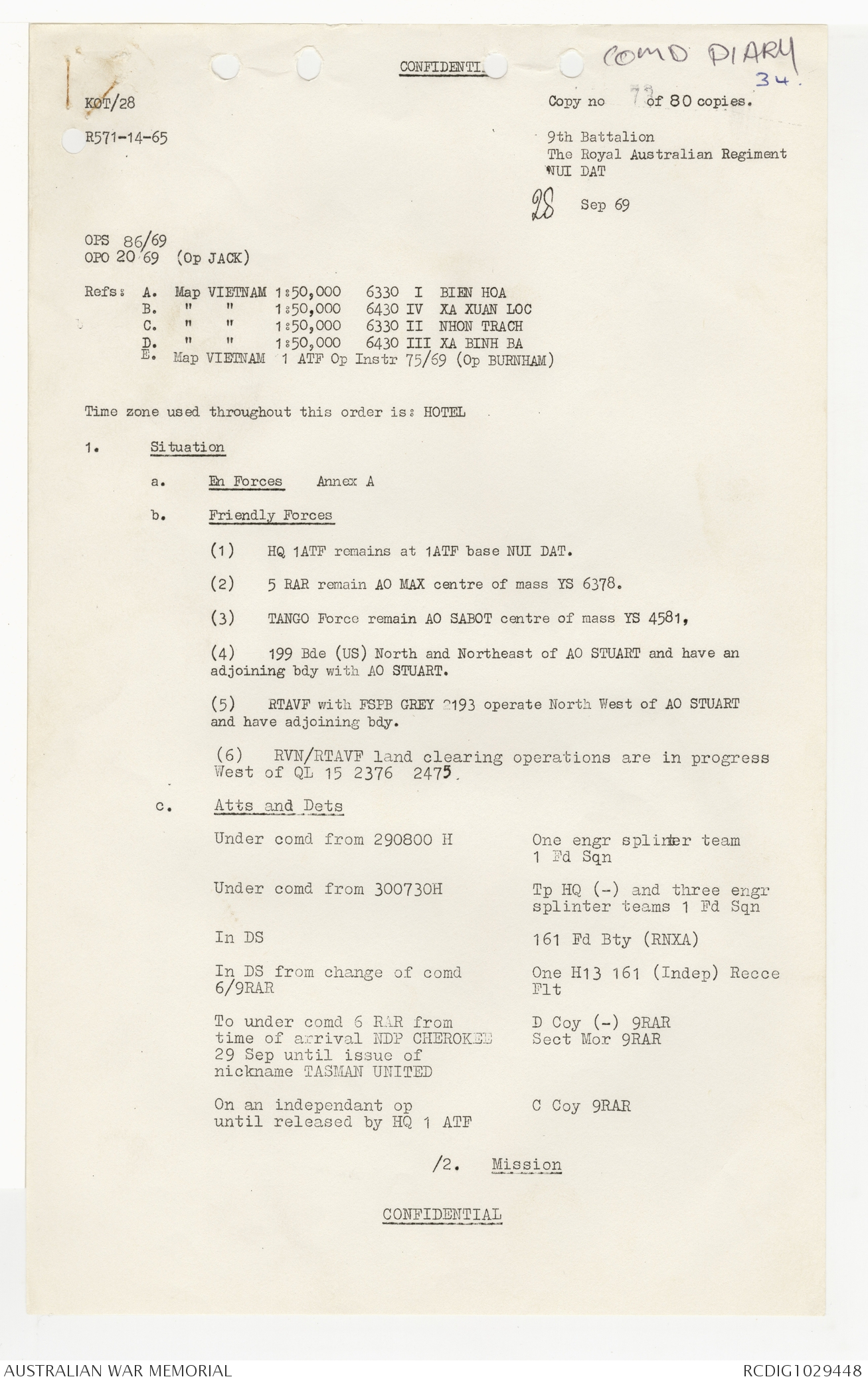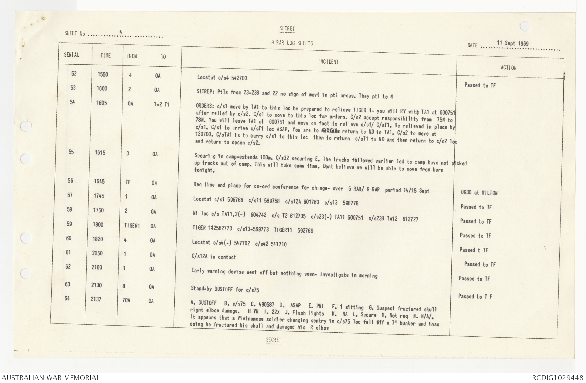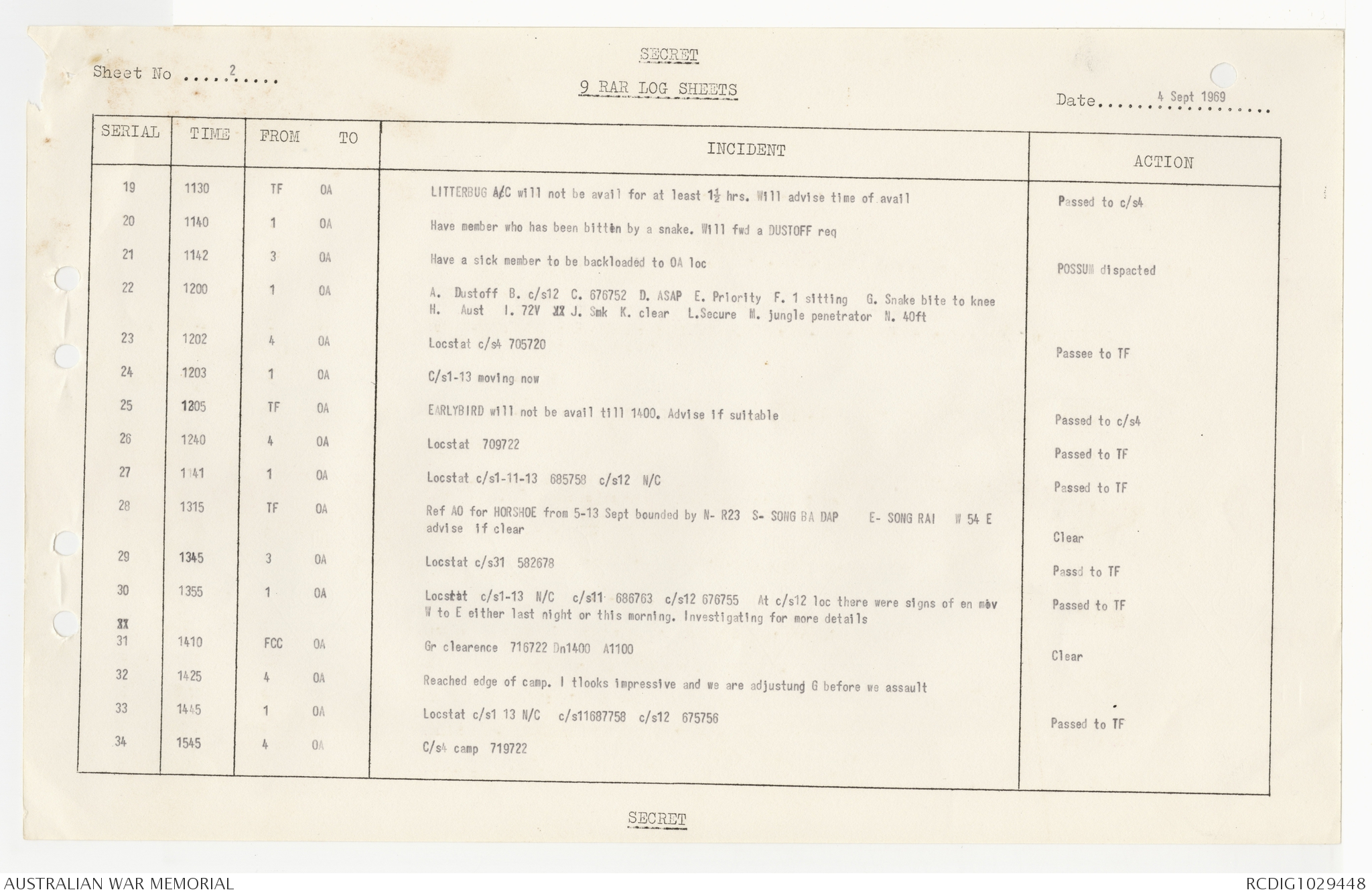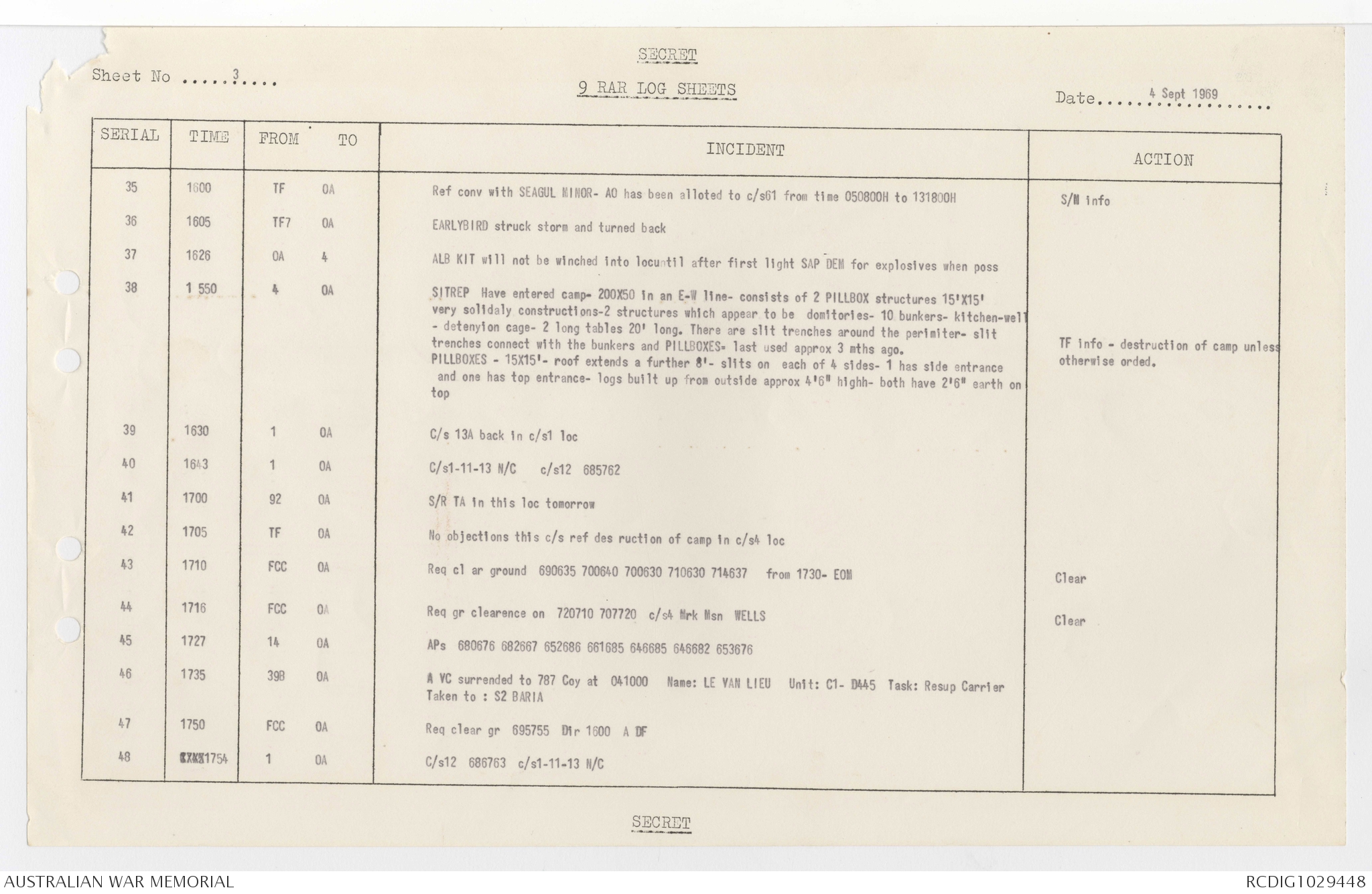 AWM95 7/9/23 - 1-30 September 1969, Narrative, Operations log, Annexes