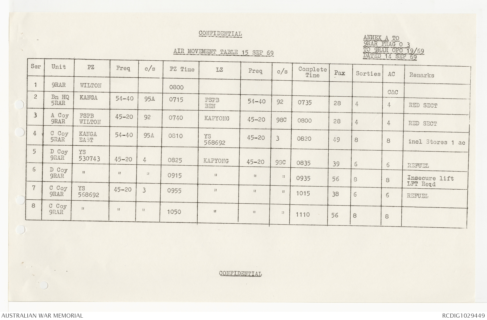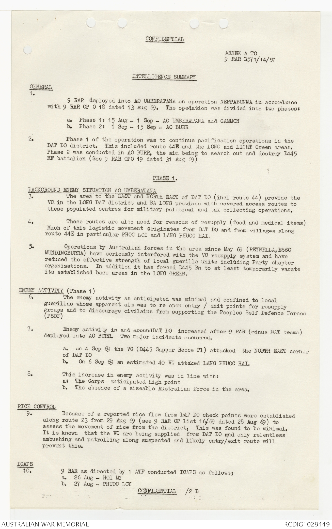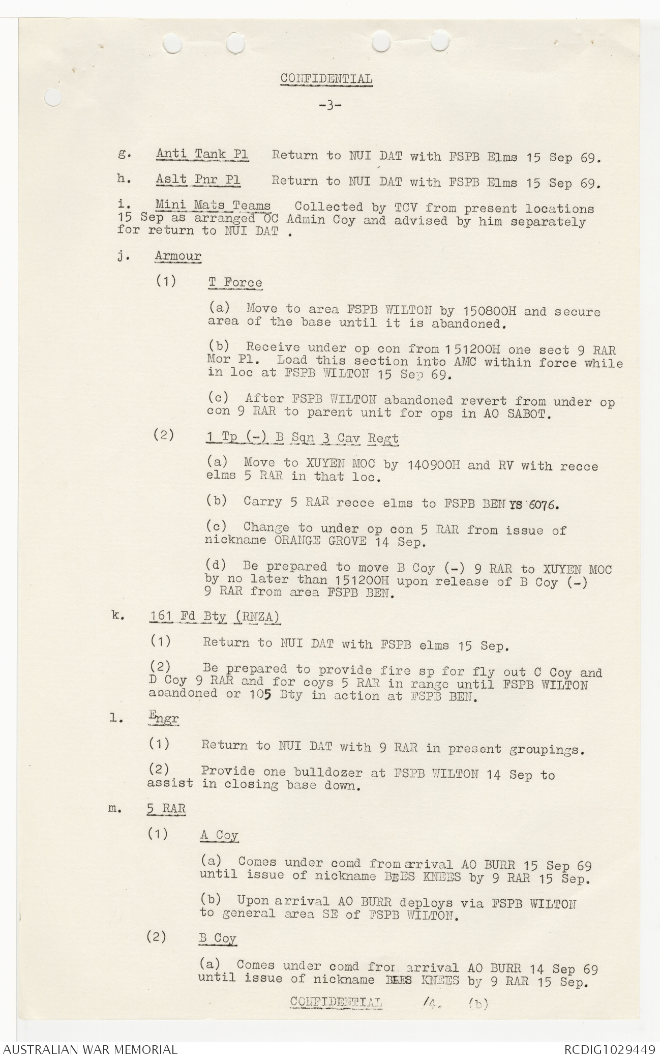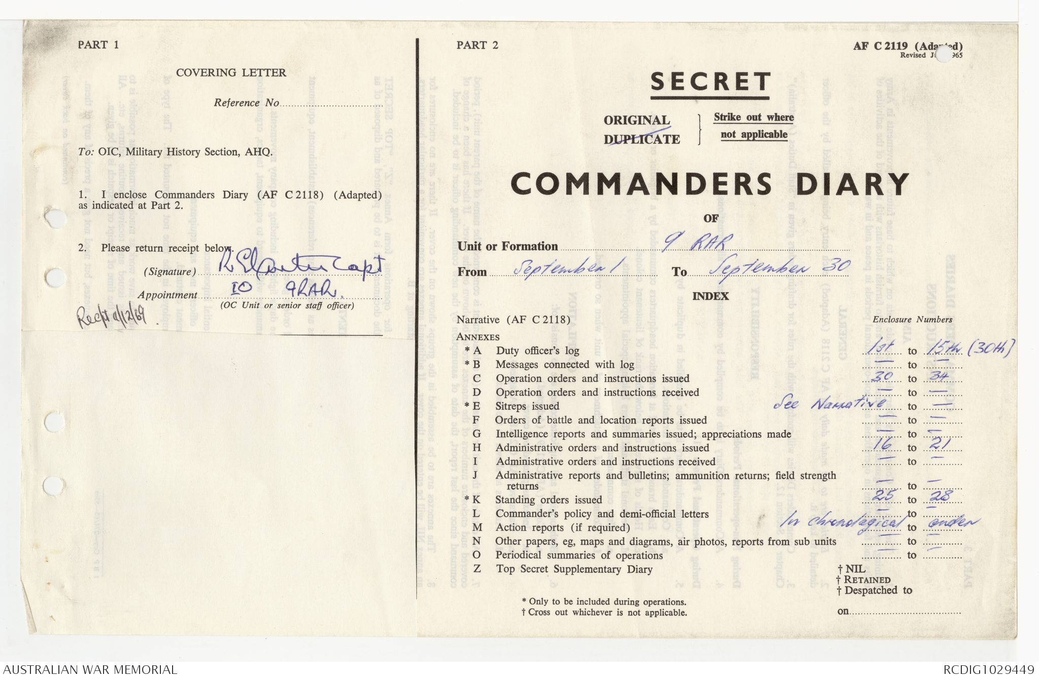 AWM95 7/9/24 - 1-30 September 1969, Annexes