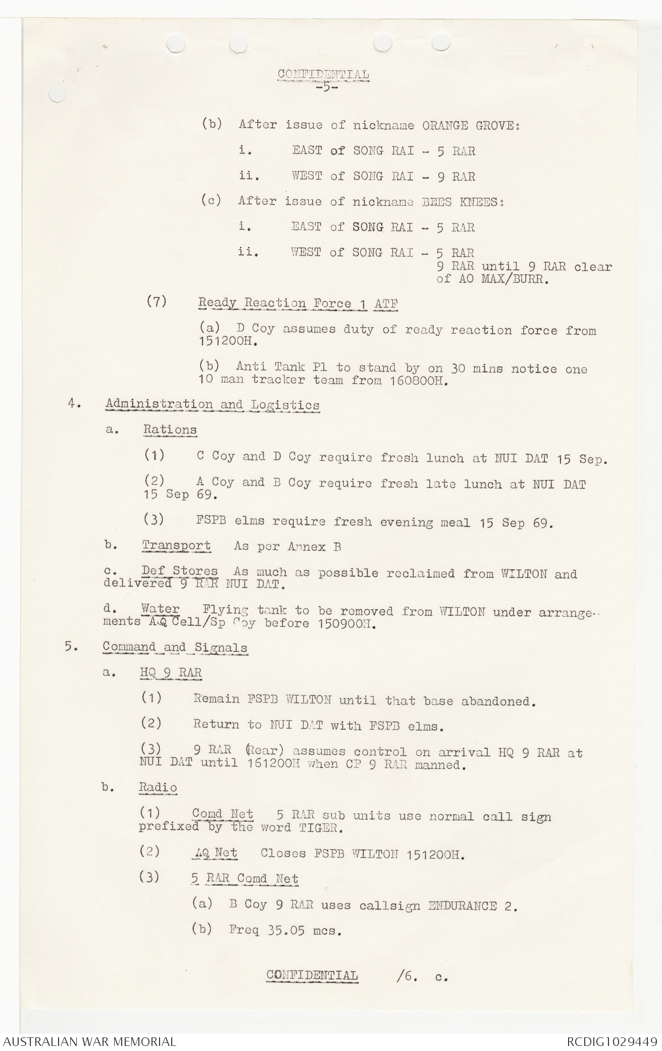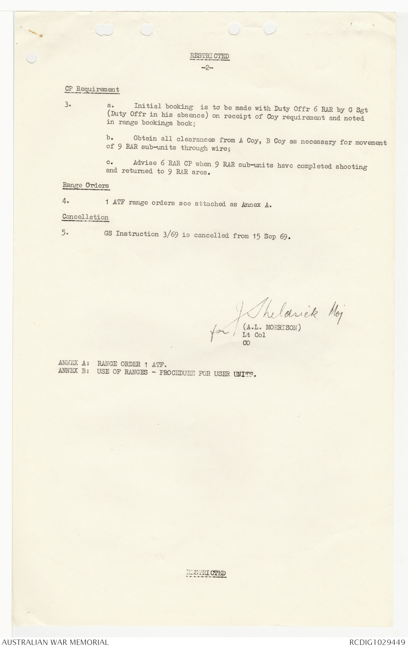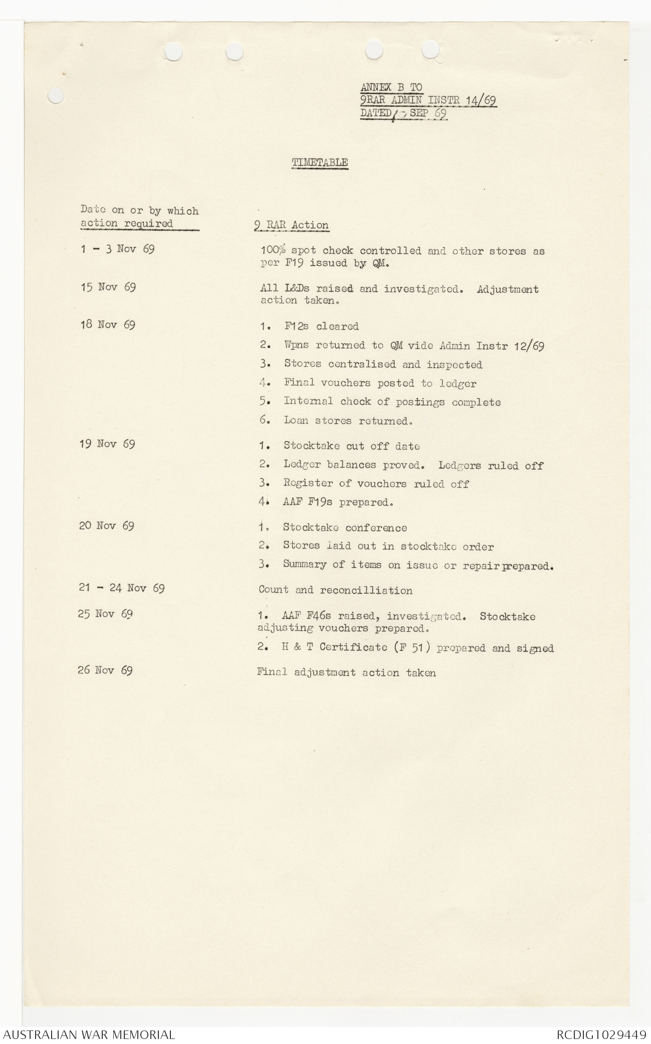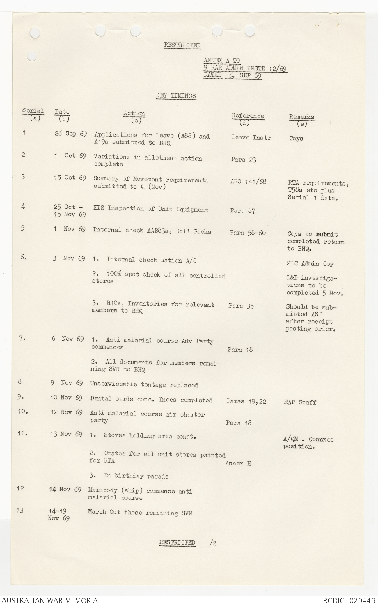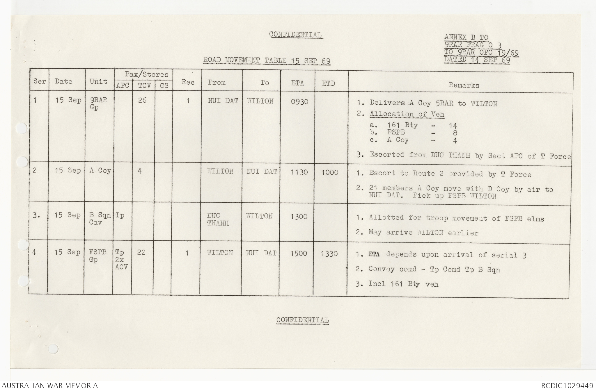 AWM95 7/9/24 - 1-30 September 1969, Annexes