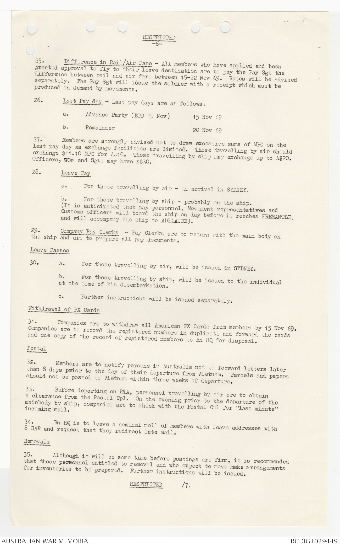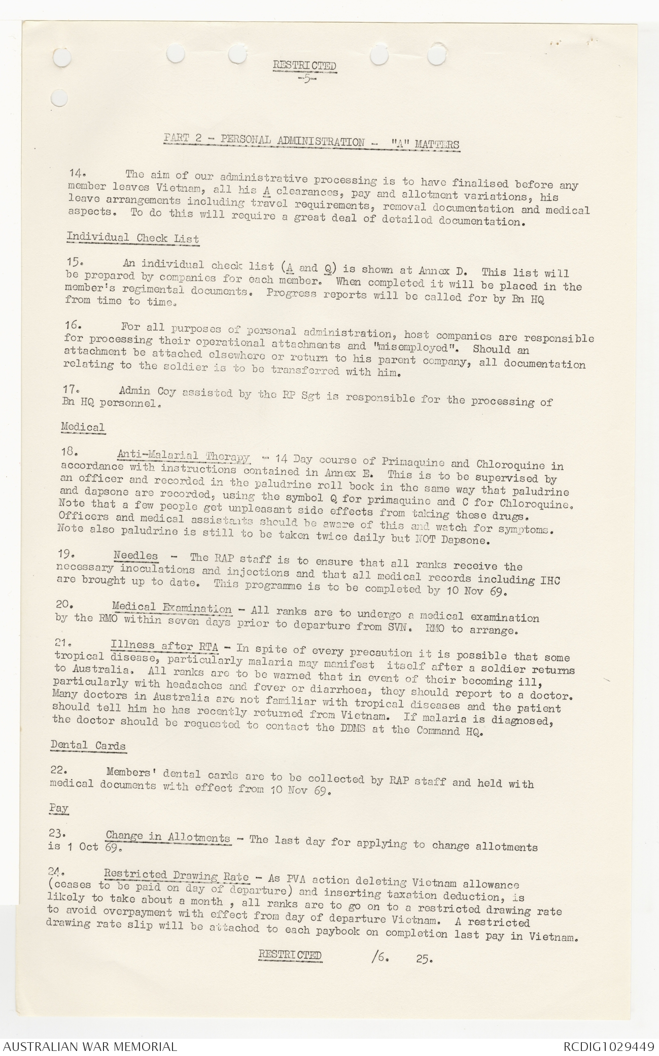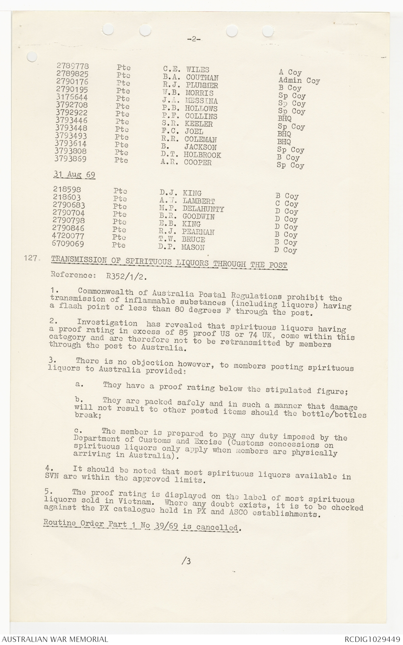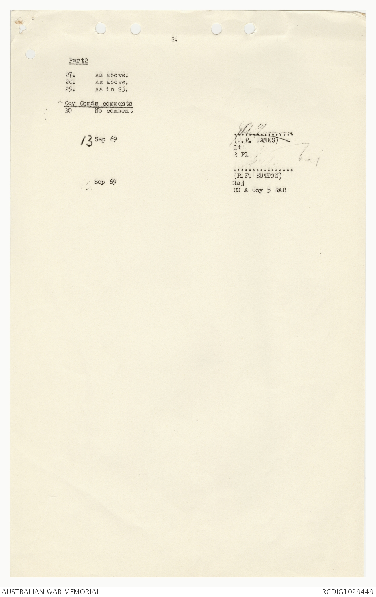 AWM95 7/9/24 - 1-30 September 1969, Annexes