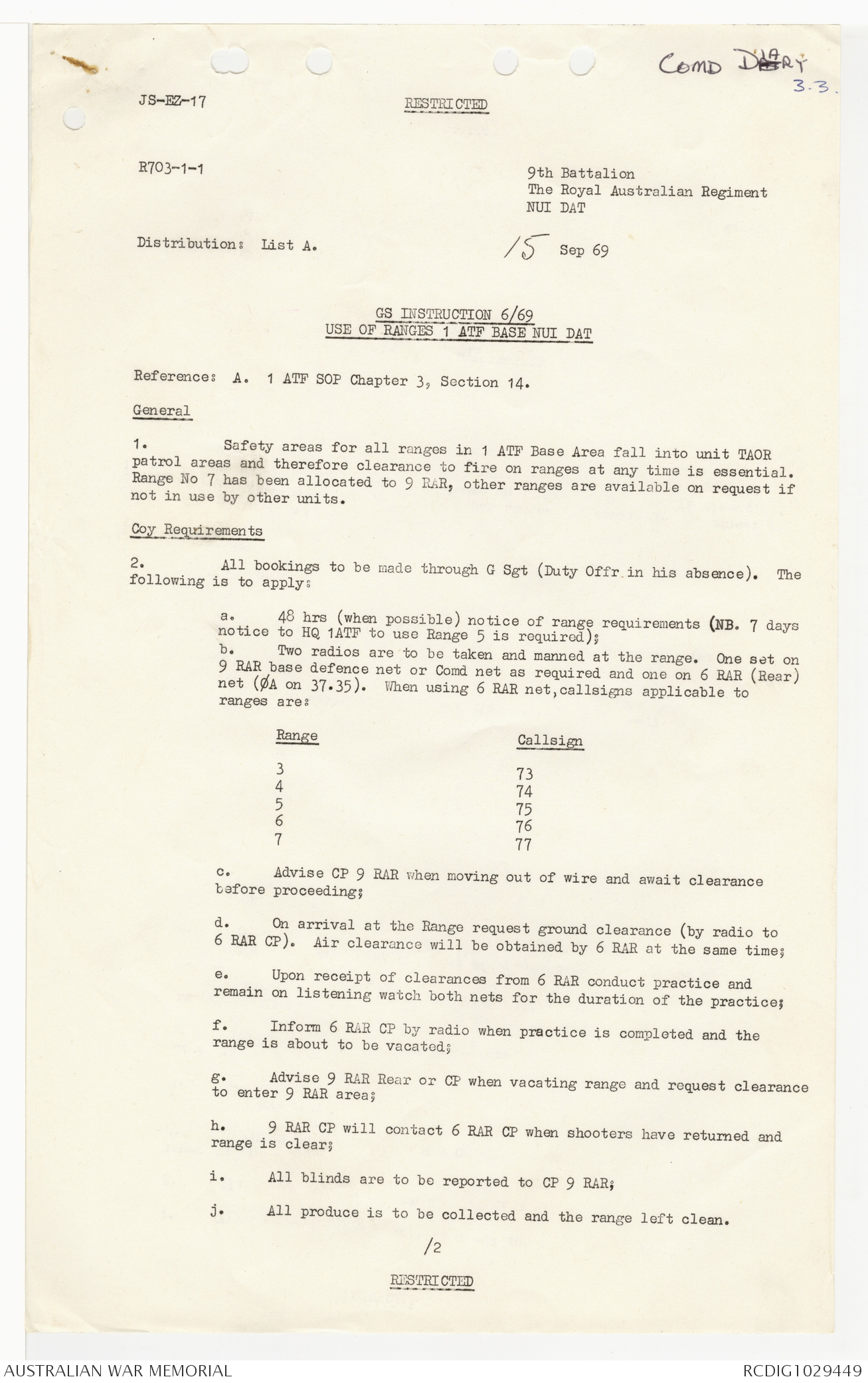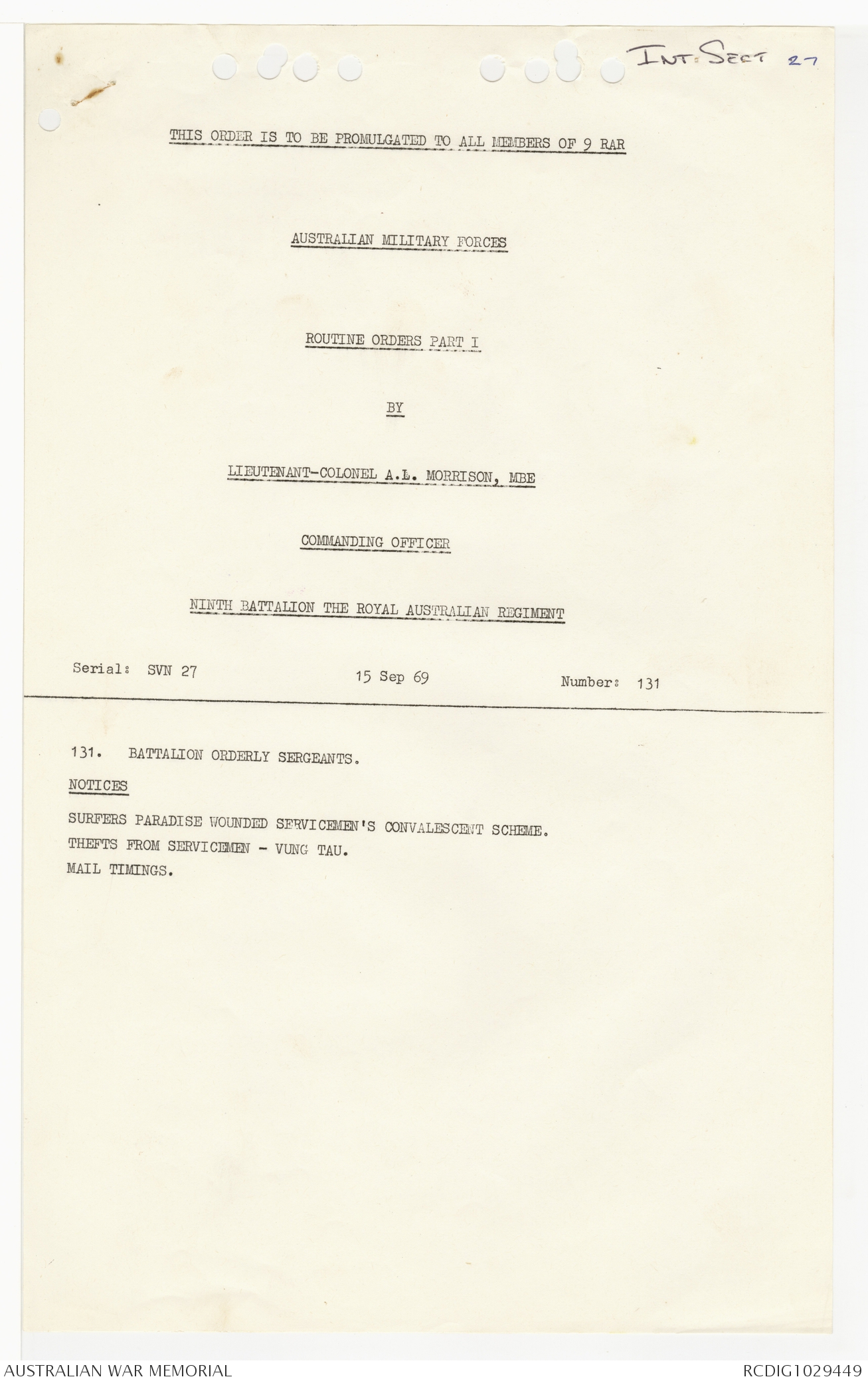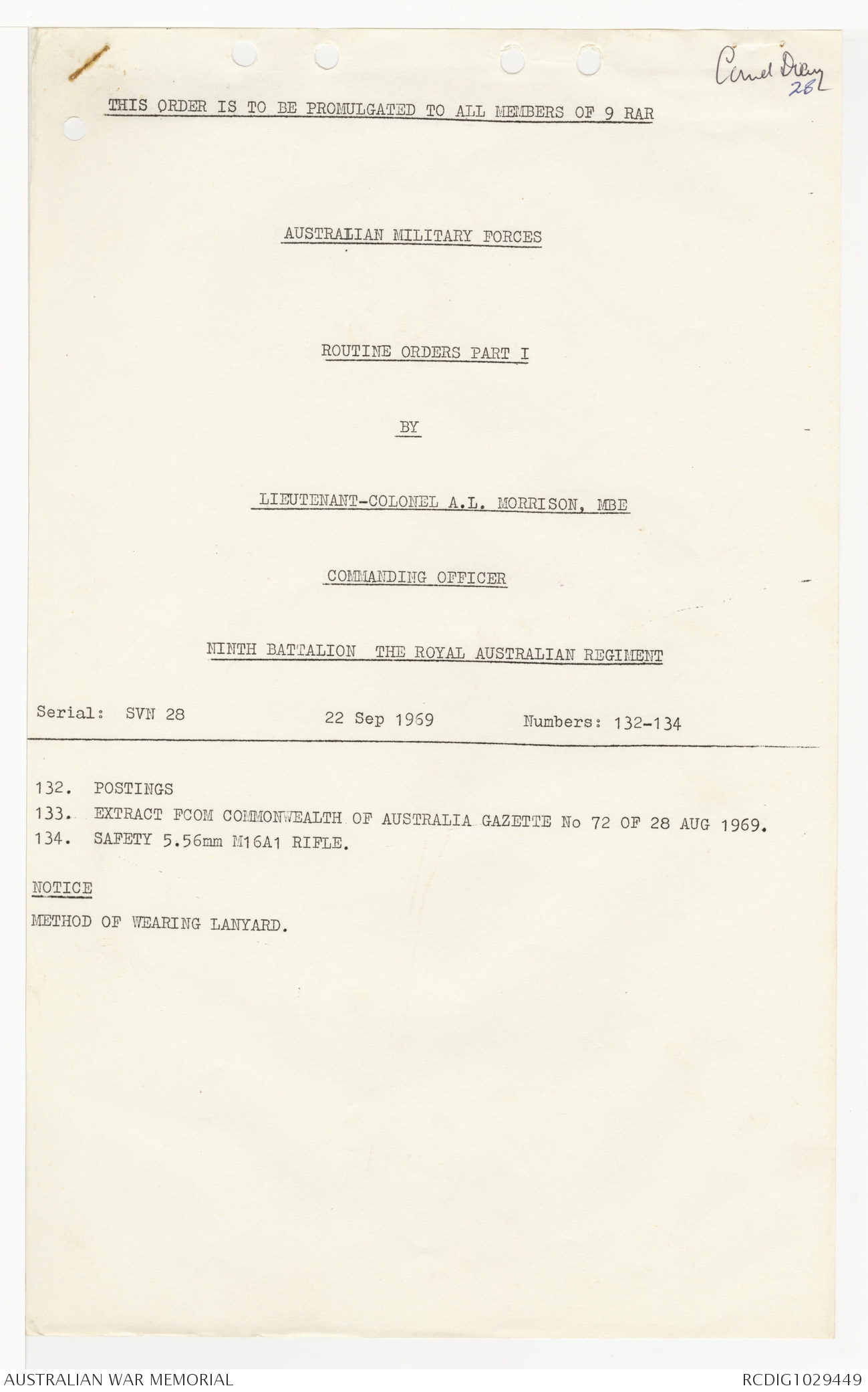 - AWM95 Subclass 7/9 - 9 Battalion Royal Australian Regiment