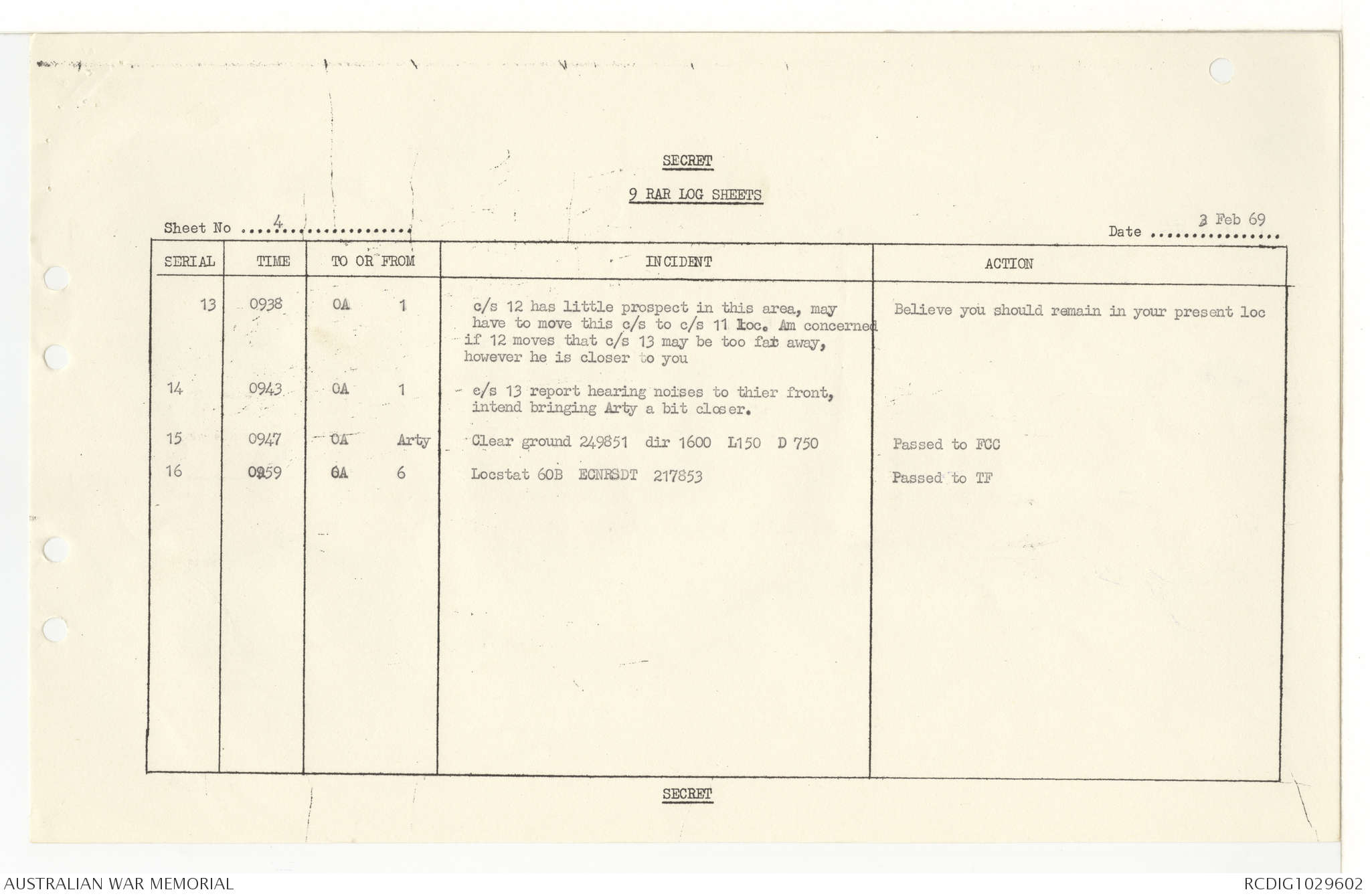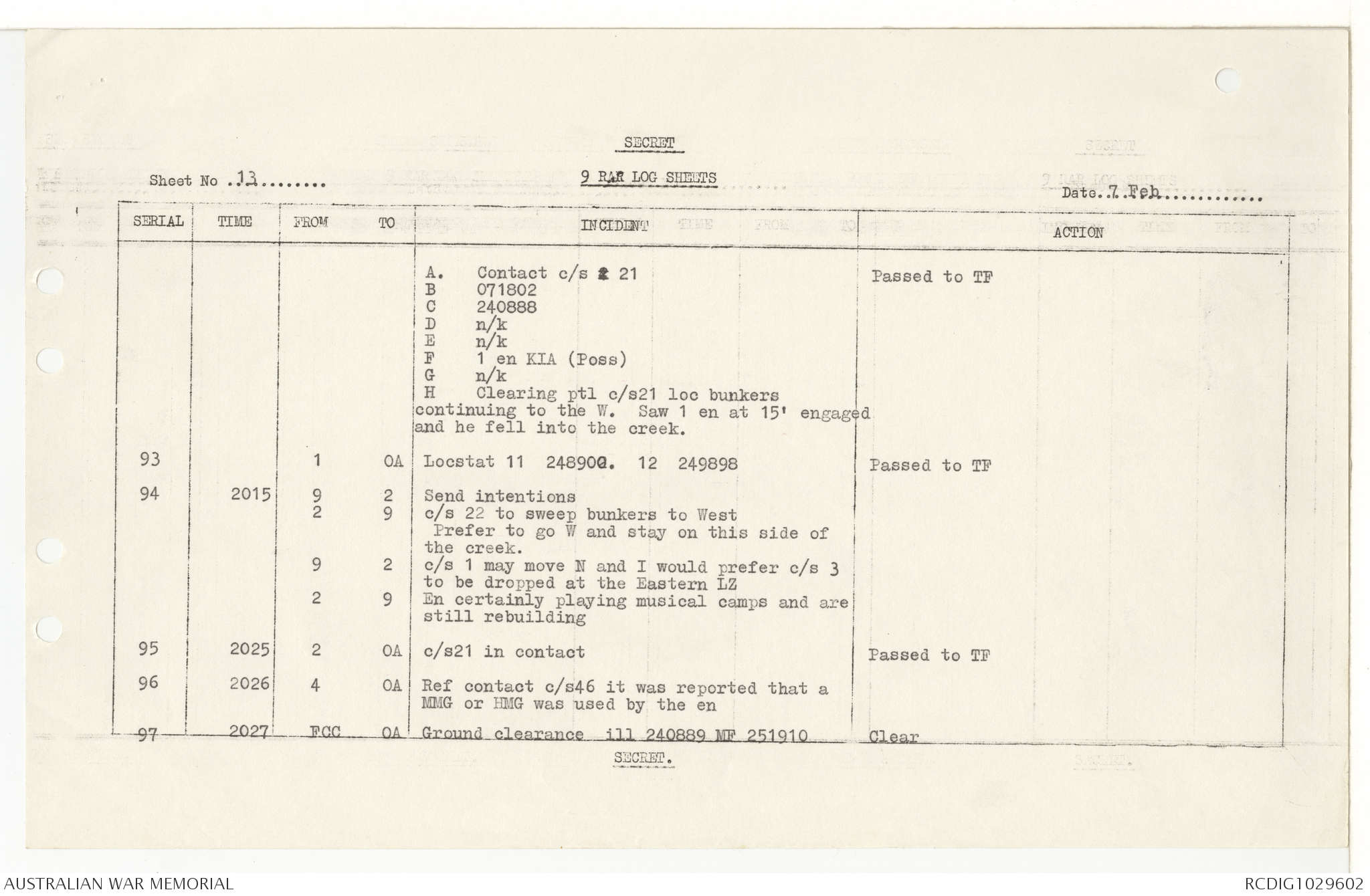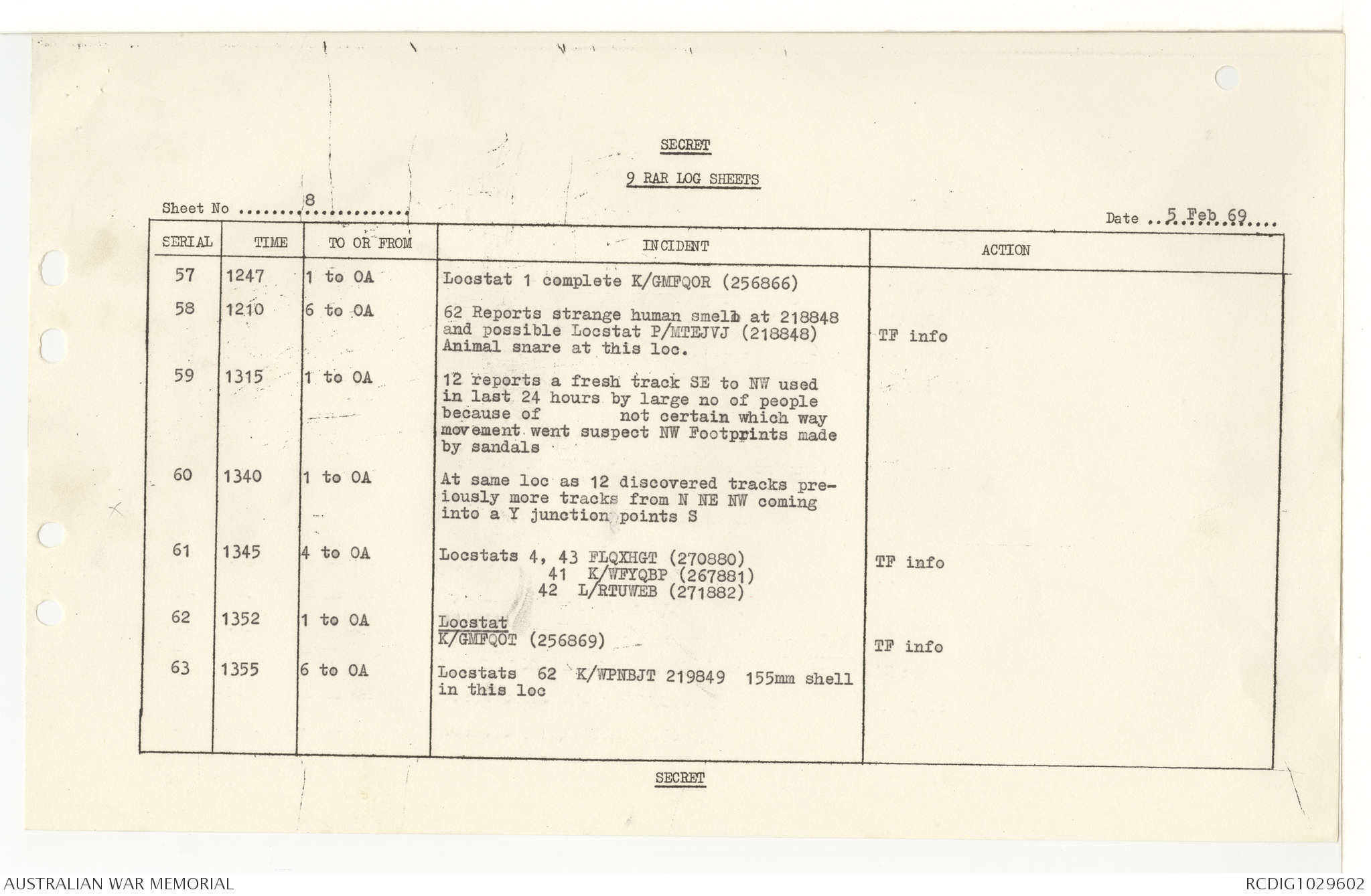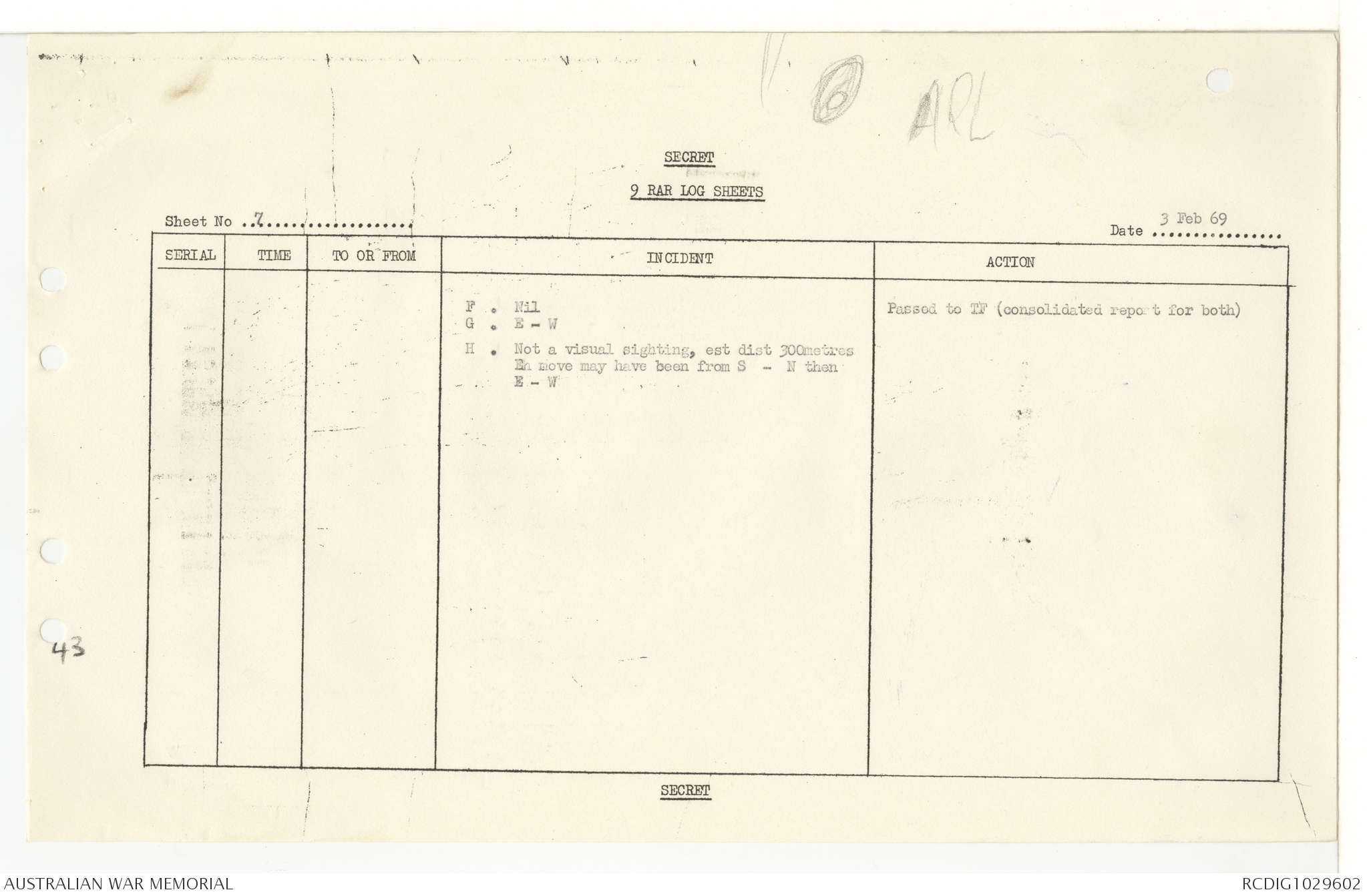 AWM95 7/9/11 - 1-28 February 1969, Narrative, Operations log