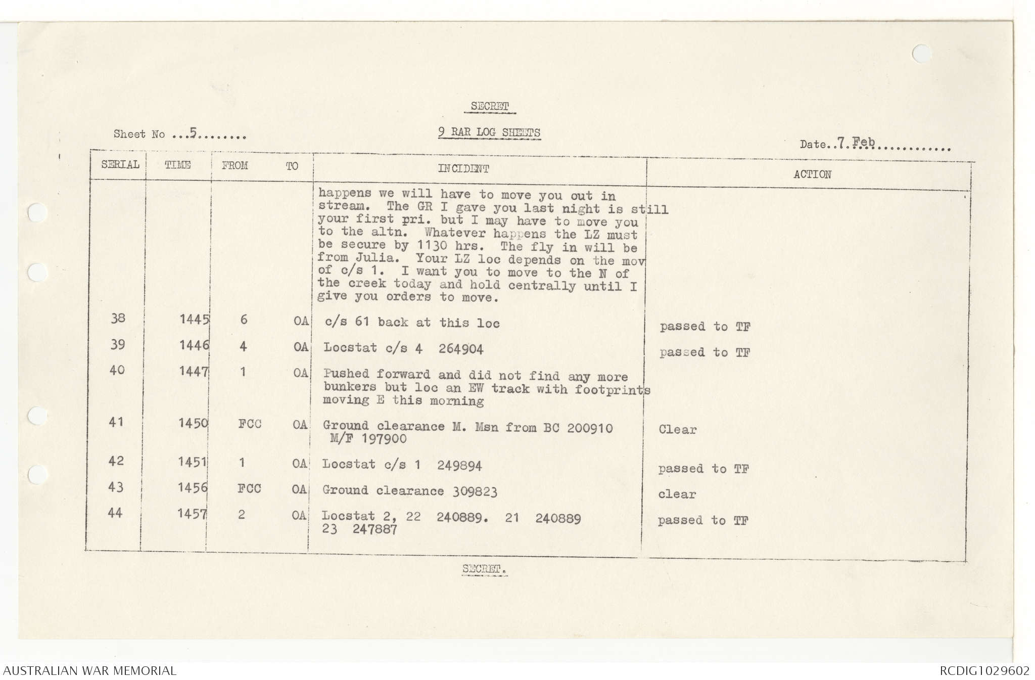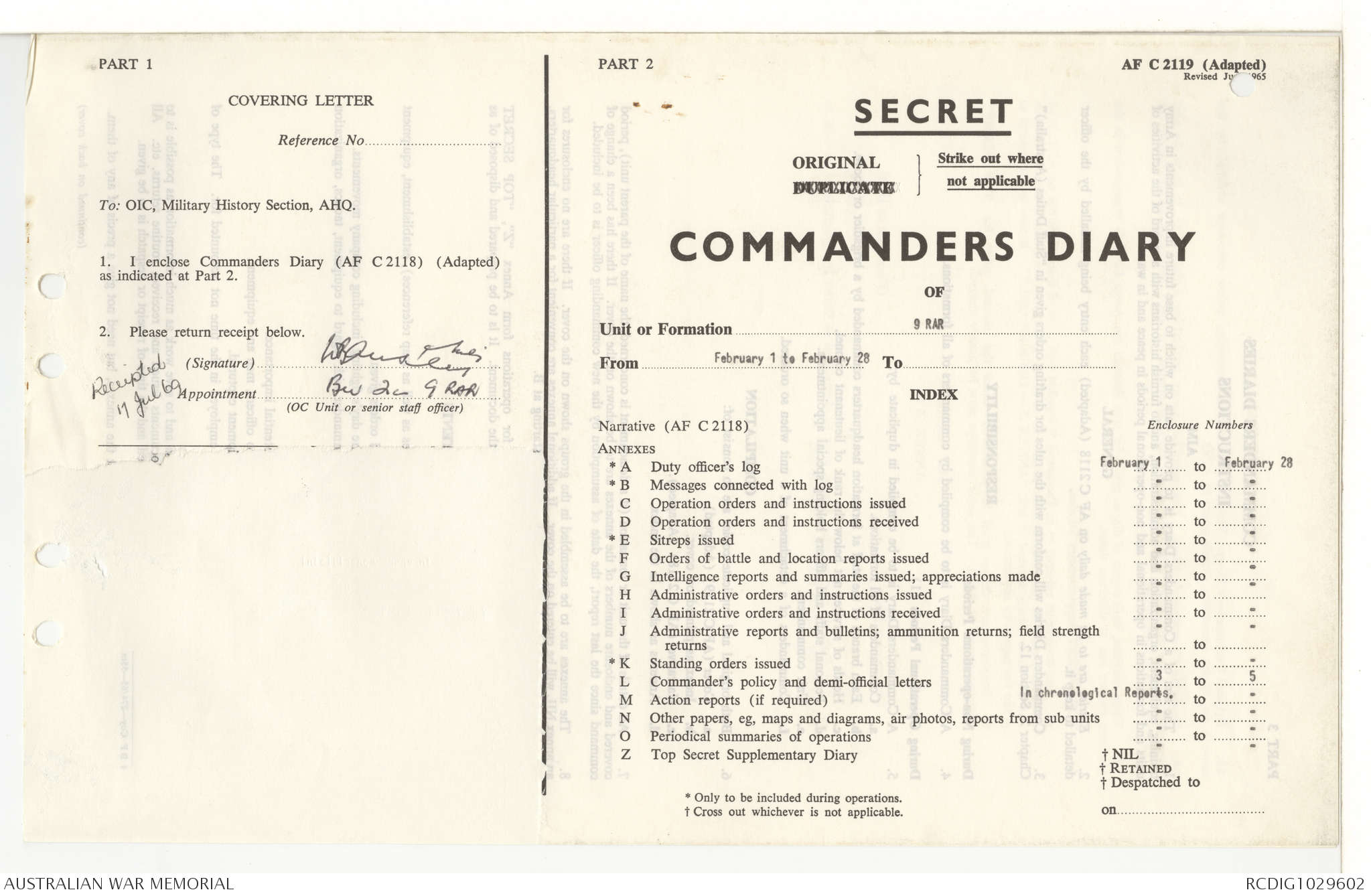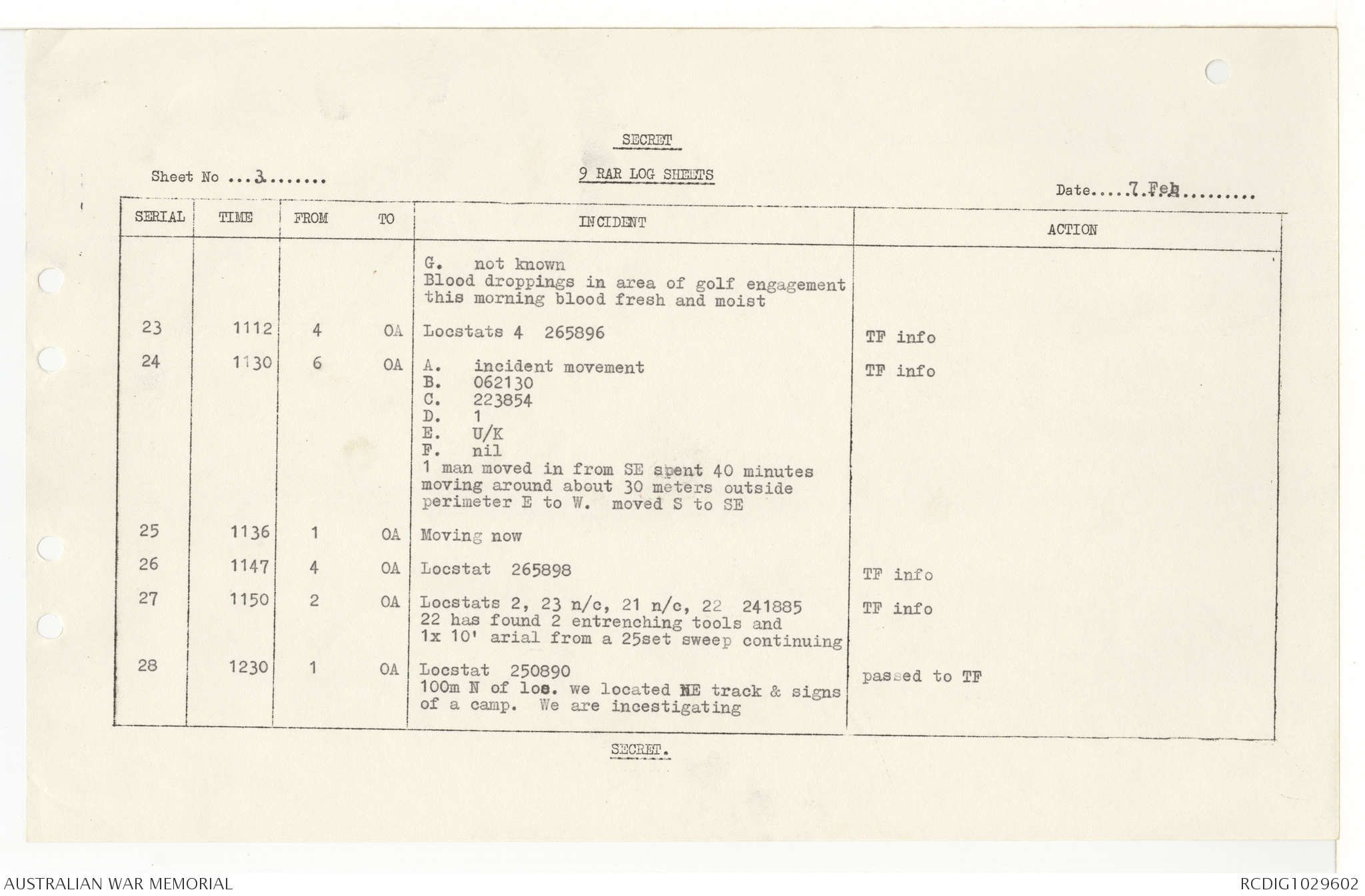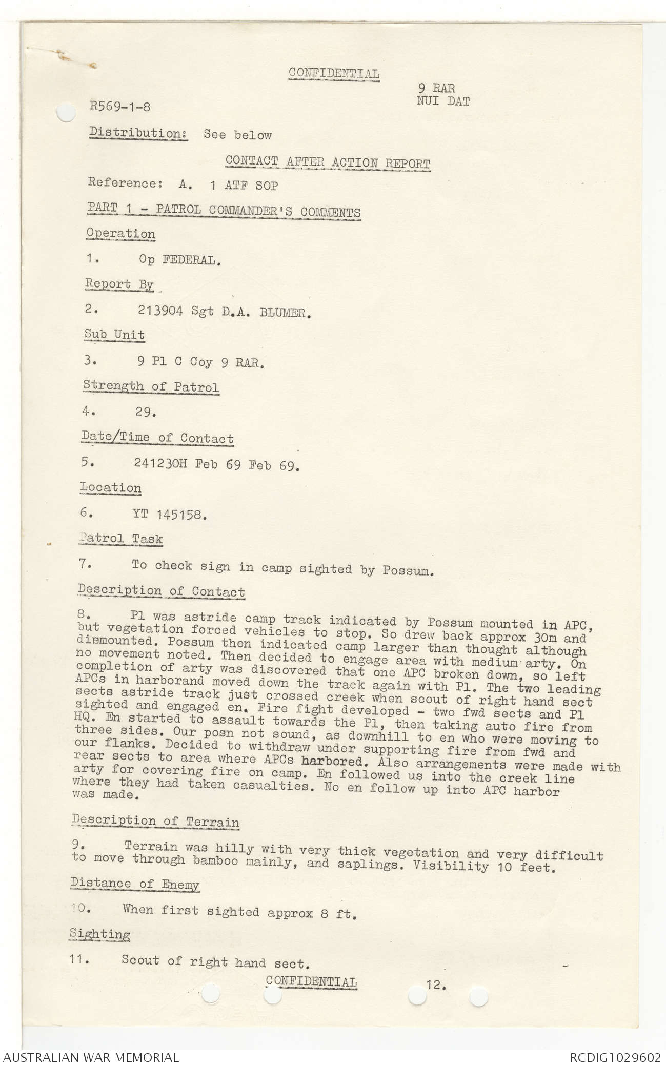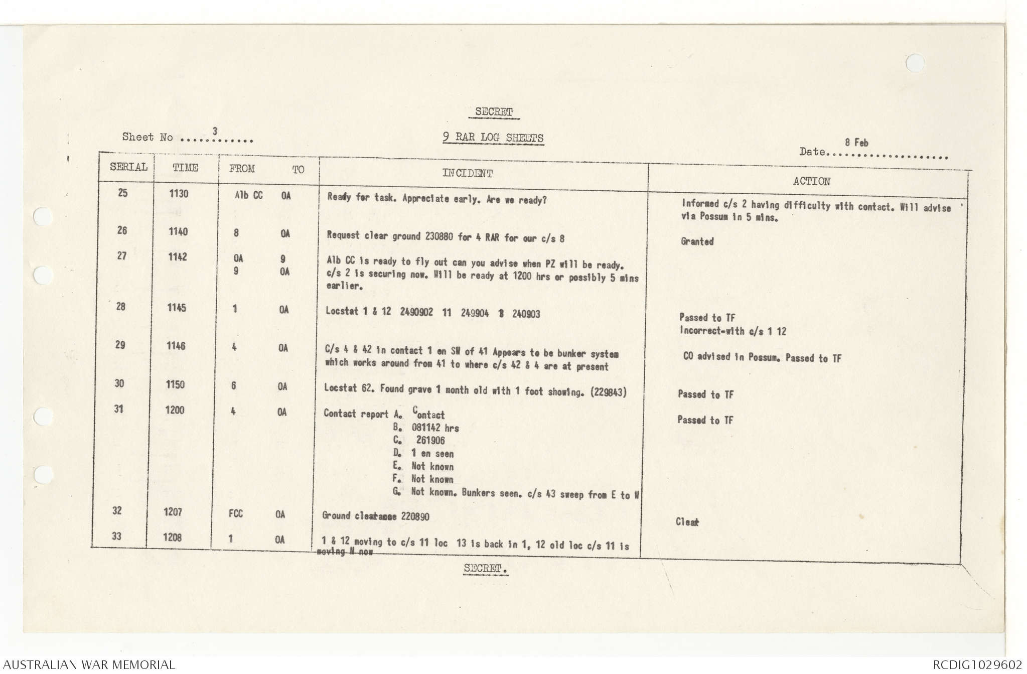 AWM95 7/9/11 - 1-28 February 1969, Narrative, Operations log