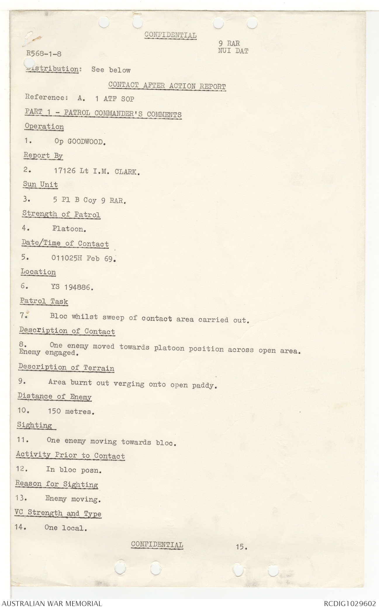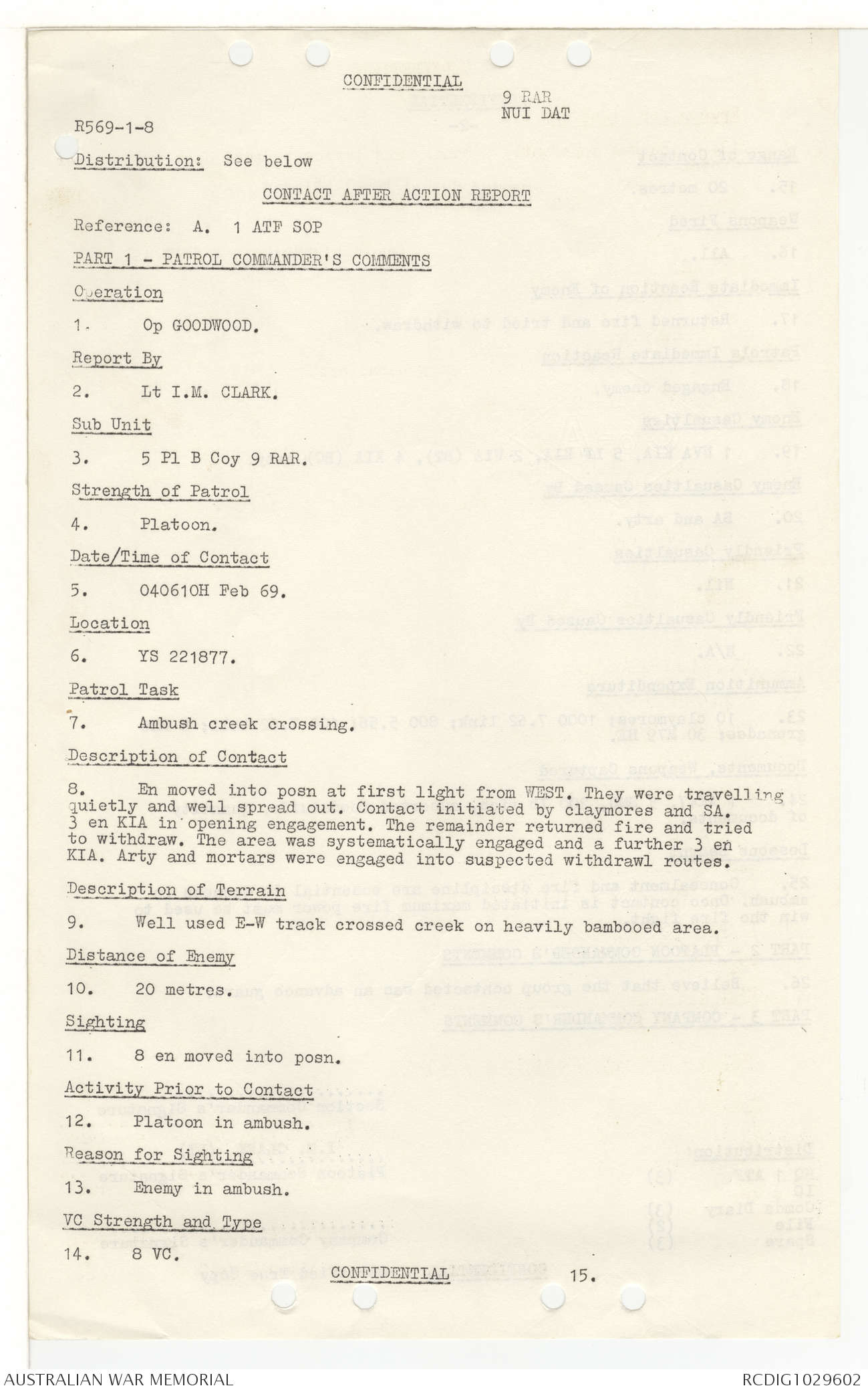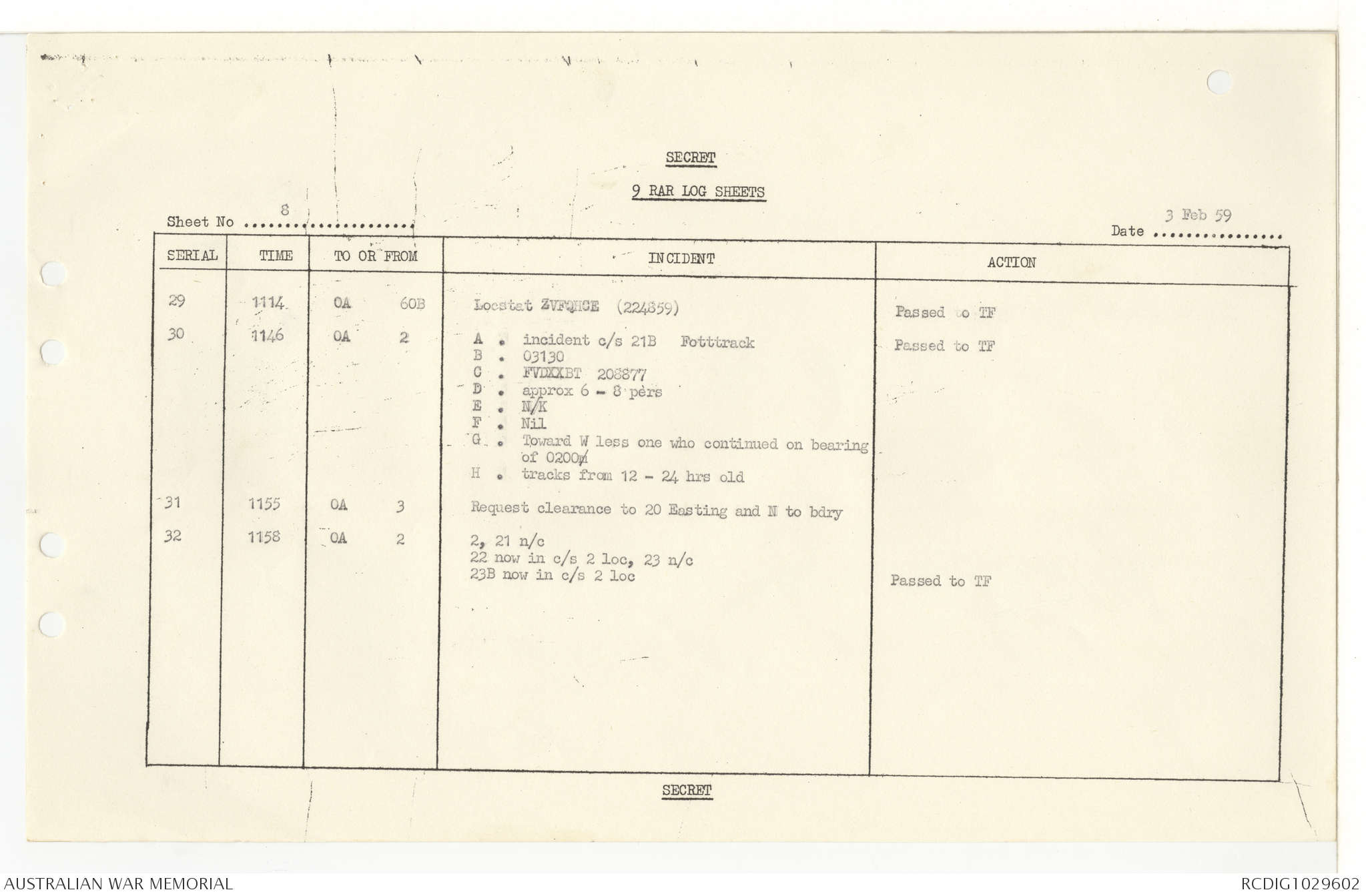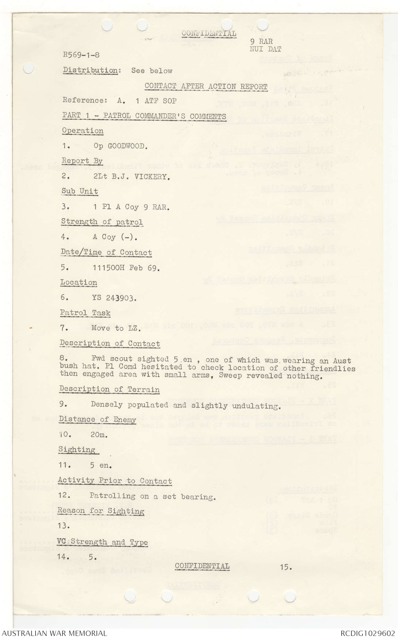 AWM95 7/9/11 - 1-28 February 1969, Narrative, Operations log