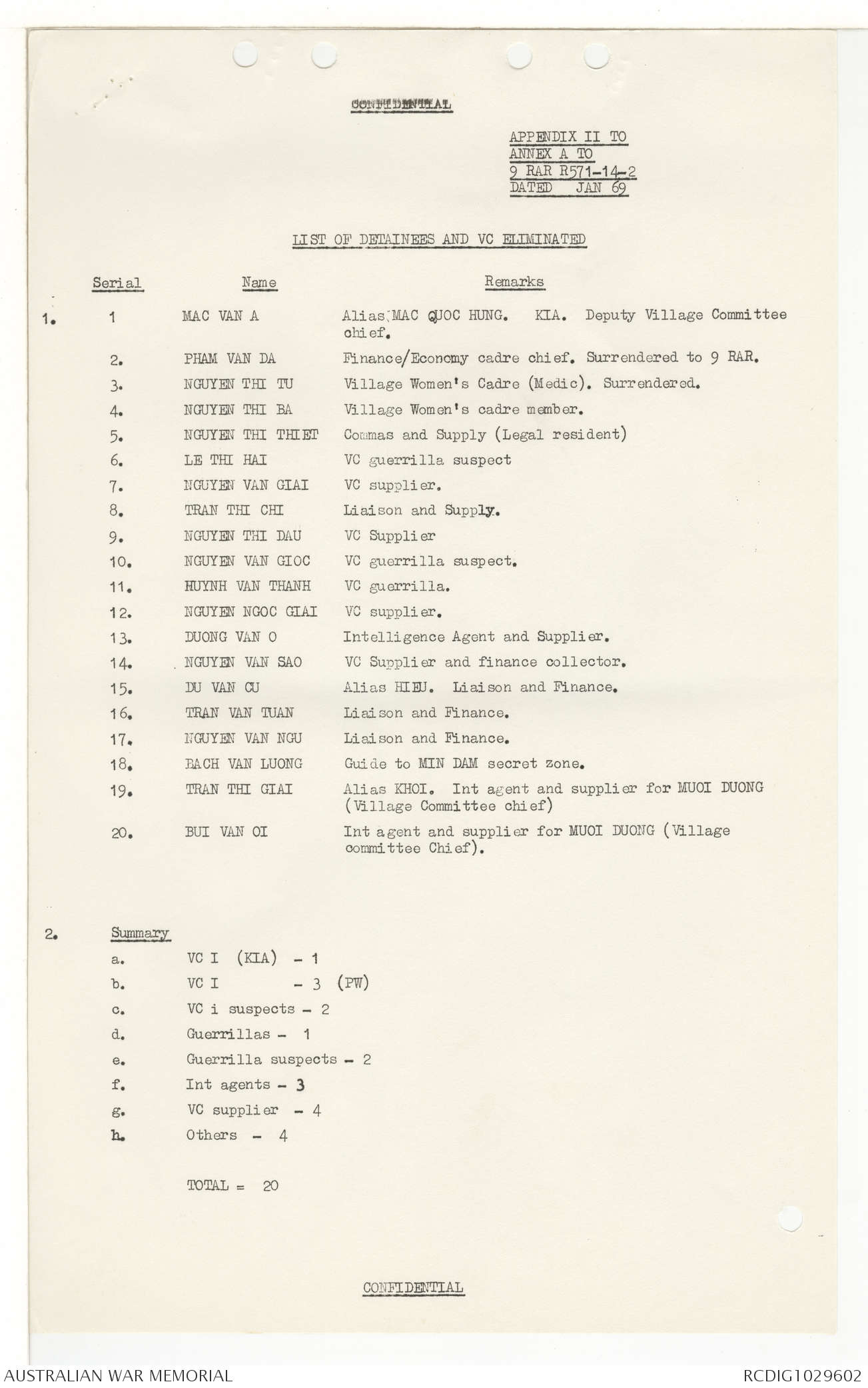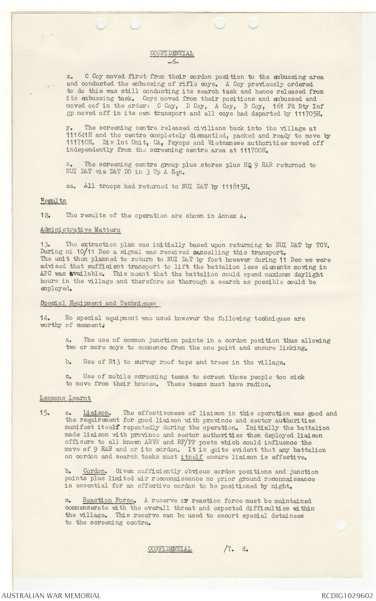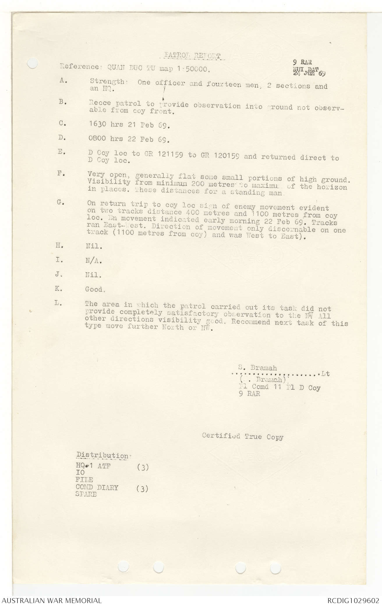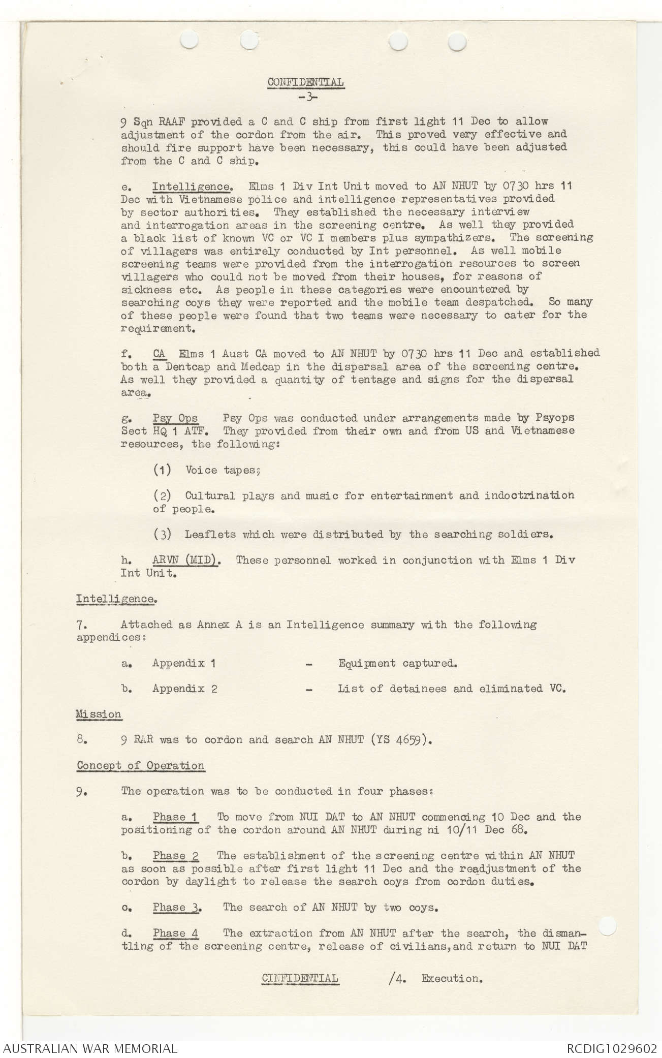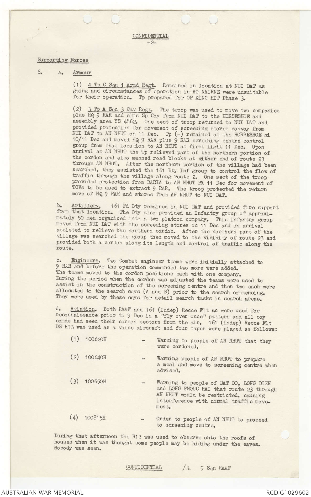 AWM95 7/9/11 - 1-28 February 1969, Narrative, Operations log