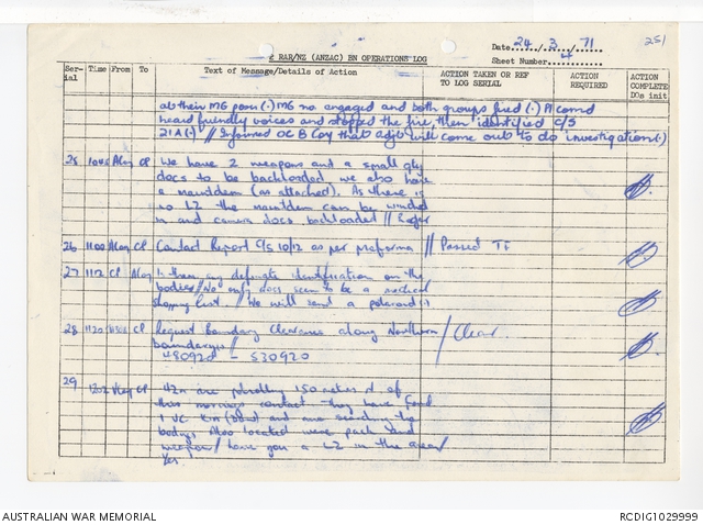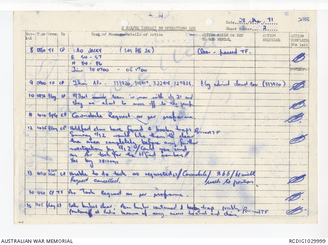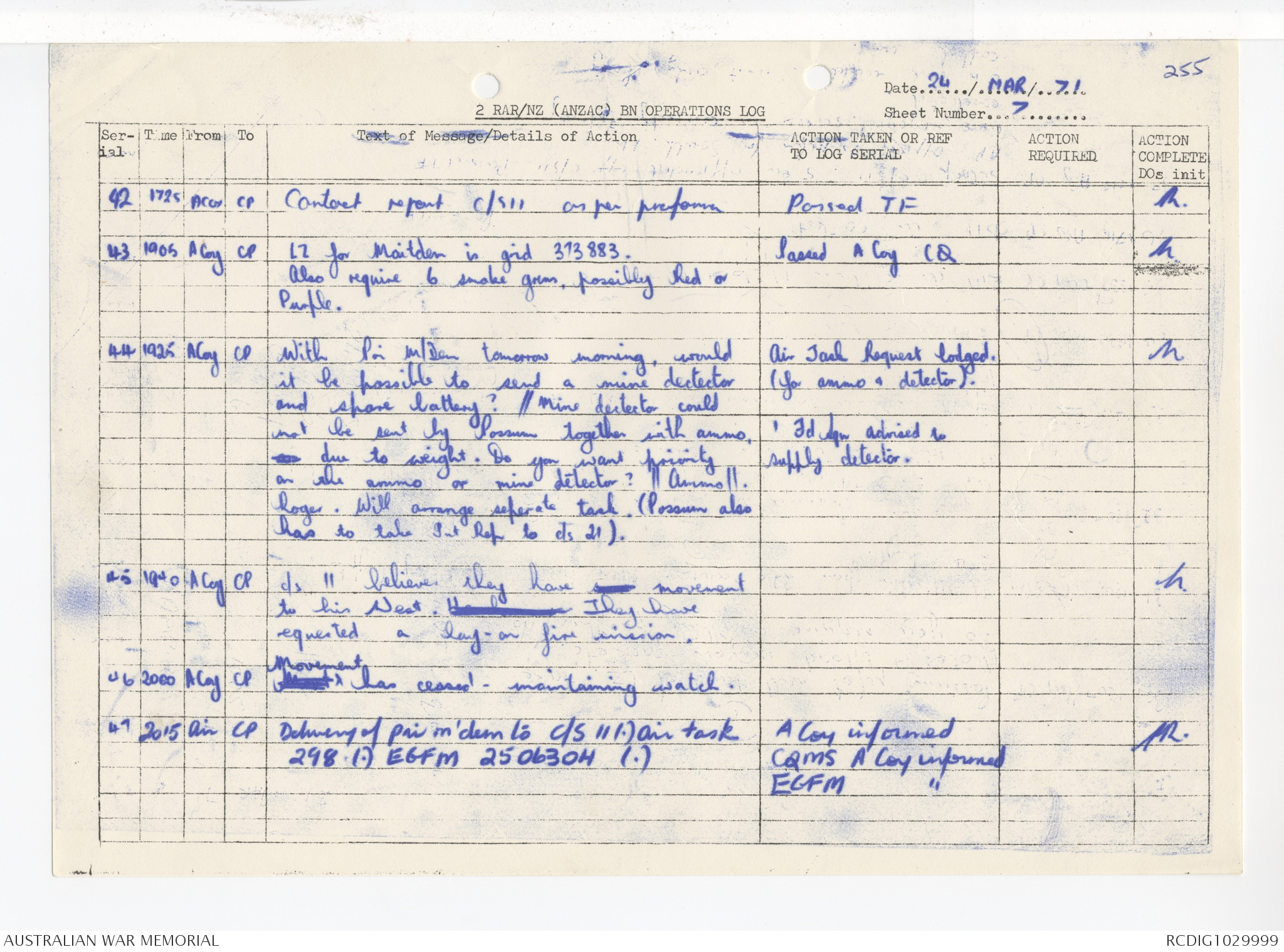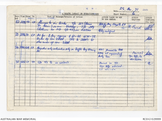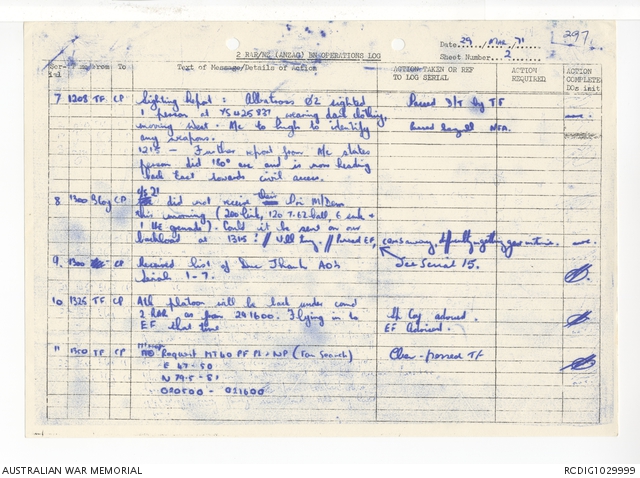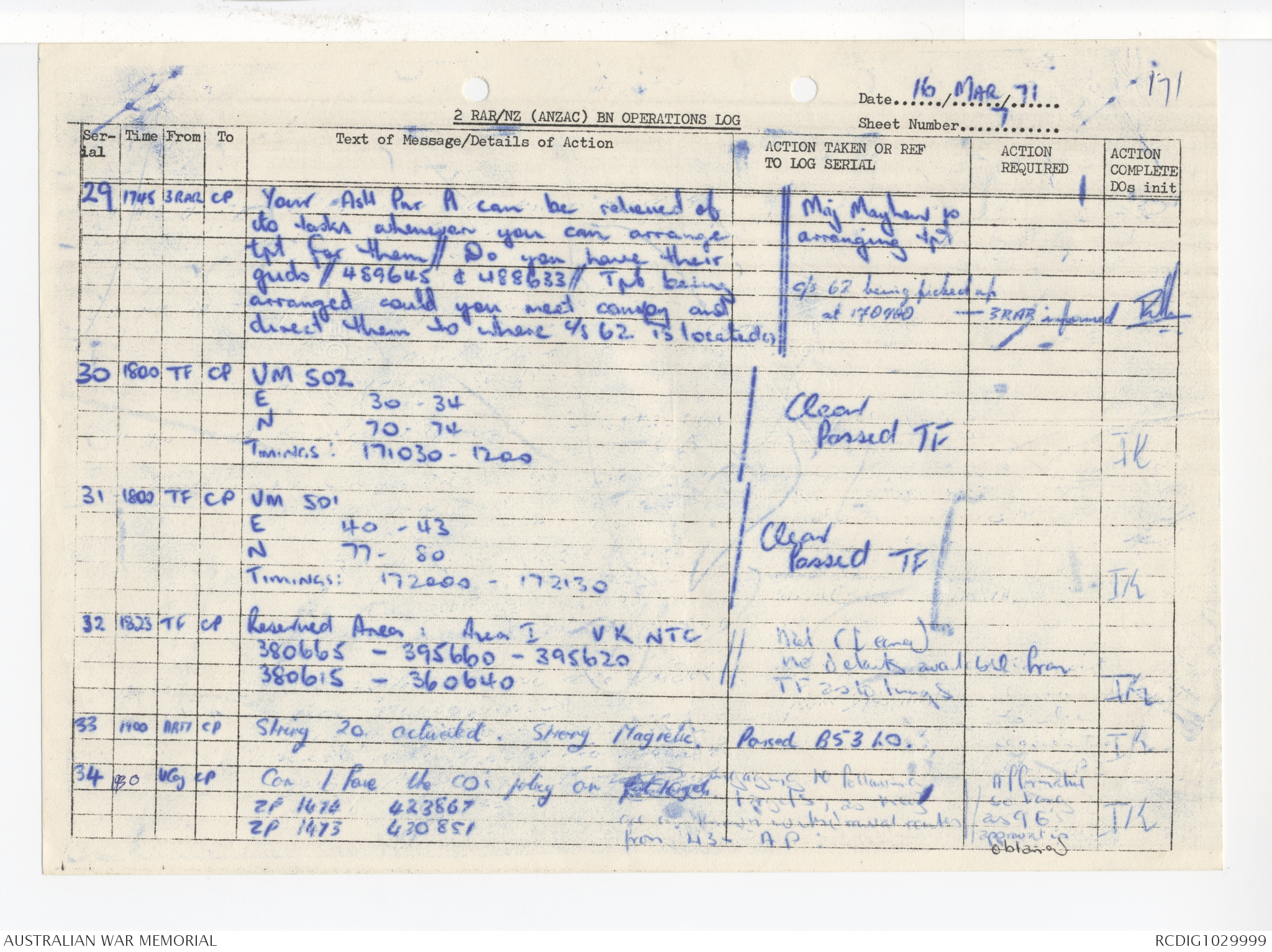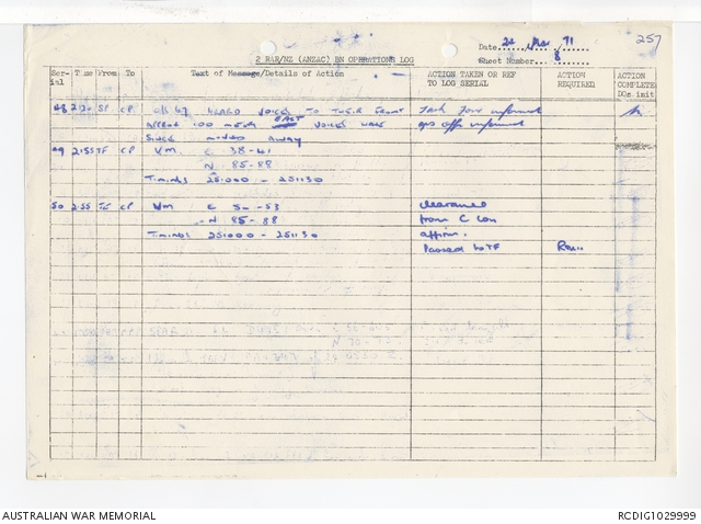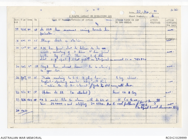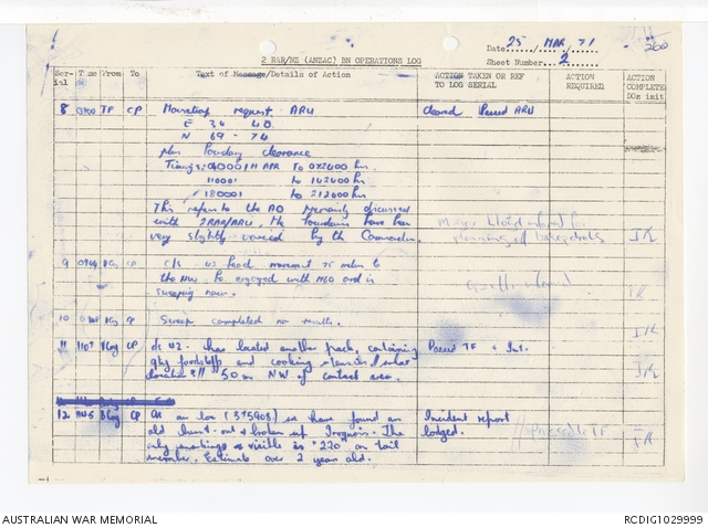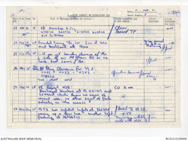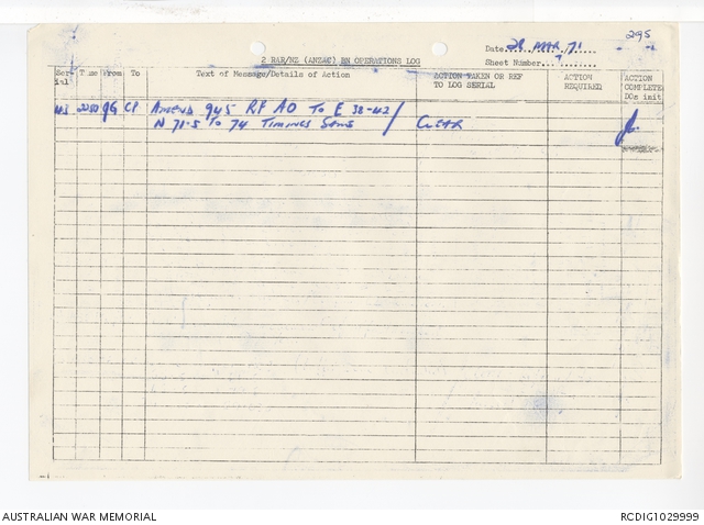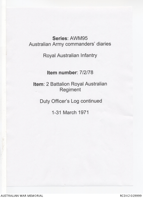 AWM95 7/2/78 - 1-31 March 1971, Duty Officer's log continued
